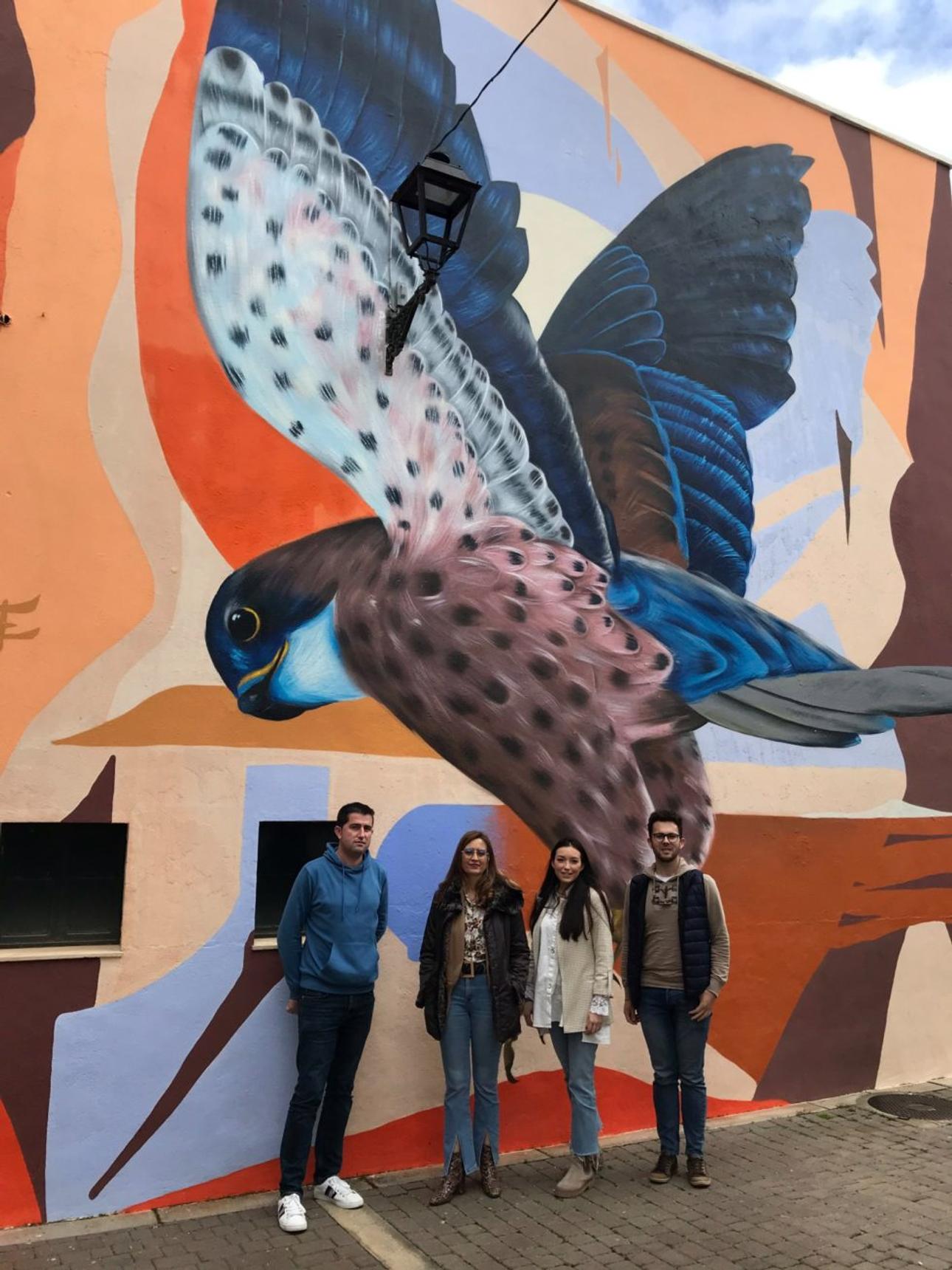 The mural is part of the town's urban beautification project and stands out for its monumental scale, as well as for its combination of figurative language with contemporary design elements. Beyond its aesthetic value, this piece celebrates the natural richness of the region and the connection between the Subbética landscape, its fauna, and the cultural identity of Luque.
