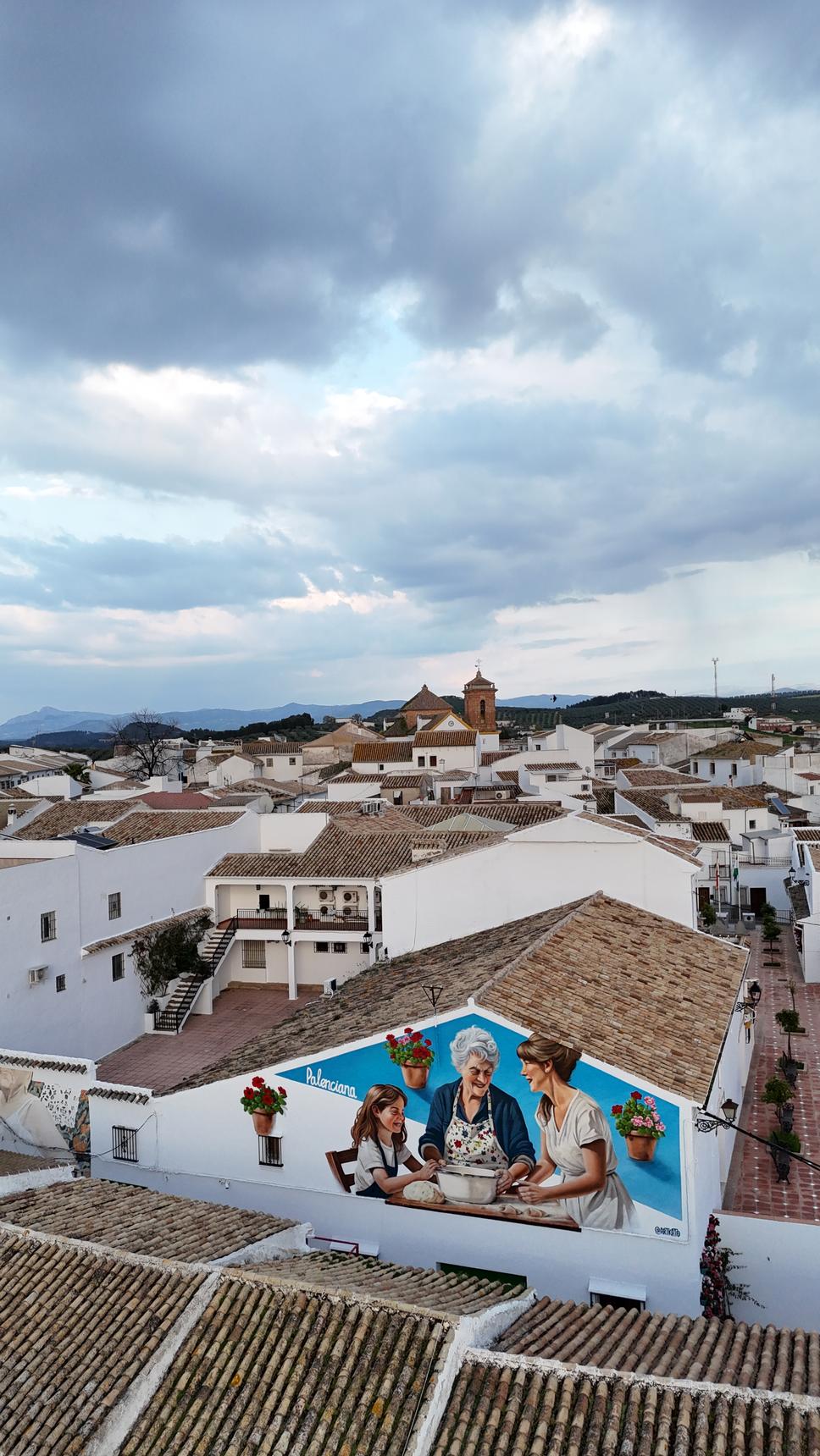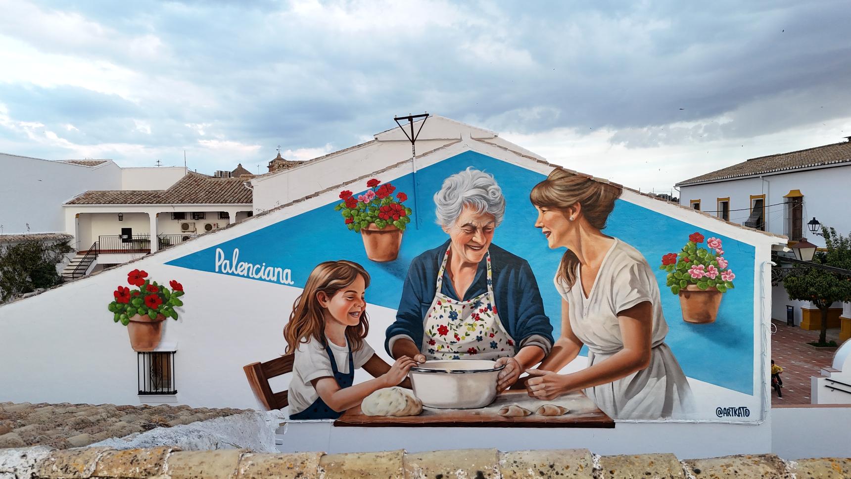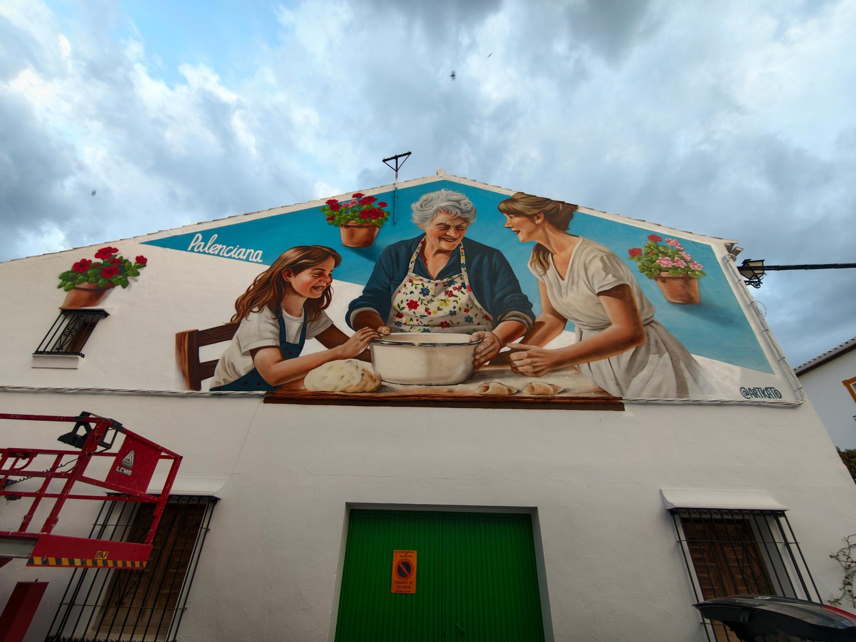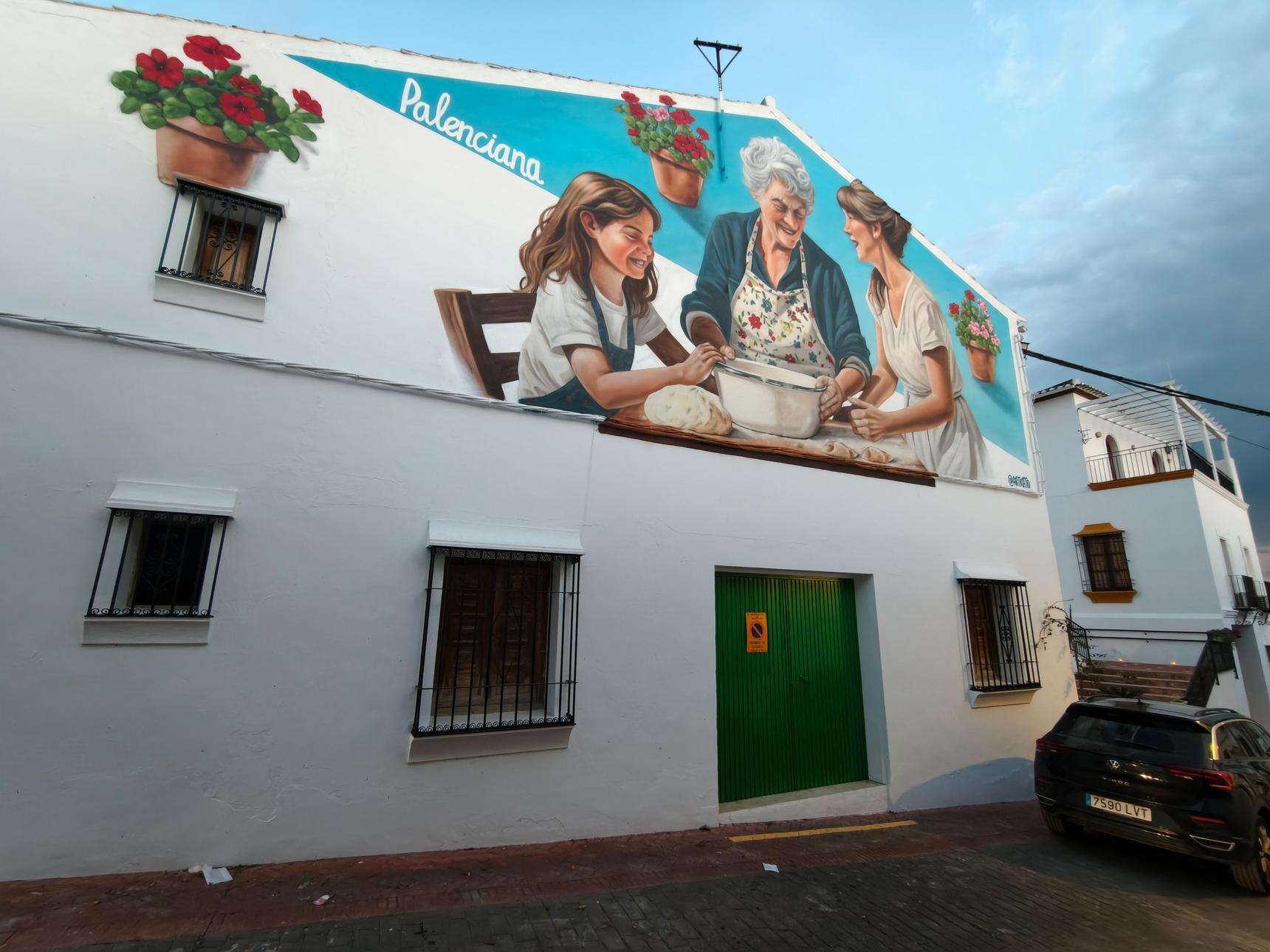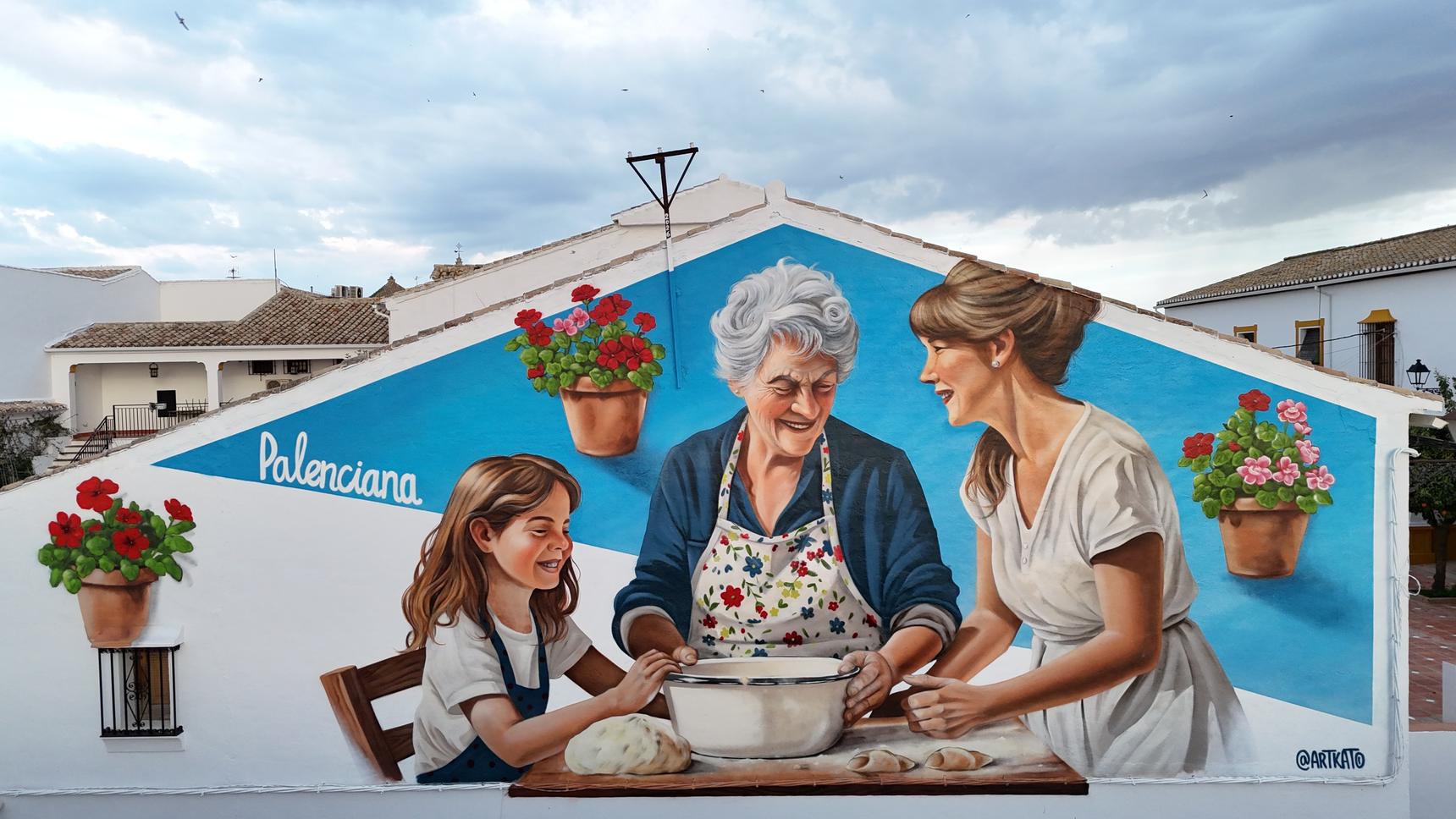 Este mural, realizado en Palenciana, es un homenaje a una de las tradiciones más dulces y valiosas del pueblo: la elaboración de pestiños y otros dulces caseros, especialmente ligados a la Semana Santa.