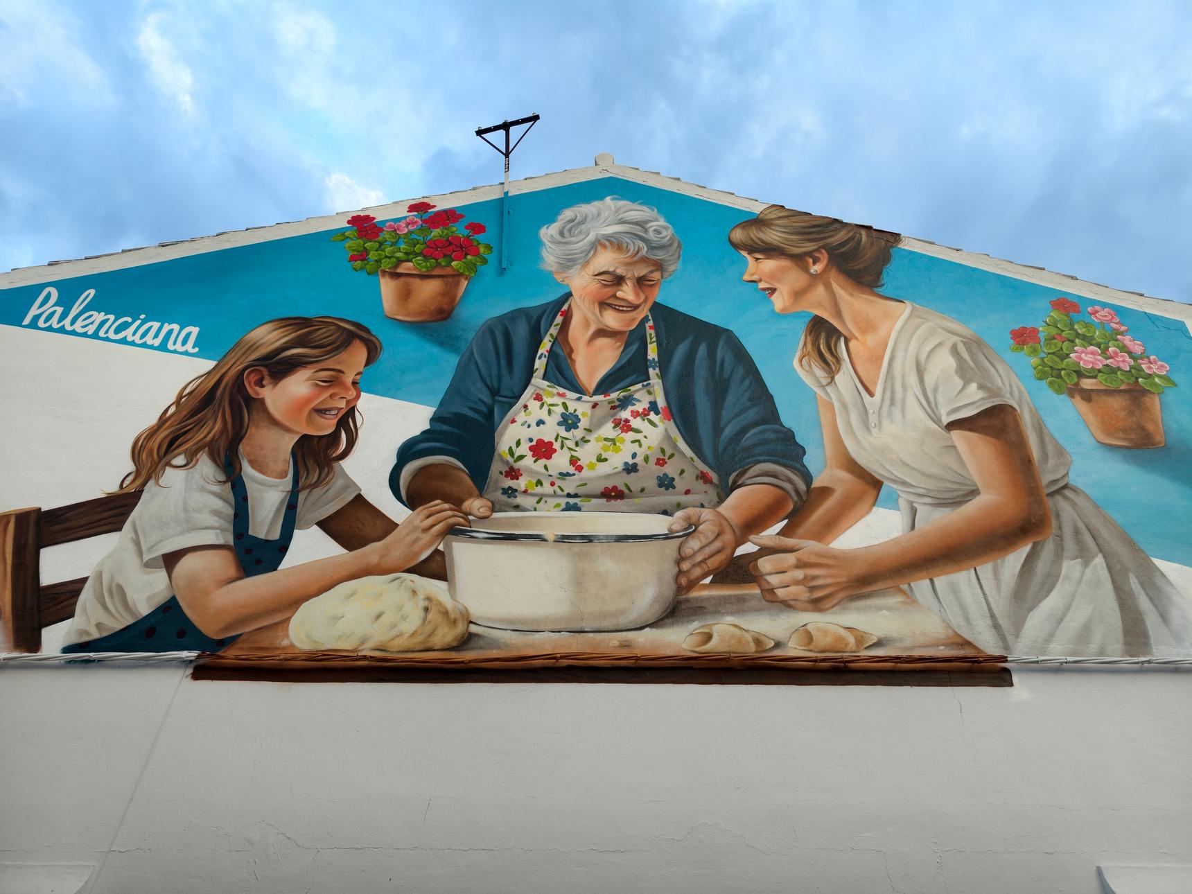 This mural, created in Palenciana, is a tribute to one of the town's sweetest and most cherished traditions: the making of pestiños and other homemade sweets, especially associated with Holy Week.