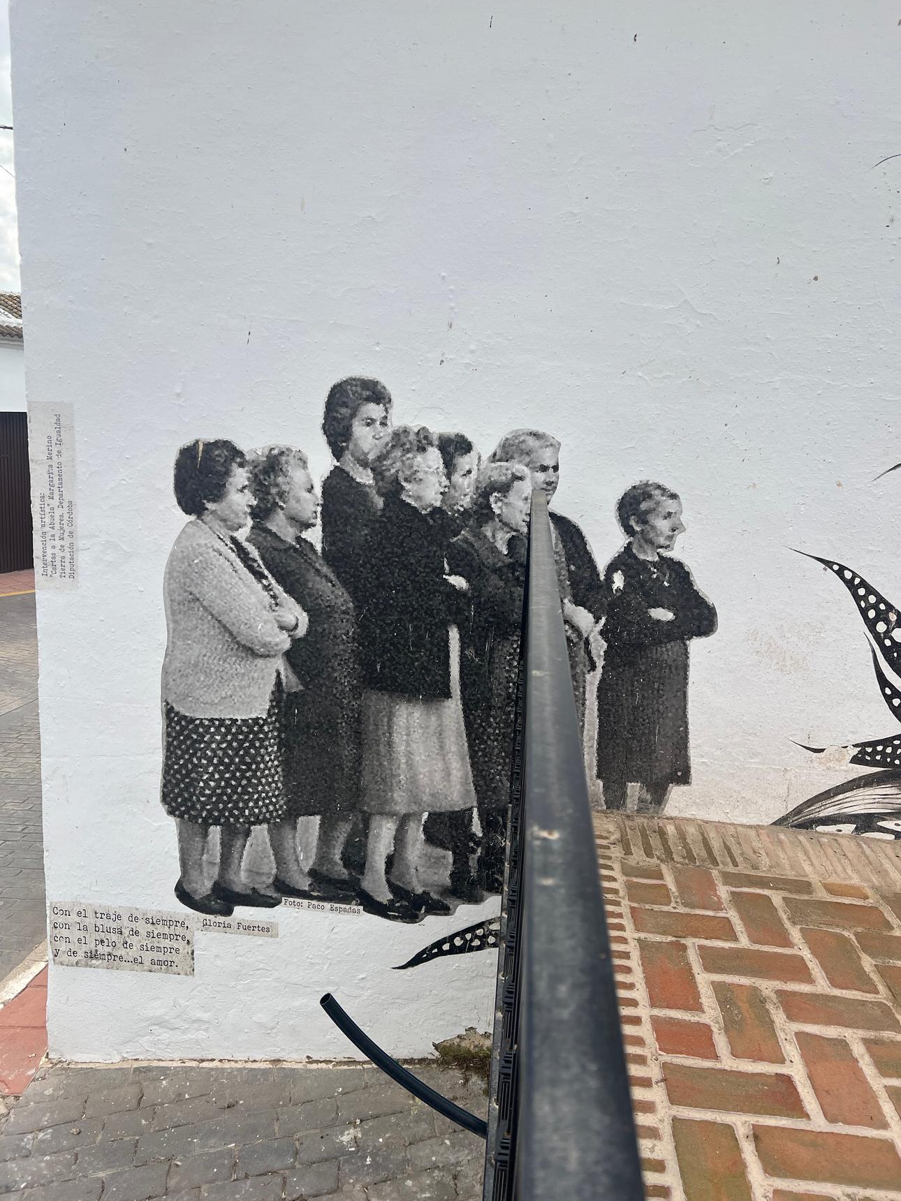 "Letters to Grandma" is the title of my photomural project, which I've carried out for the second year in various towns in Córdoba, for the important and much-needed LAND OF WOMEN project, in which RURAL WOMEN receive their well-deserved tribute. This initiative comes from the Equality Department of the Córdoba Provincial Council in collaboration with the town councils of the different towns: Fuente Ovejuna, Palenciana, La Granjuela, El Fontanar, and Moriles. It's a beautiful project, and I'm especially grateful to the granddaughters, daughters, and nieces of the WOMEN being honored, and to the women themselves: Carmen, Rafaela, Elisenda, Ana, Ezequiela, Eva, Conchita… for their dedication and enthusiasm, sharing with me memories, experiences, hardships, and above all, the love that these women poured out and that, fortunately, some will continue to pour out for a long time to come… that is their way of being in the world… love and devotion to all those around them. I also want to thank the people who encouraged me to pick up a paintbrush… Carmen, Ana, Luisa, Balbina, Janet, Tania…