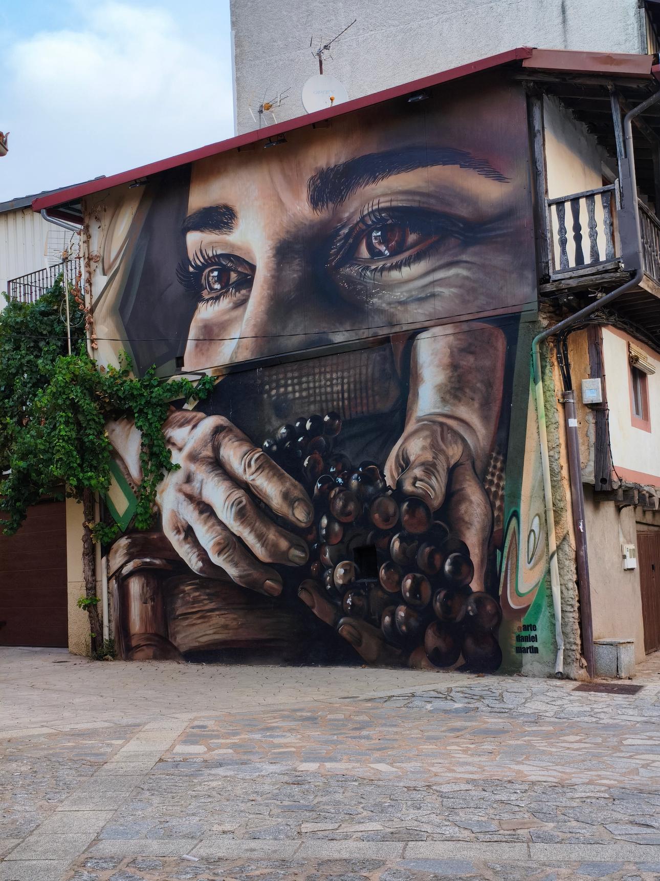 In the author's words: An elderly woman remembers her youth, her youthful gaze. Her hands now reflect the hard work of those years and the arthritis, the pain of time's passage. Two generations: one looking to the future and to her village, and her grandmother holding the fruits of that labor from so many years ago. Celia and her grandmother Ramona, the inspiration for this creation.