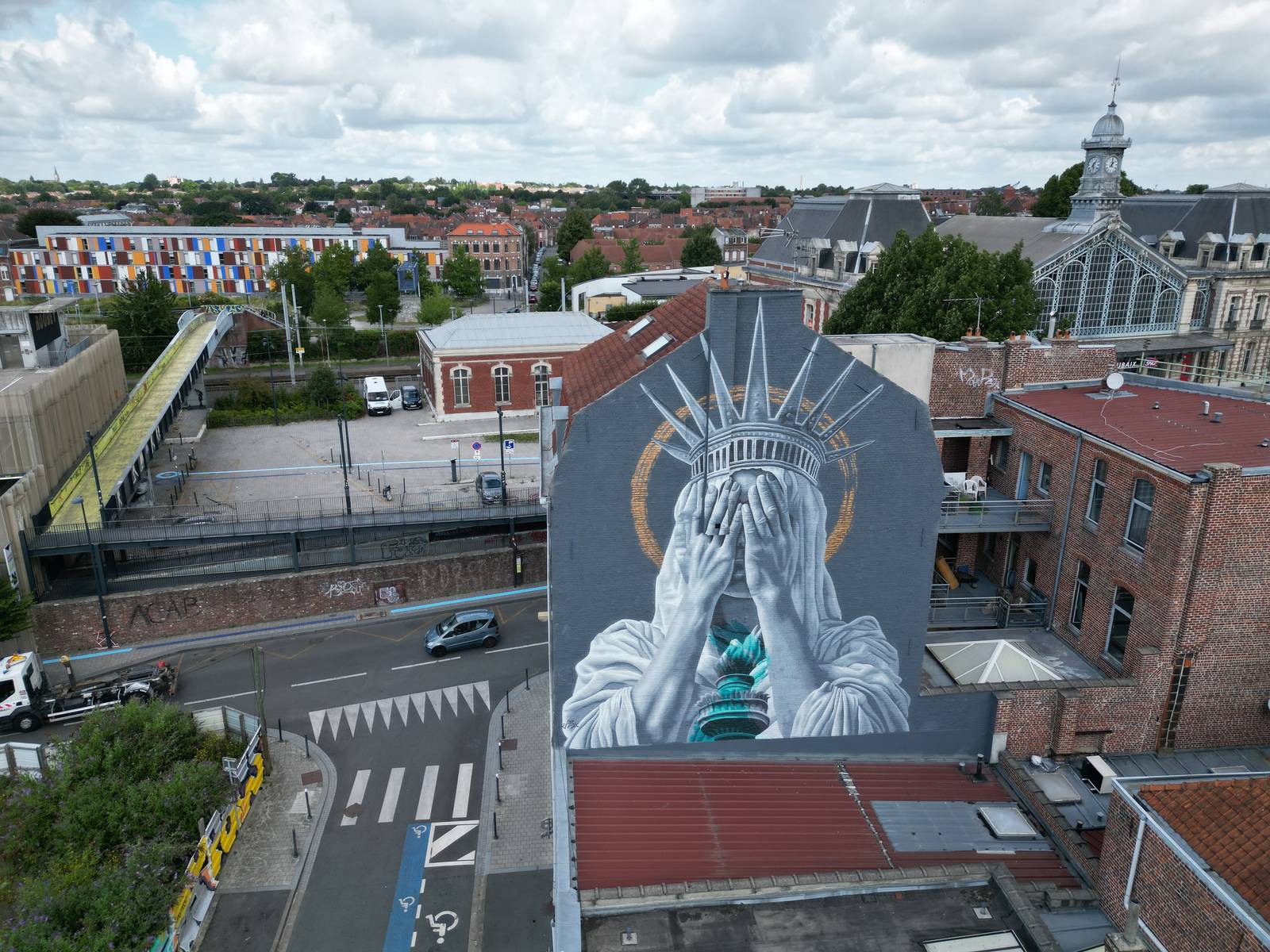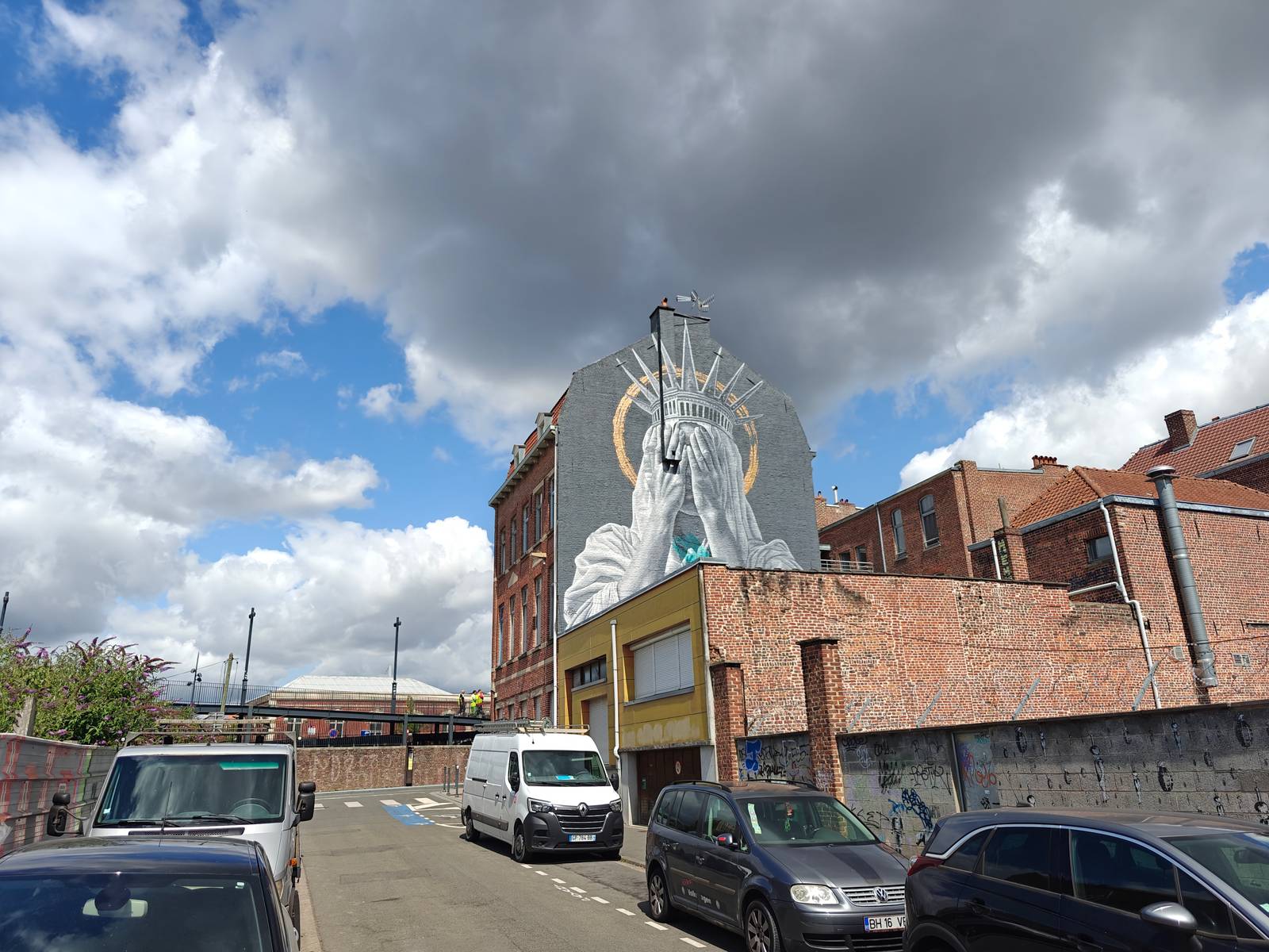 In Roubaix, a city with one of France’s largest migrant populations, I painted her covering her eyes, because the weight of the world has become too heavy to witness.