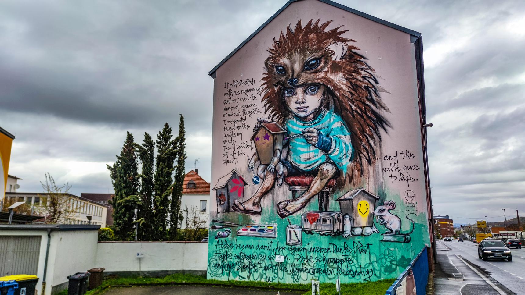 It is precisely these words that HERA von HERAKUT immortalized in metre-high letters across several floors on a firewall in Aschaffenburg's Erlenmeyerstrasse at the beginning of July.