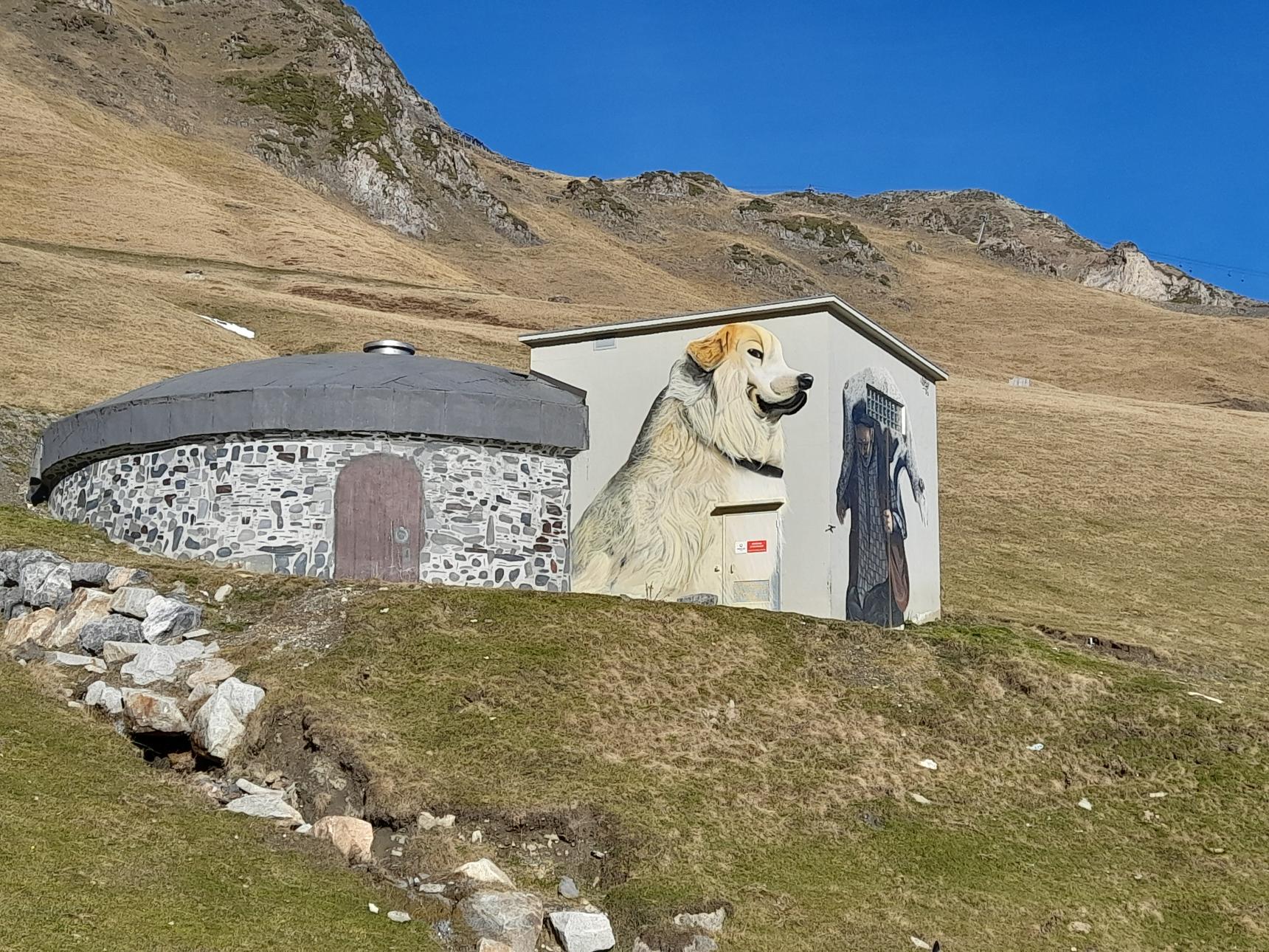 Peinture réalisée sur un transformateur électrique au dessus de la station de ski de "la Mongie" 65