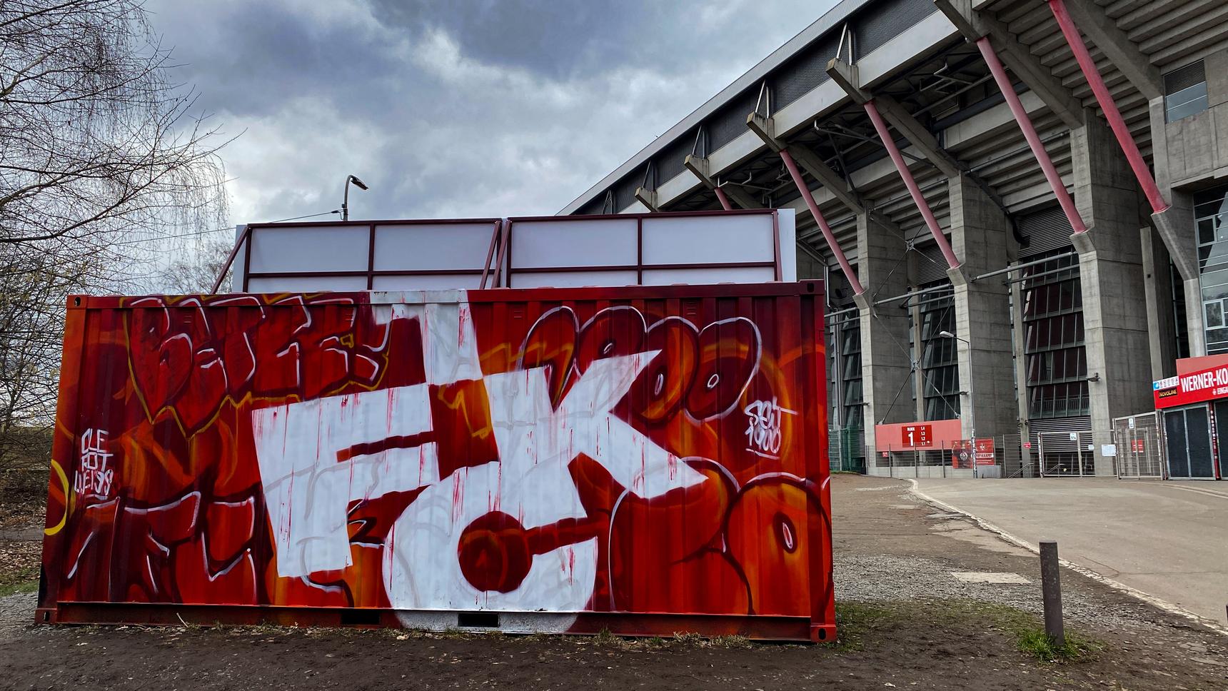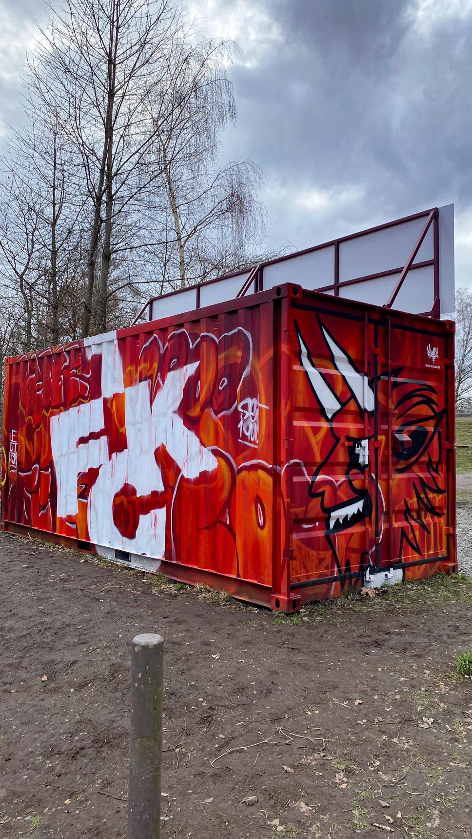 Here‘s another work of street artist Daniel Ferino (Maltag), dedicated to his favourite football club, the 1. FC Kaiserslautern. It is sprayed on a container opposite the Fritz Walter-Stadion.