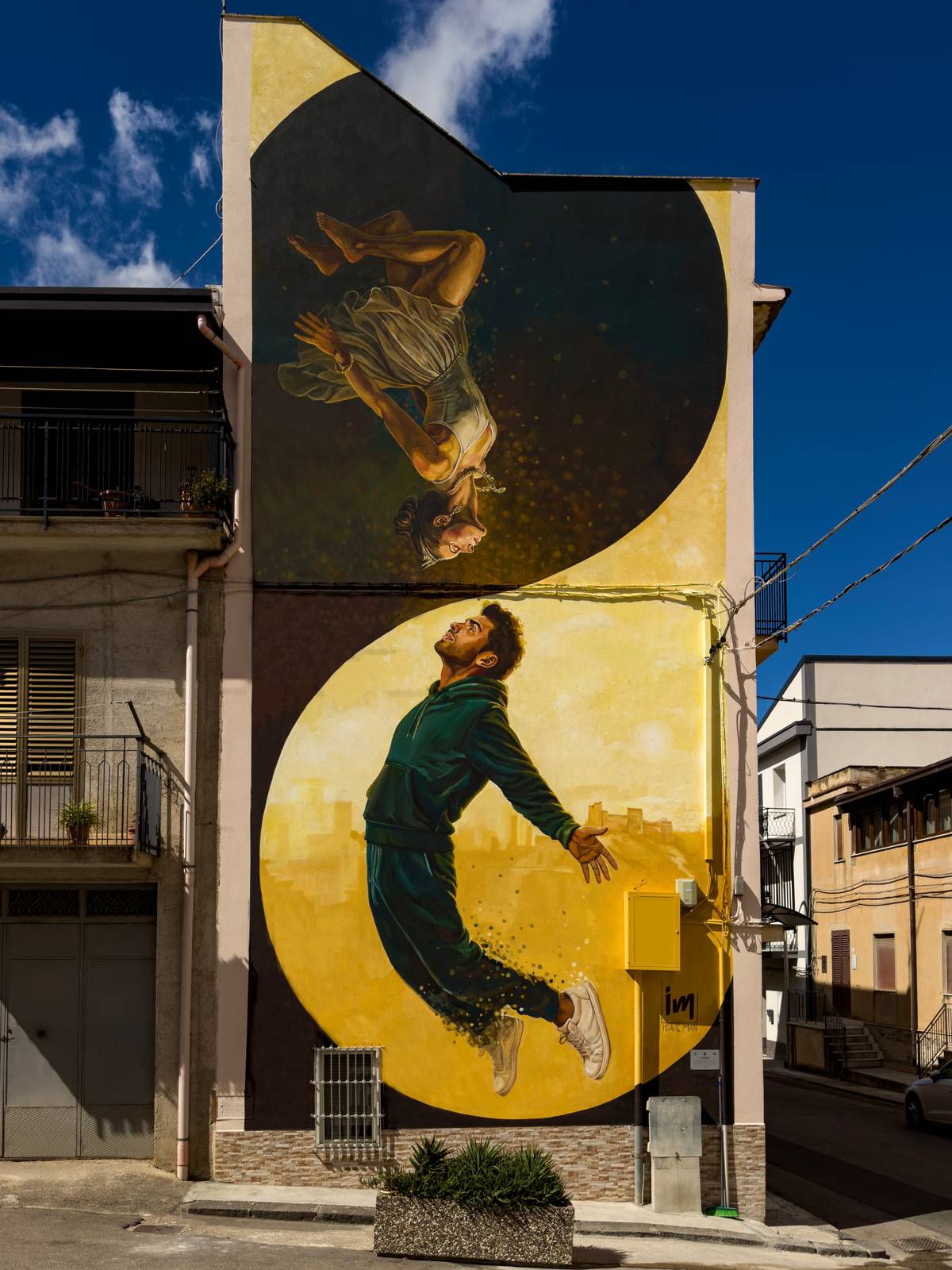 Il riufiuto con fermezza per ogni forma di violenza di genere, sia essa fisica, psicologica o silenziosa, affermando la dignità come valore assoluto. Due corpi sospesi si sollevano insieme, senza gerarchie né dominio, uniti da una forza comune: la solidarietà. Non si annullano, ma coesistono. È un invito a riconoscersi nella differenza, a scegliere relazioni fondate sull’ascolto, la cura, l’uguaglianza e il reciproco riconoscimento.