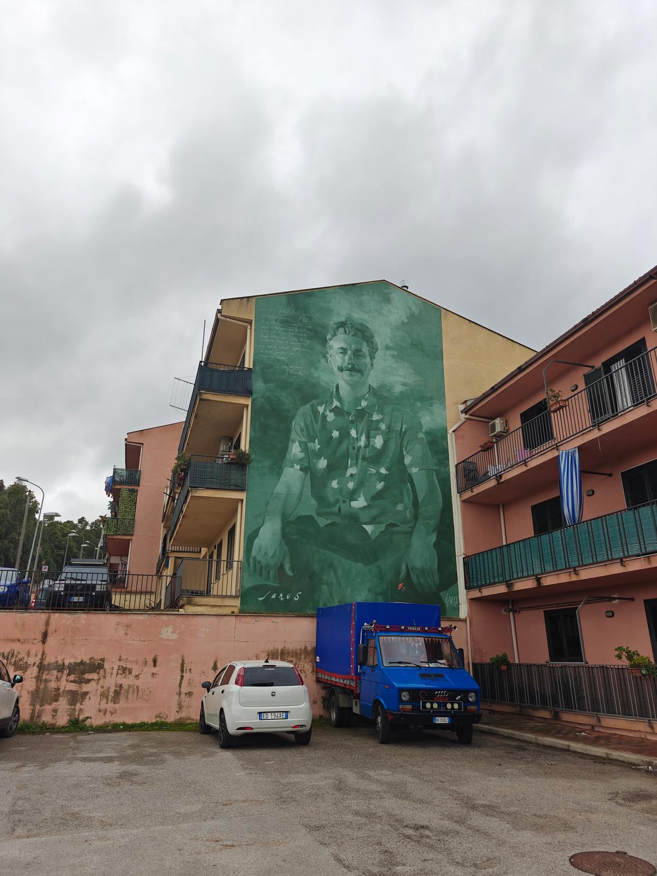 In a touching tribute, the mural honors a great figure from Mezzojuso, Gabriele Buccola, whose life and work left an indelible mark on the field of Italian scientific psychology. Born in 1854, Buccolas journey through the corridors of religious education at the Basilian monastery and Greek Albanian seminary shaped his profound insights into a solid humanistic education, inspired by the Eastern Catholic rite. During his short but intense scientific activity, which lasted only a decade, from 1875 to 1885, he established himself as a central figure in the European dialogue between different psychological theories. Jarusâ artistic vision breathes life into Buccolaâs image, capturing him in an almost ethereal simplicity, an austere pose, his hands relaxed on his knees and his posture and attire seamlessly blending the old with the new. The expression on his face tells the story of intellectual fulfillment and contentment, revealing the serenity of someone who has no regrets in life. In this mural, Jarus intertwines the threads of history and modernity, portraying Buccola with contemporary clothing, so different from what was used in the 19th century. What better metaphor to underline the relevance of his figure, the modernity of his thought?