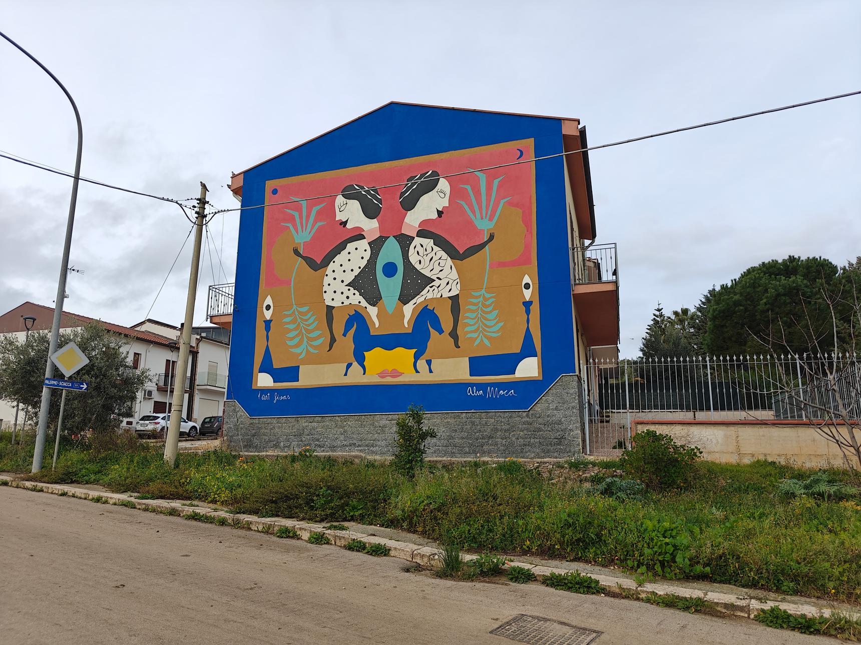 AlvaMocaās mural honors the agricultural soul of Roccamena, celebrating the farmers whose labor turns earth into nourishment. Their work is portrayed as a kind of sacred choreography, a harmonious exchange between human devotion and natureās generosity. These caretakers of the land are depicted as holders of ancient knowledge, their daily rituals transforming soil into lifeāsustaining abundance.
