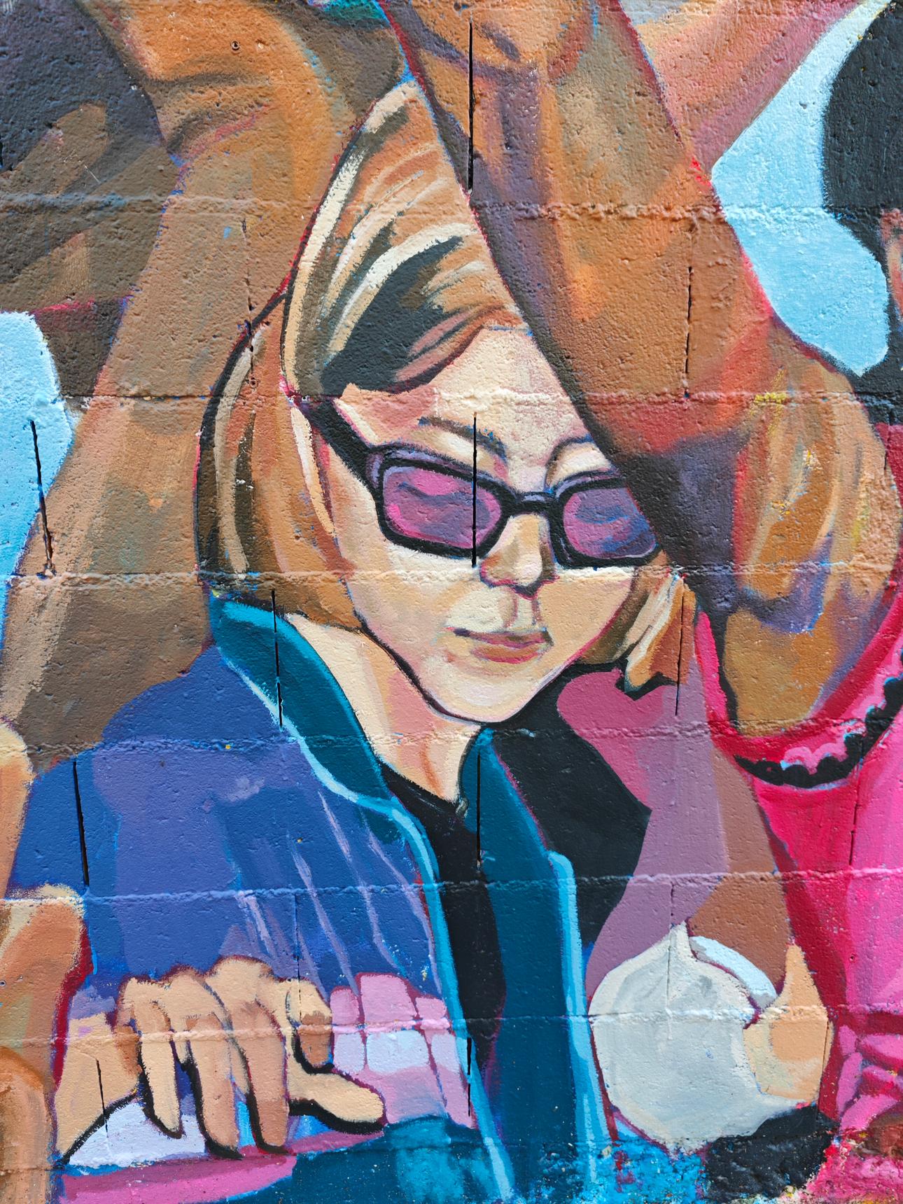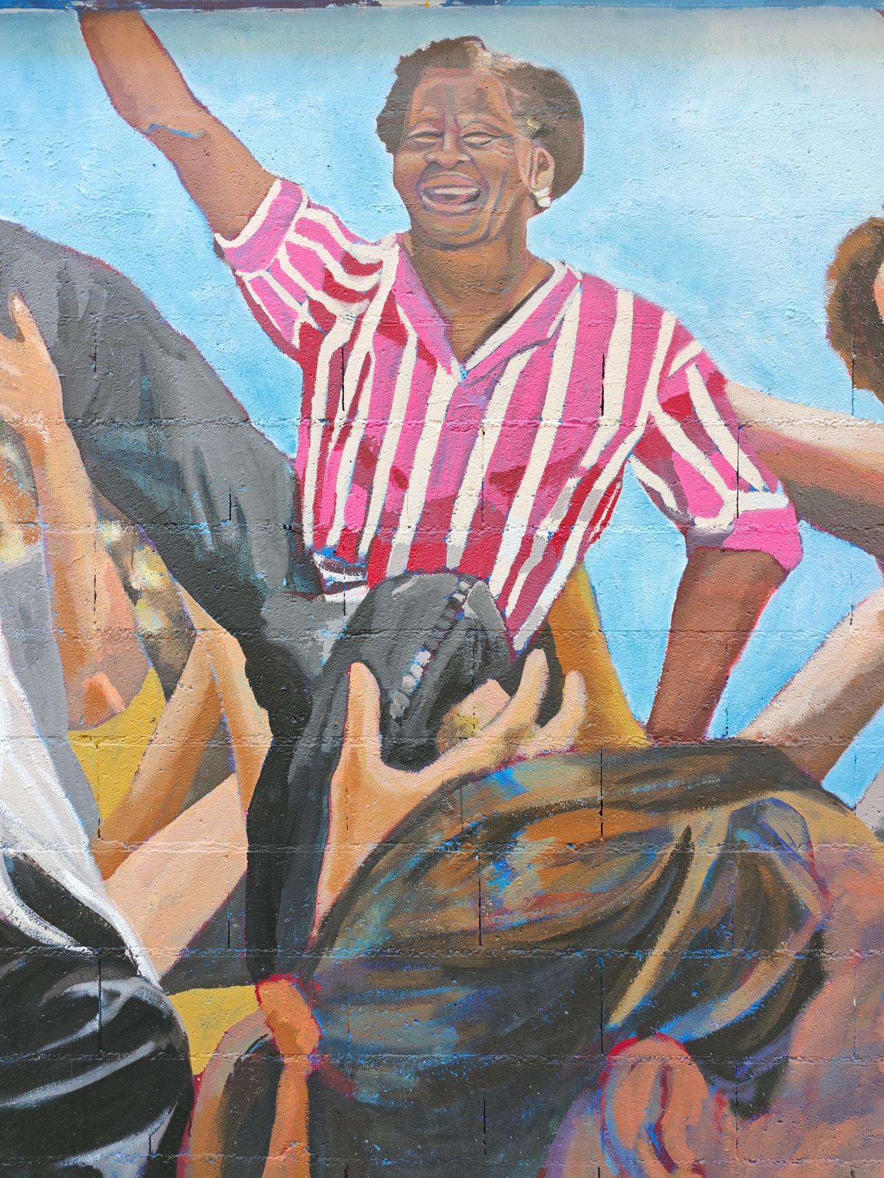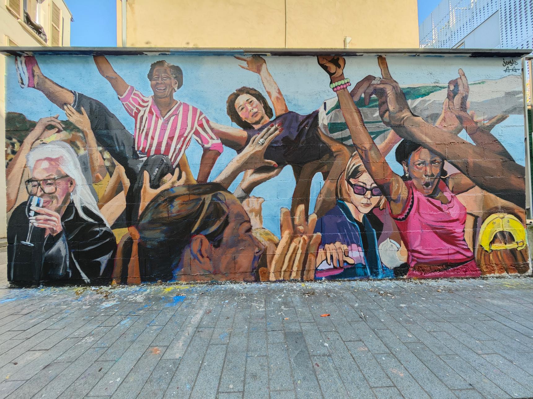 To celebrate Gender Equality Week, this mural represents a crowd carried by festive and collective energy, composed of women from all backgrounds.