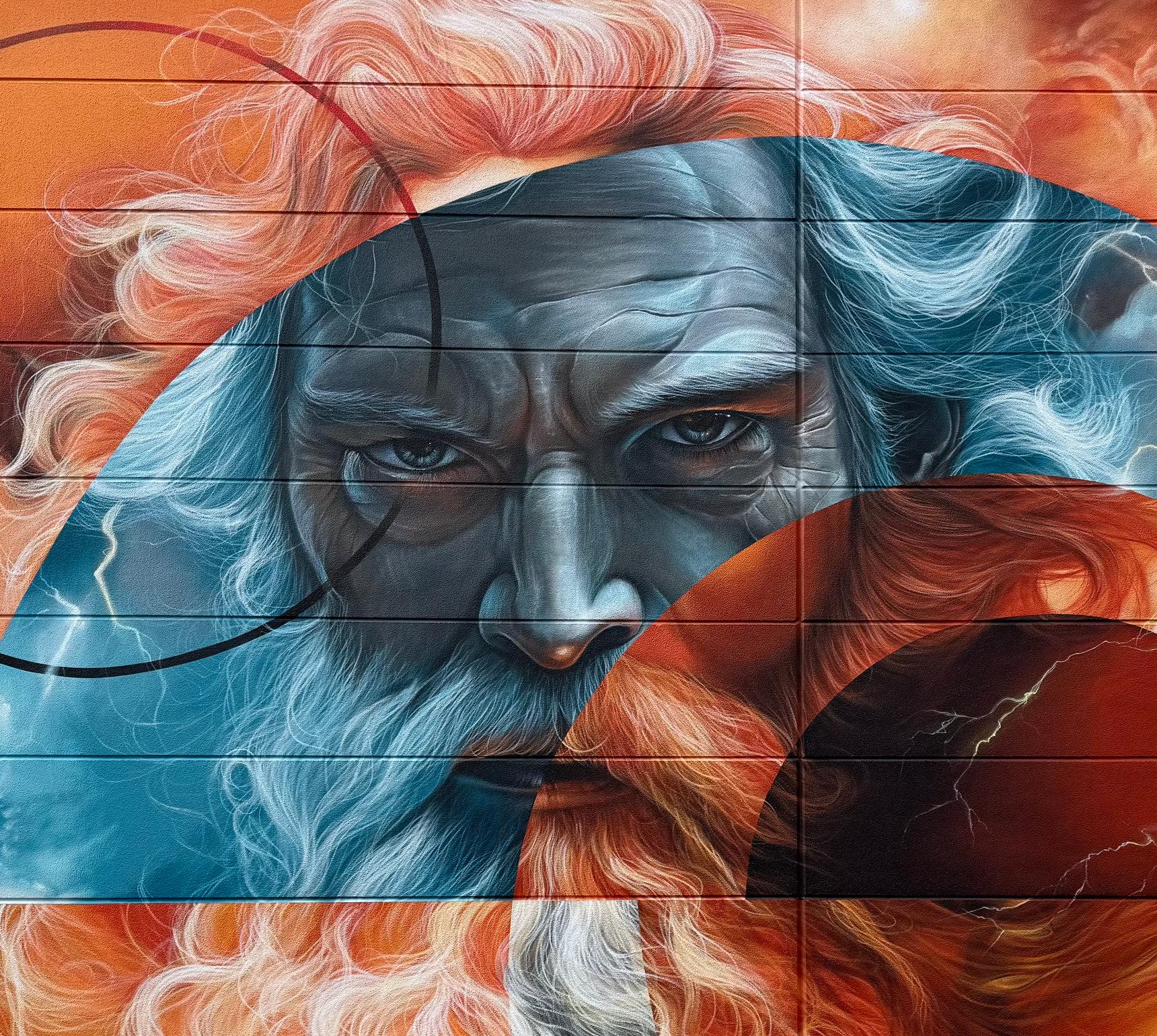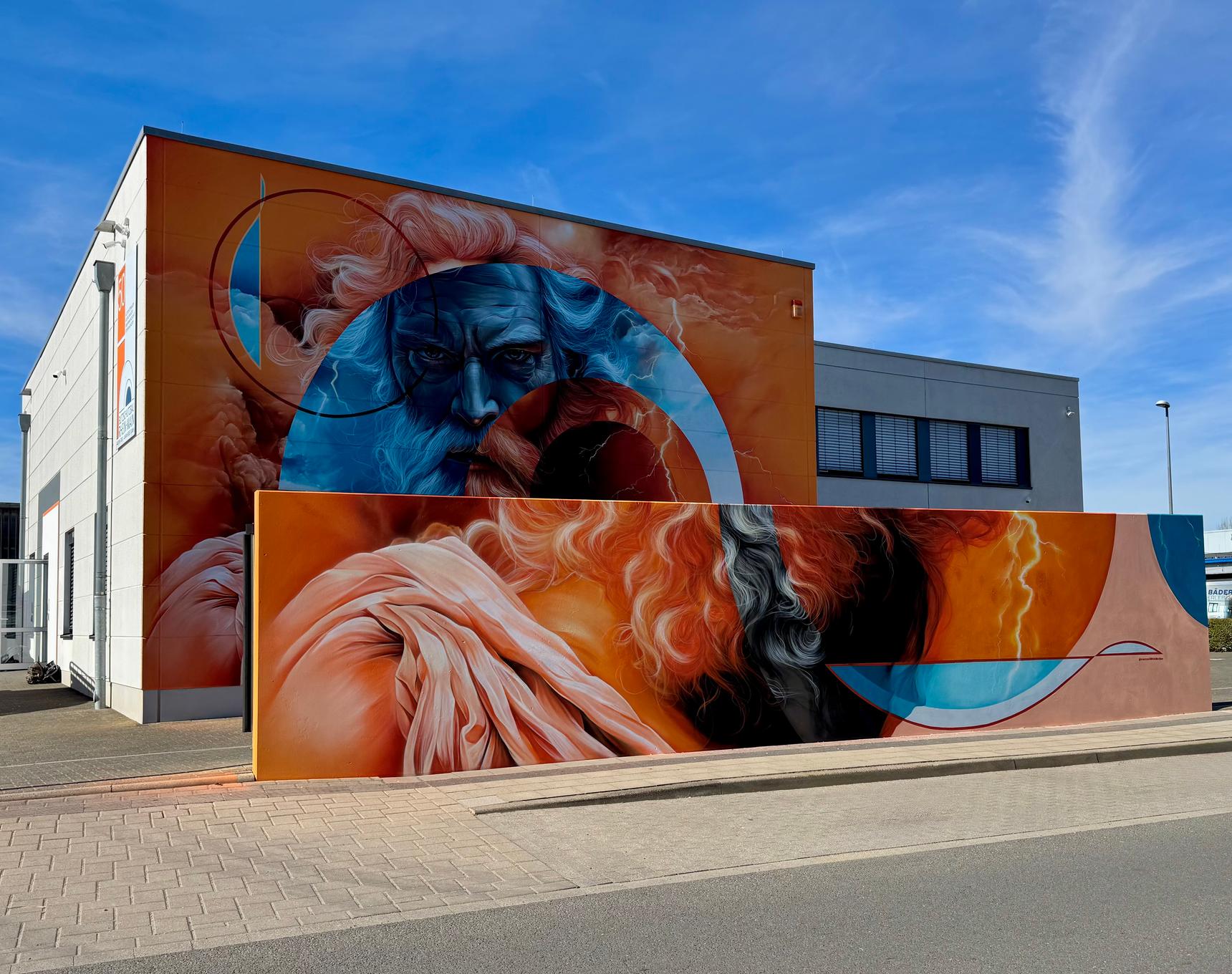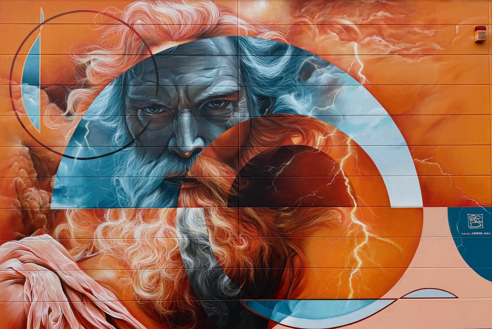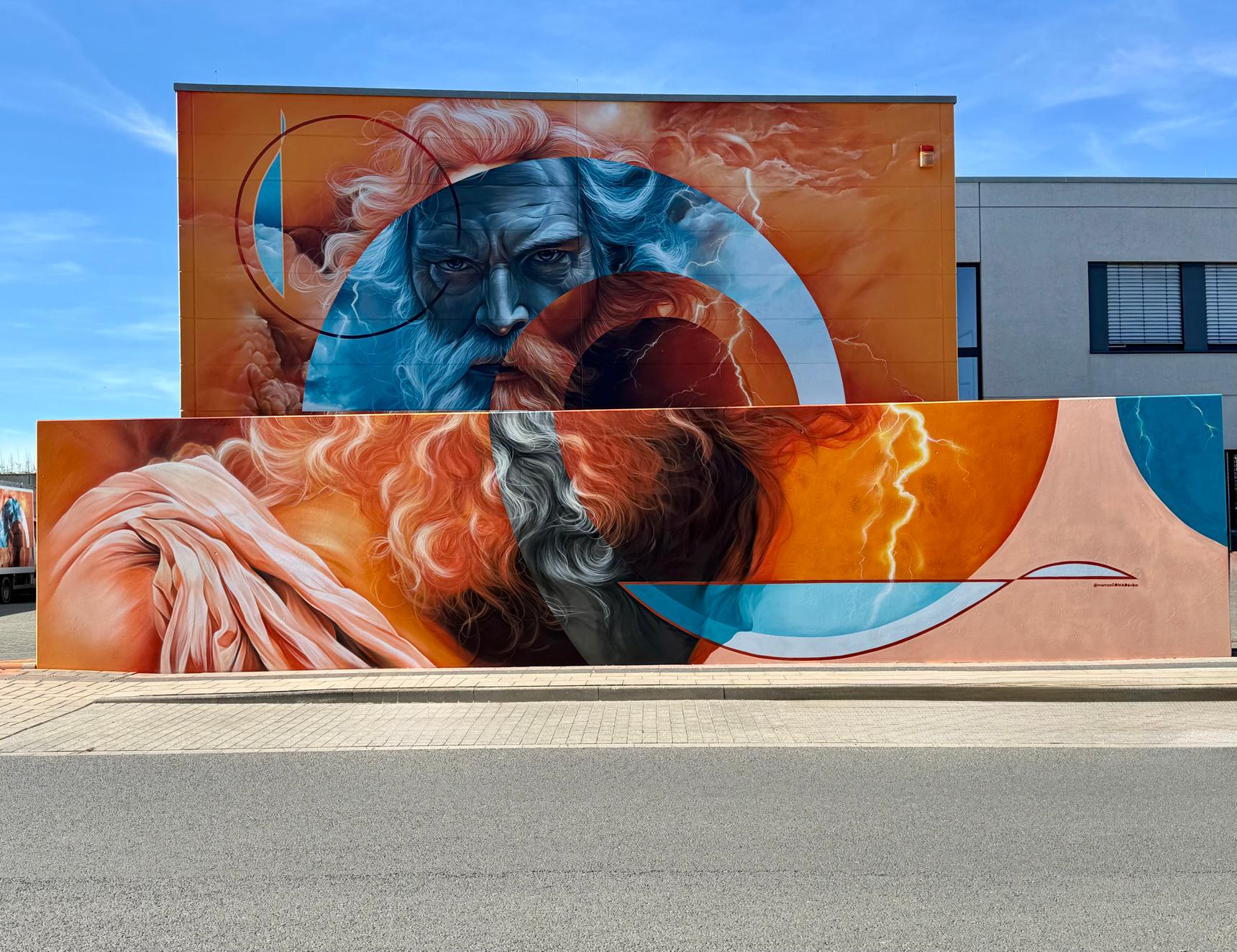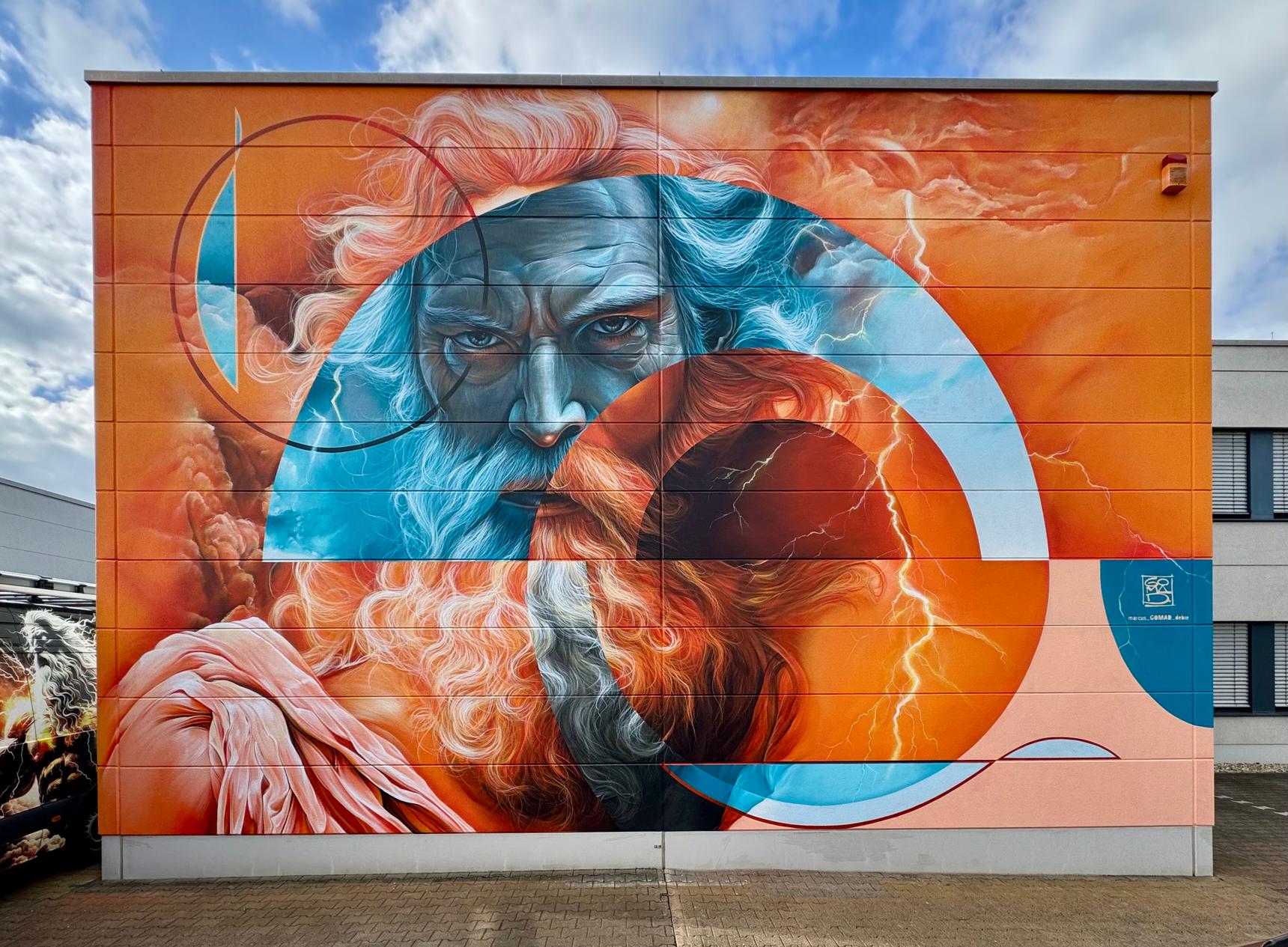 Twin wall mural of ZEUS, in Aachen-Germany.