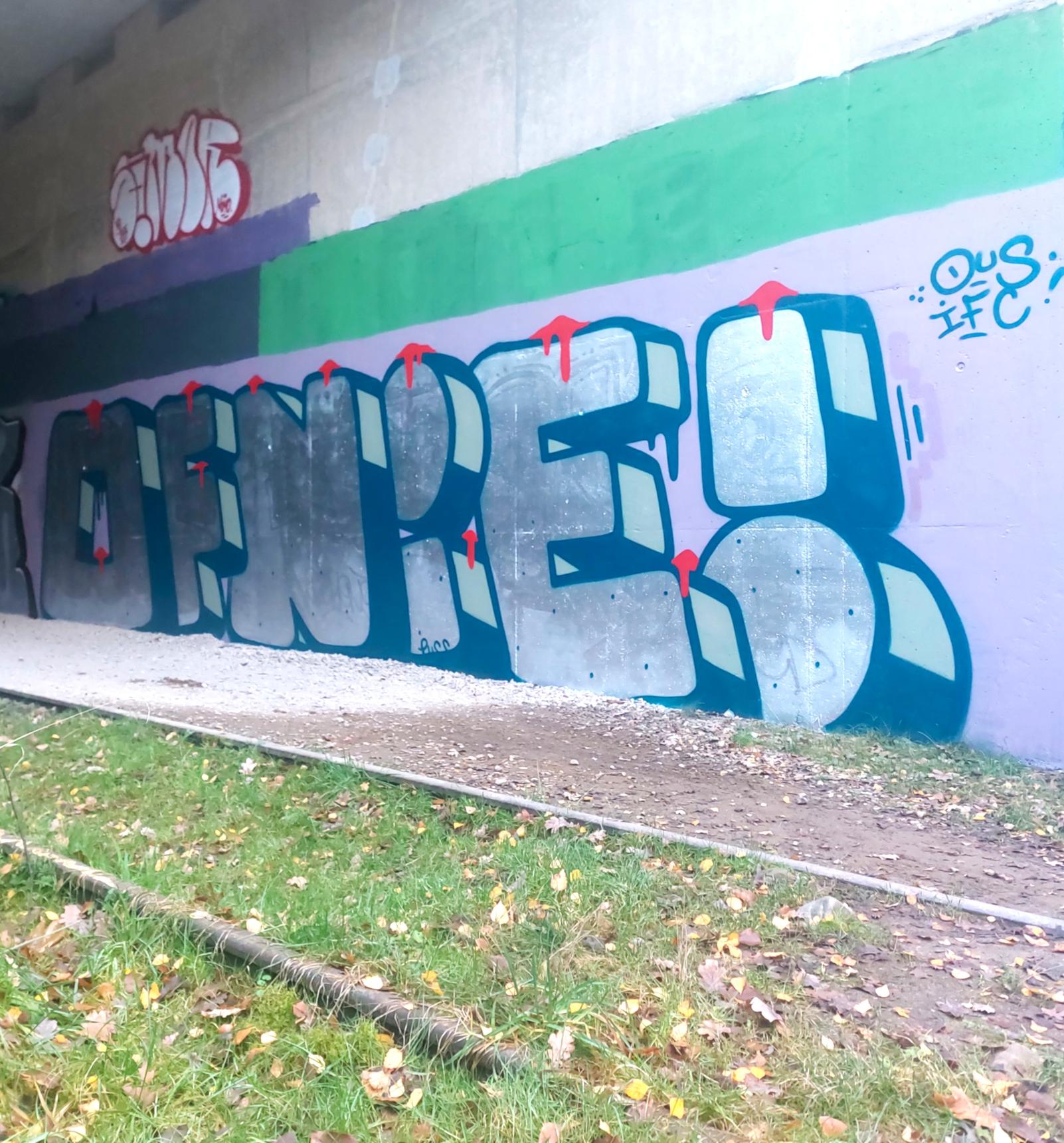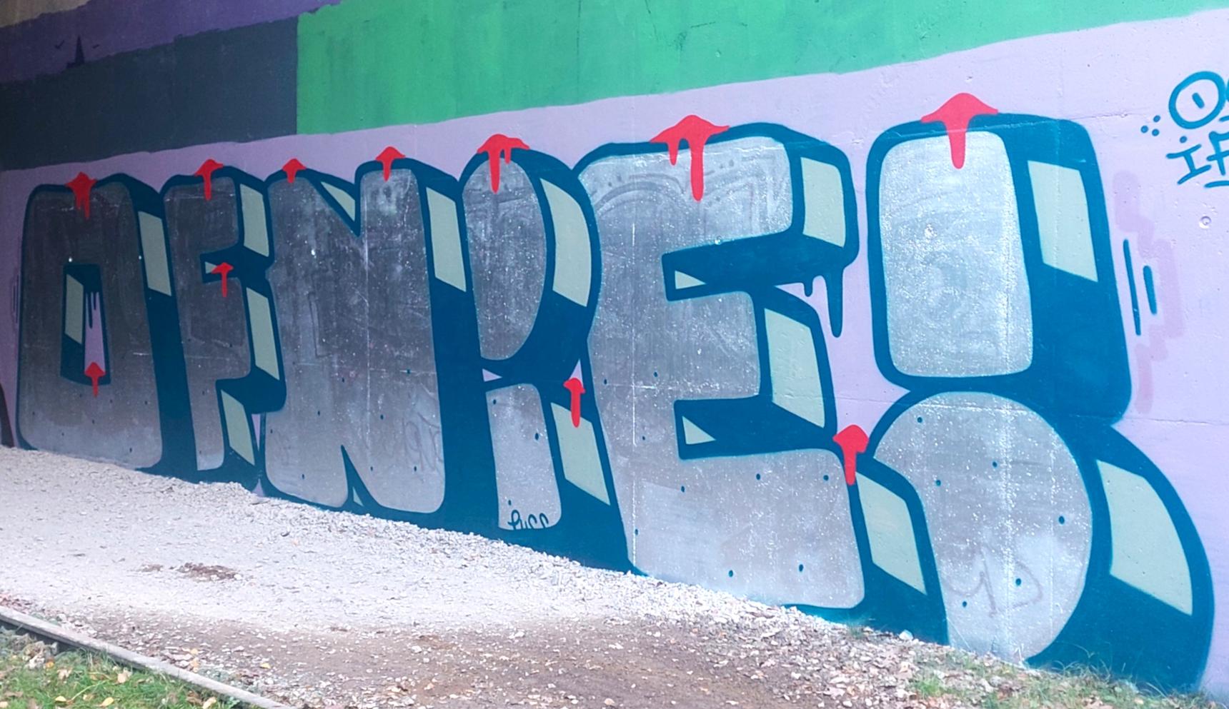 Muurschildering van Jayder Tatoos, onder het pseudoniem Ofnie, op de zijwand van de oude spoorwegtunnel.