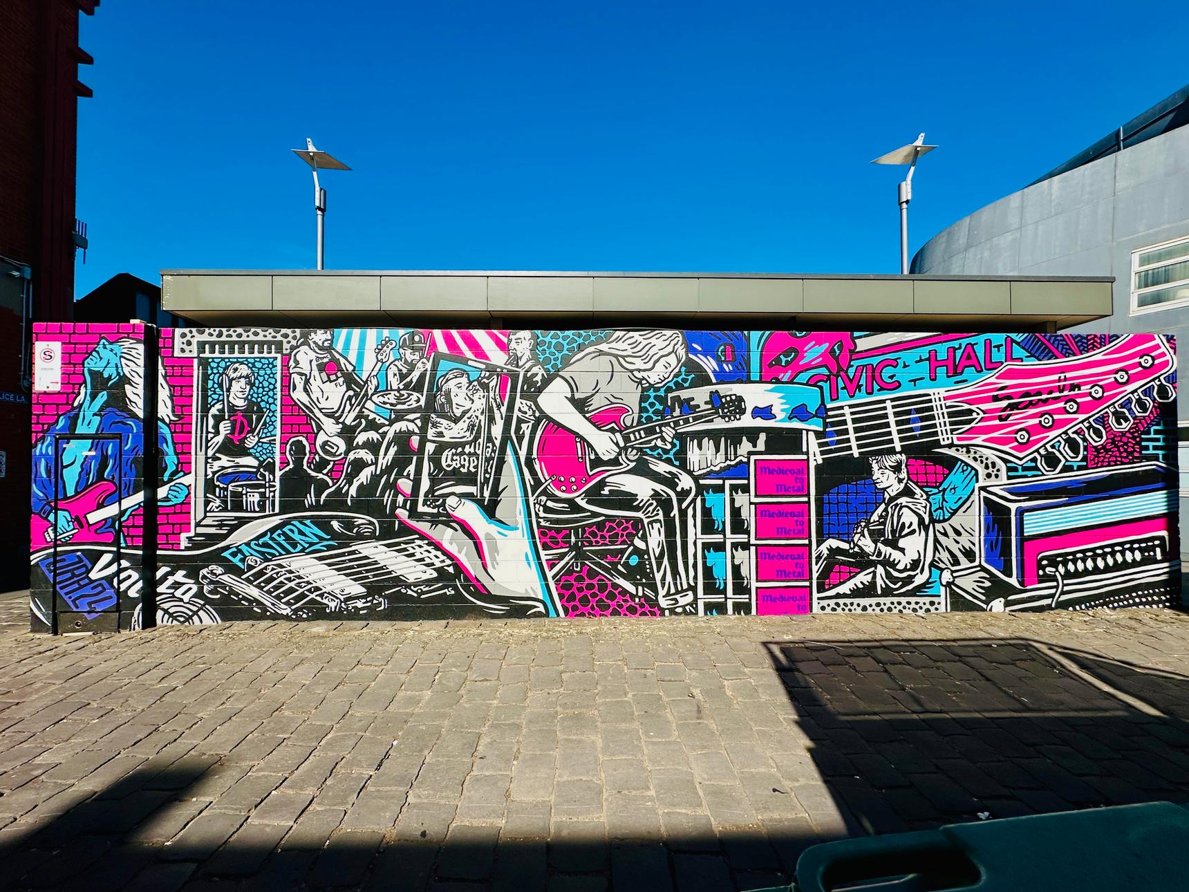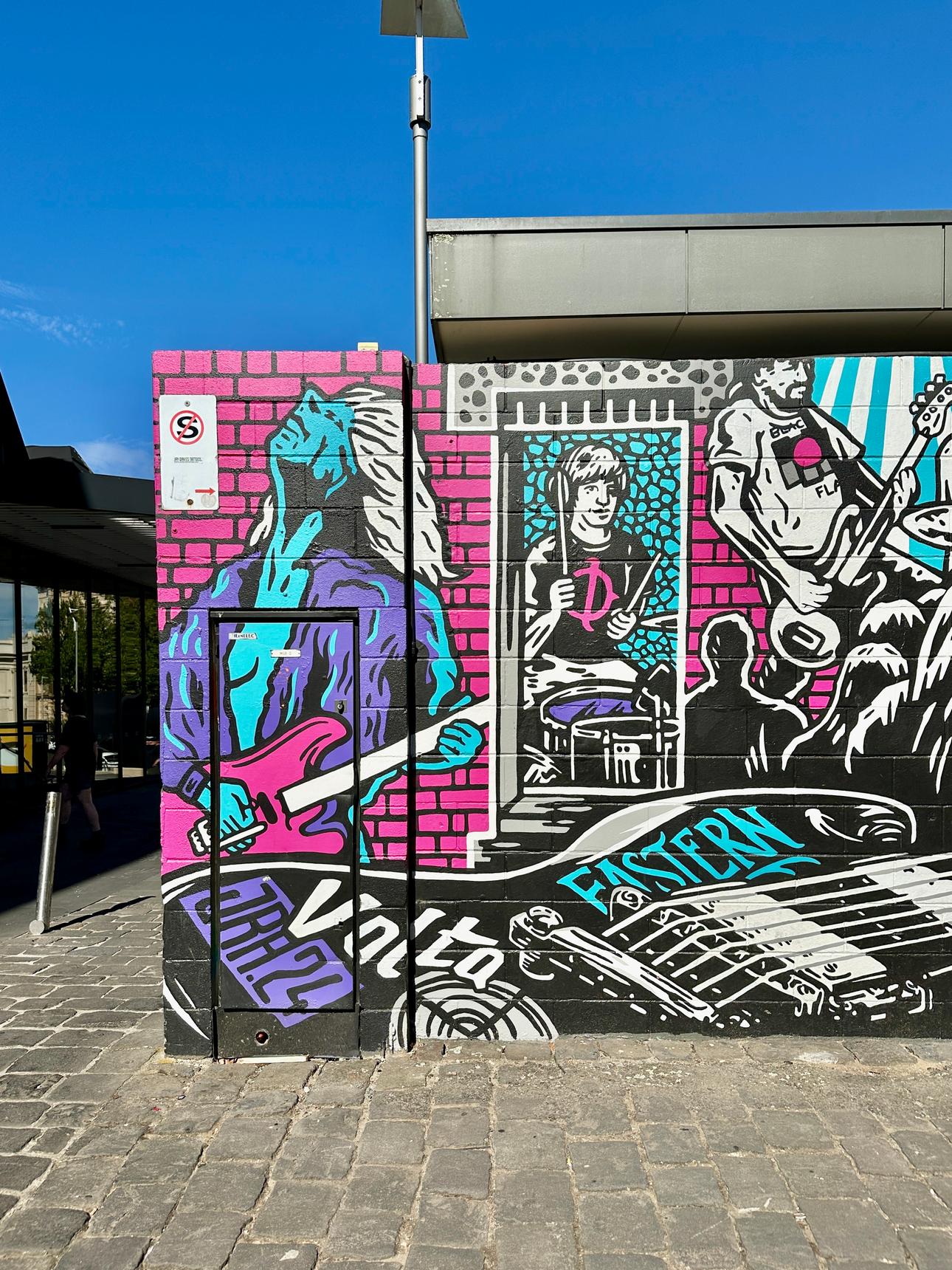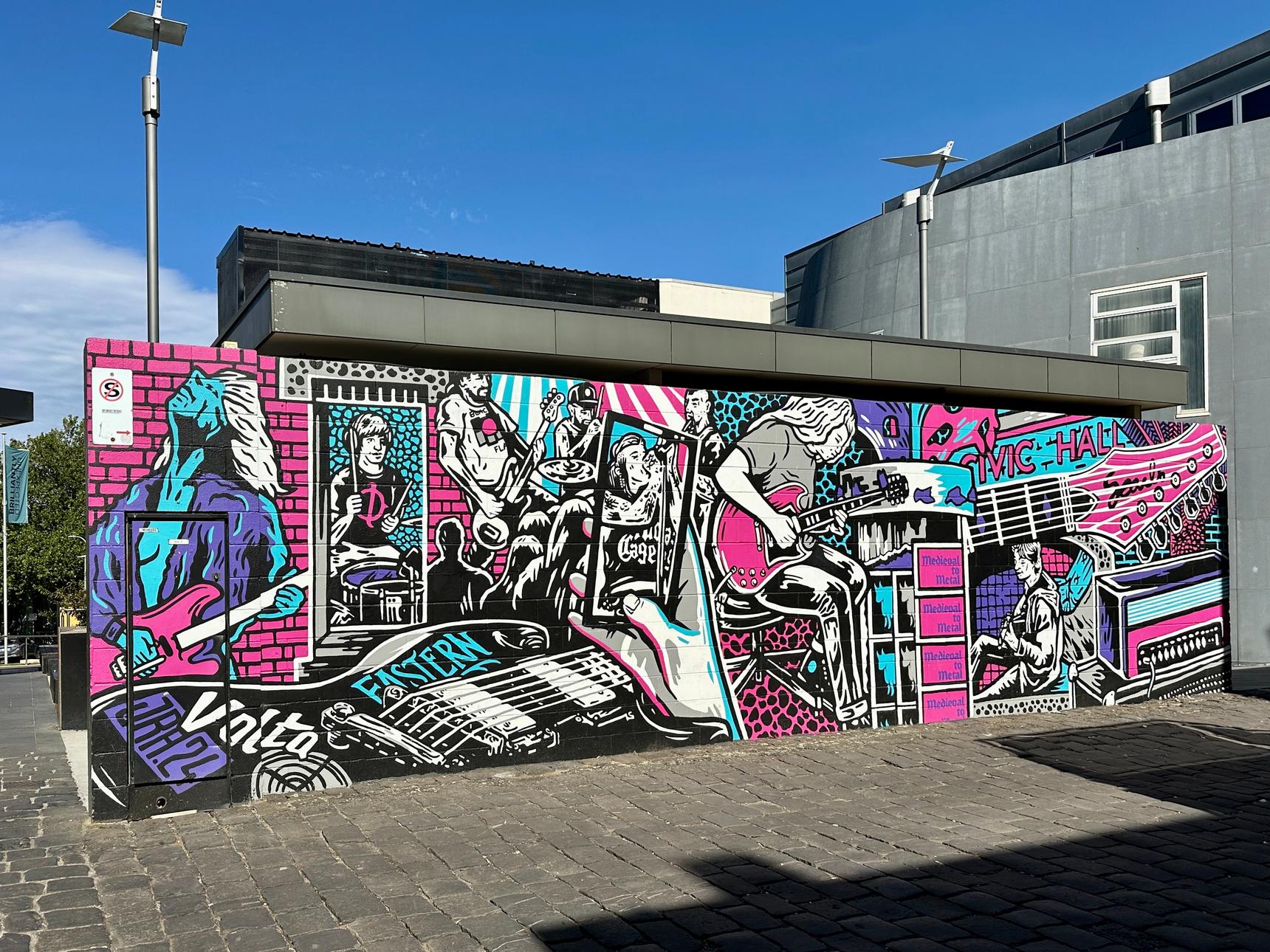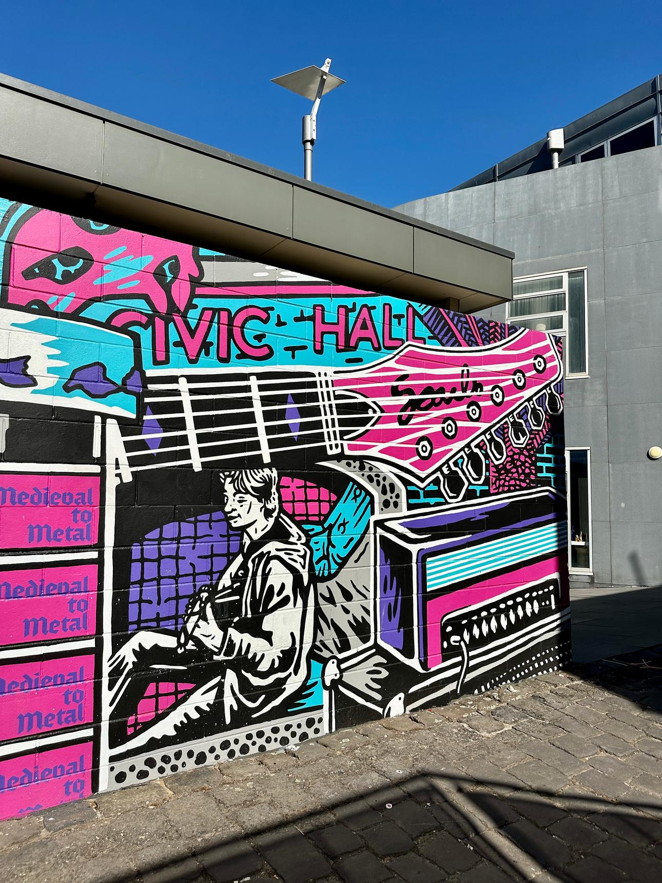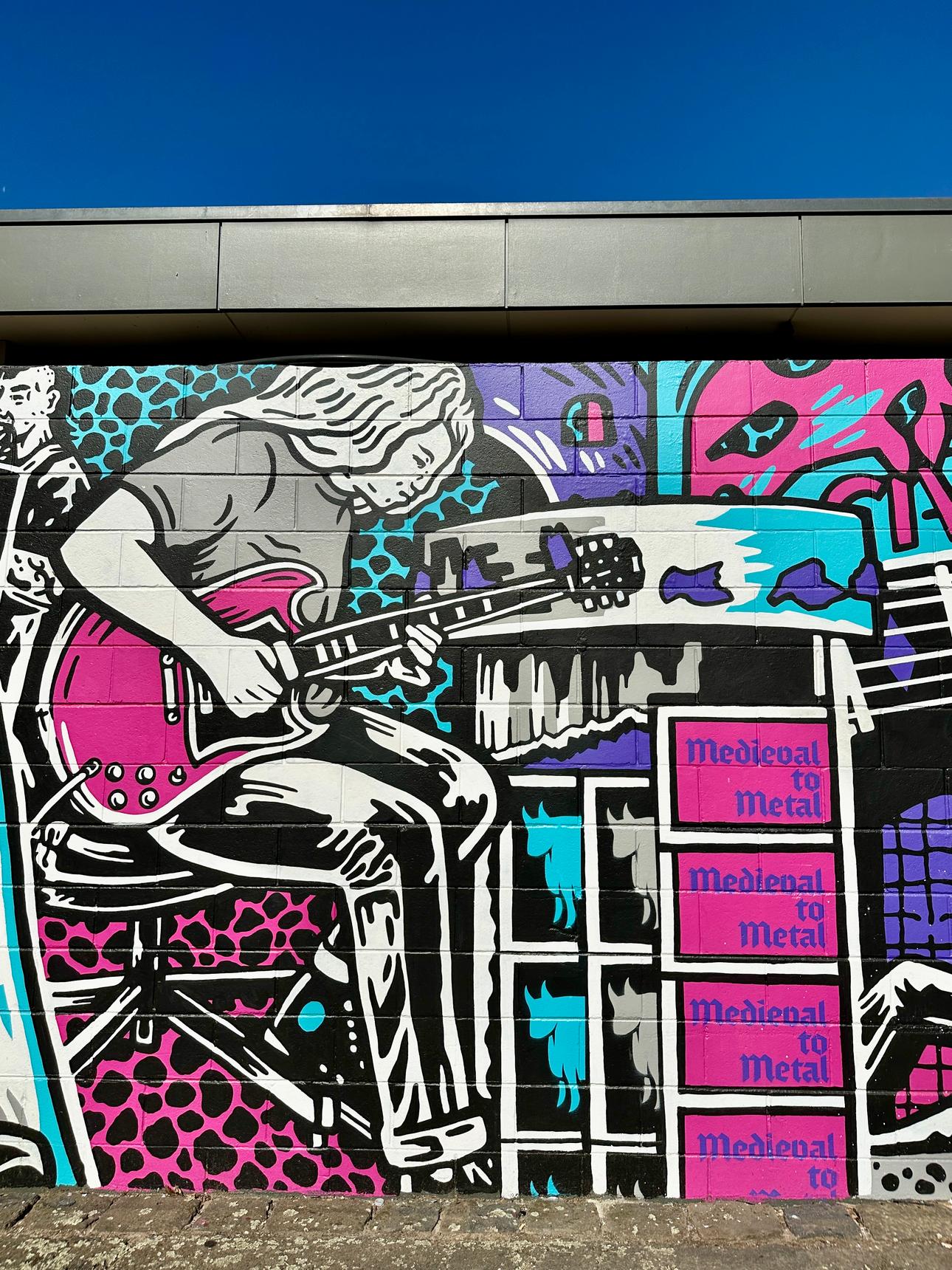 The mural is a nod to Ballarat’s live music scene, as well as the acclaimed Medieval to Metal exhibition currently on show at the Ballarat Art Gallery.