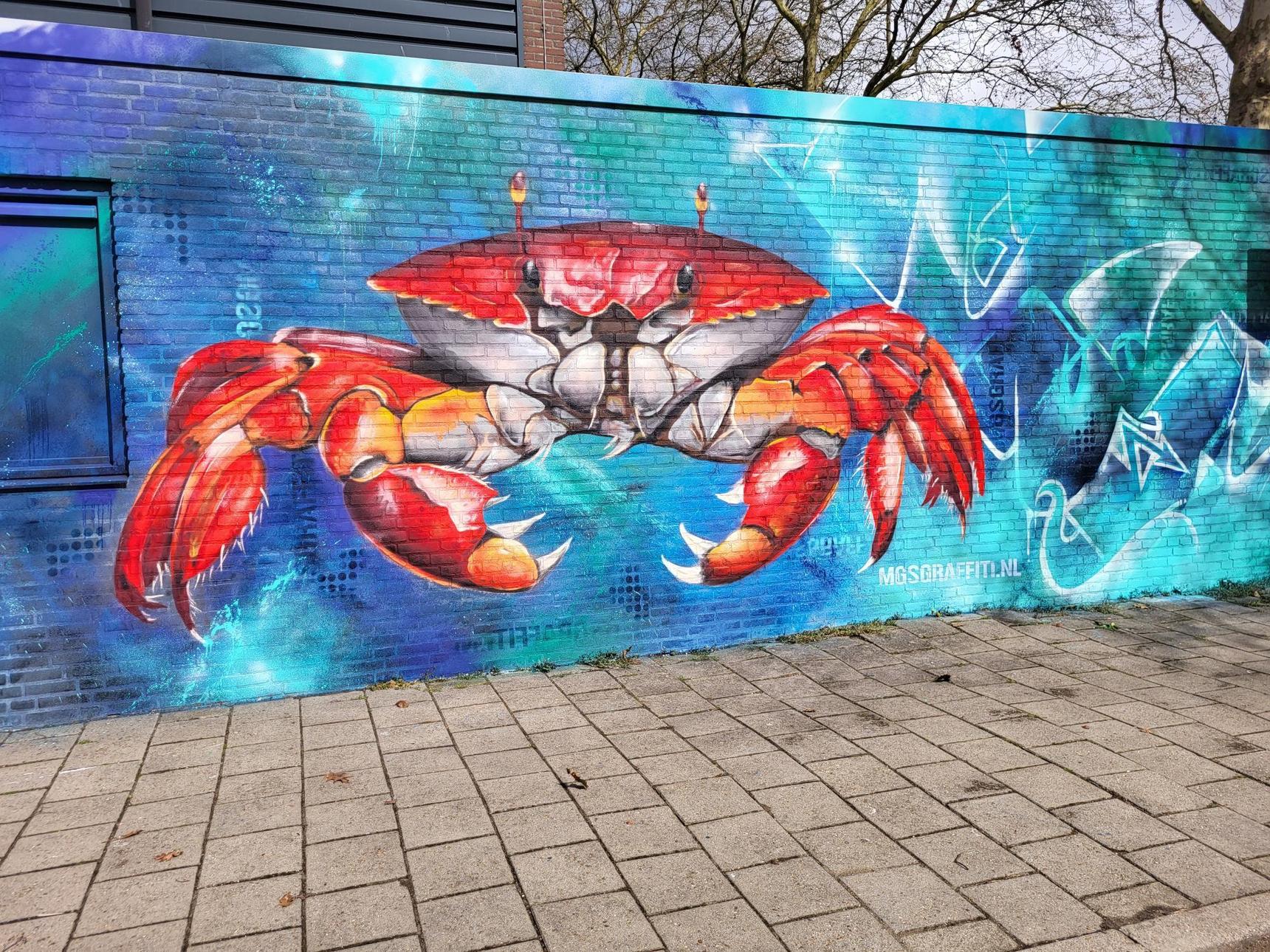 As a proud resident of Bergen op Zoom, it was bound to happen that the artist would eventually spray an ode to the crab onto a wall.