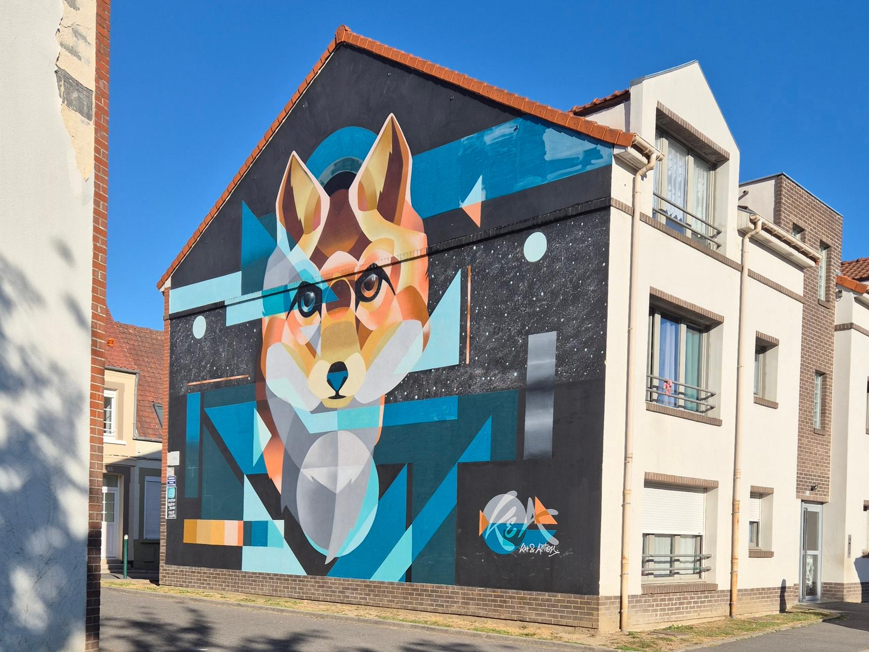 Cette fresque a été réalisée par les deux artistes Kat & Action à l’occasion de la 5ème édition de la Biennale Internationale d’Art Mural ( BIAM #5 – 10 Mai au 2 Juillet 2021) organisée par l’association Collectif Renart .
