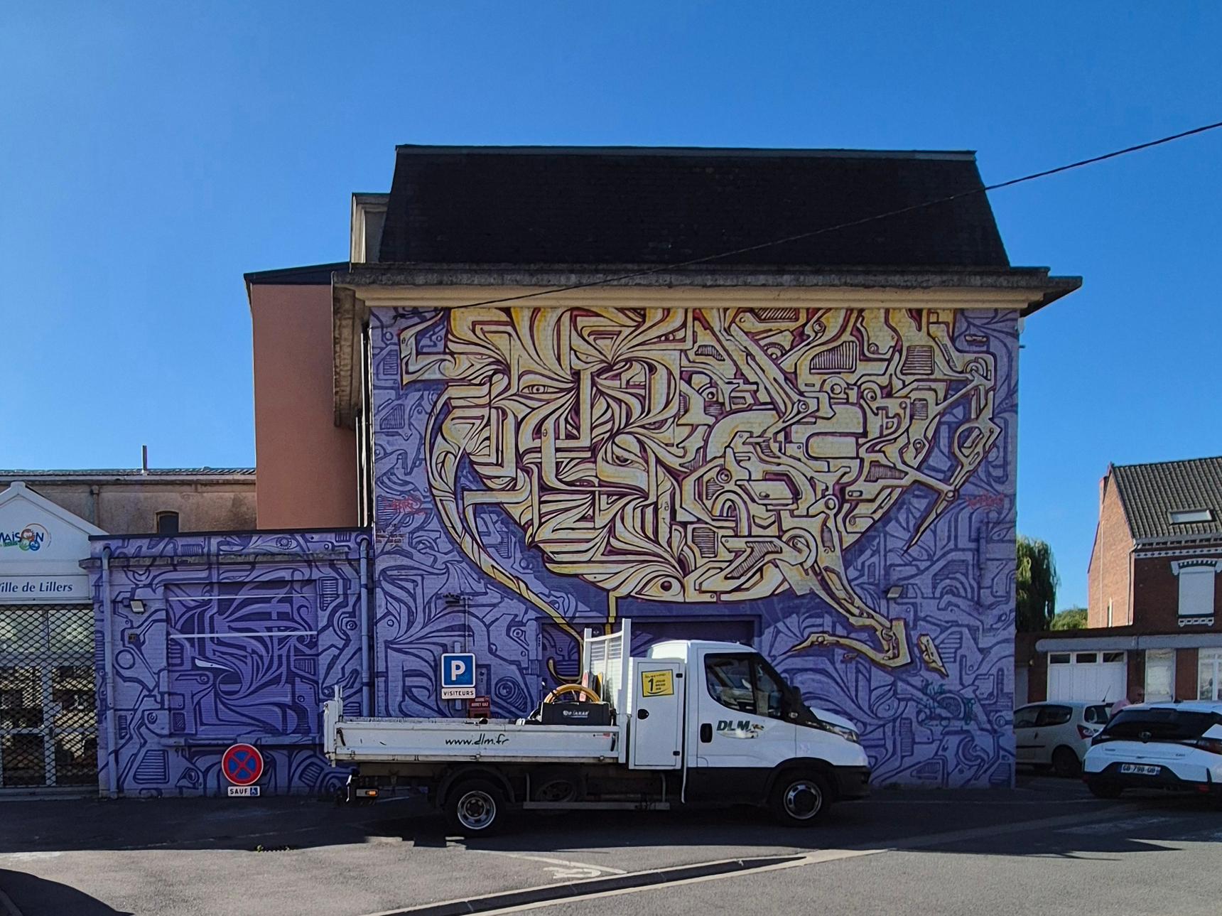 Cette fresque a été peinte par Astro & Kanos, qui ont également profité de l'occasion pour changer l'apparence du centre culturel de la ville de Lillers.