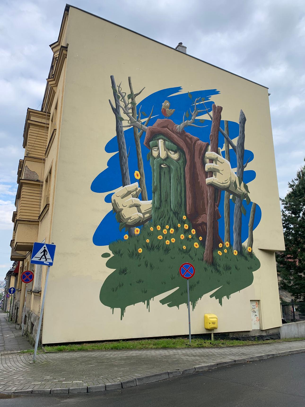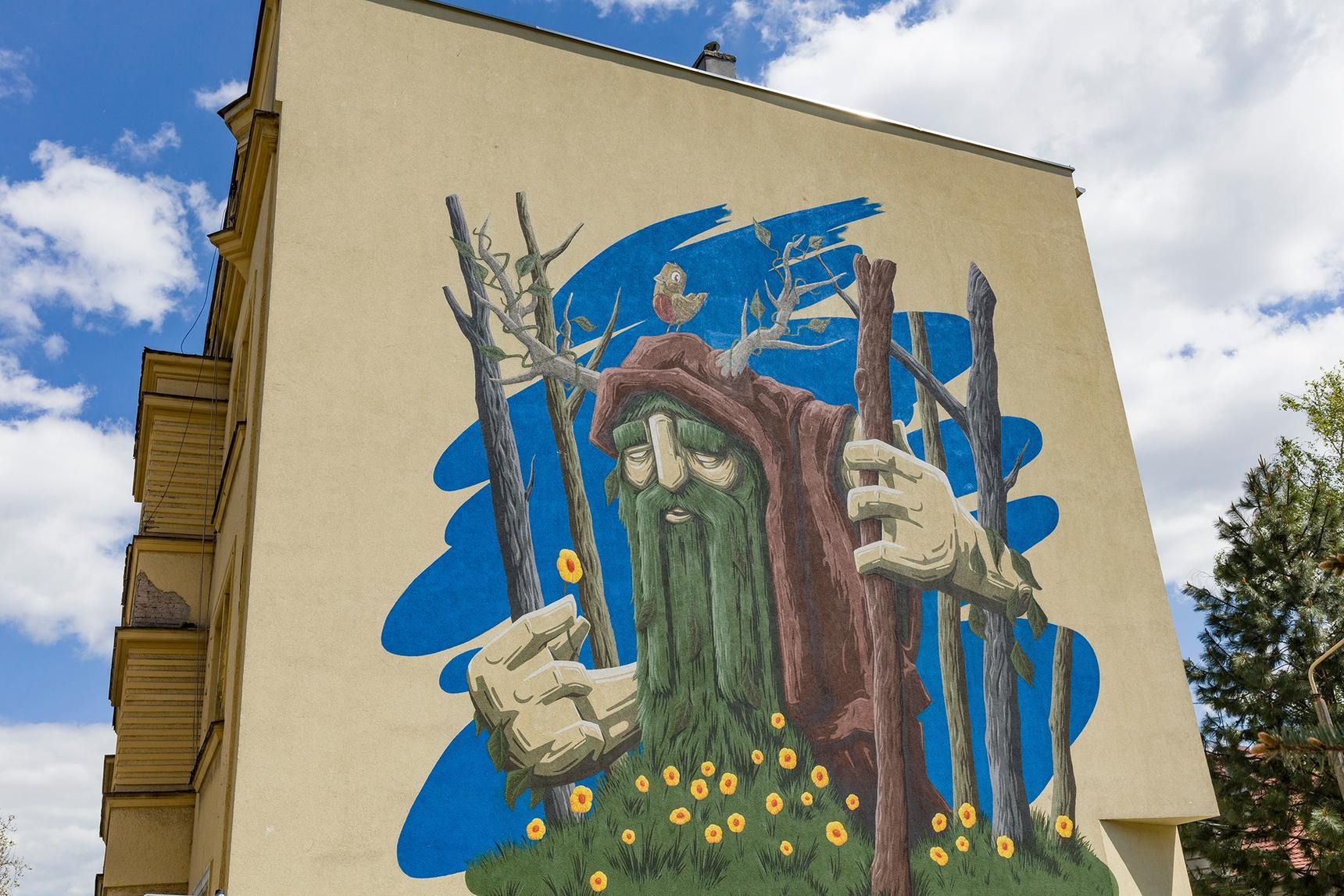 The “Leshy” mural was created as part of the 9th edition of the “oBBraz miasta” project, organized by Bielska Gallery BWA and the Bielska Gallery Foundation.