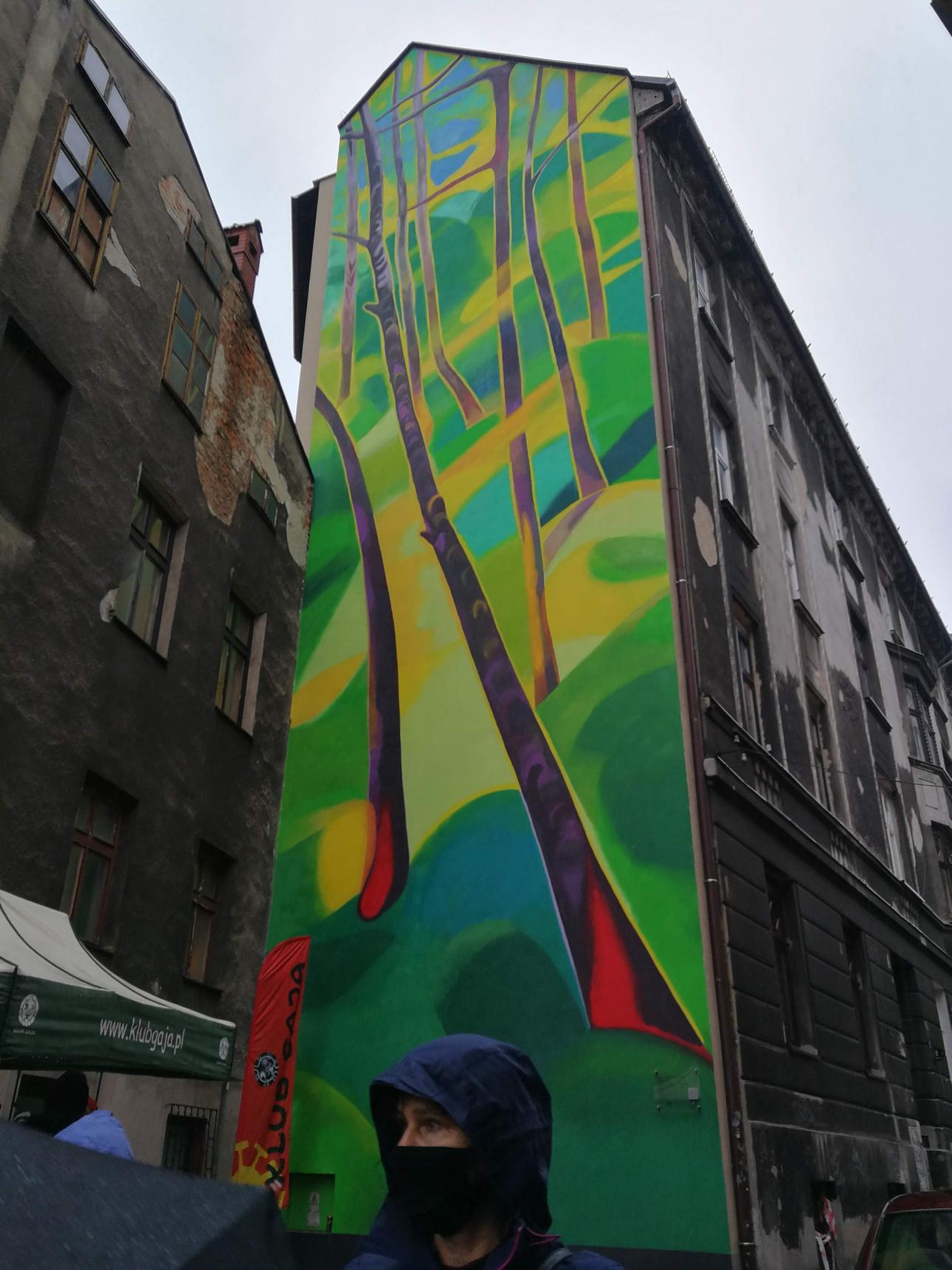 The mural was created as part of the Klub Gaja’s “Festival of the Tree 2020” educational program, in collaboration with the City of Bielsko-Biała, Bielska Gallery BWA, and ALDI.