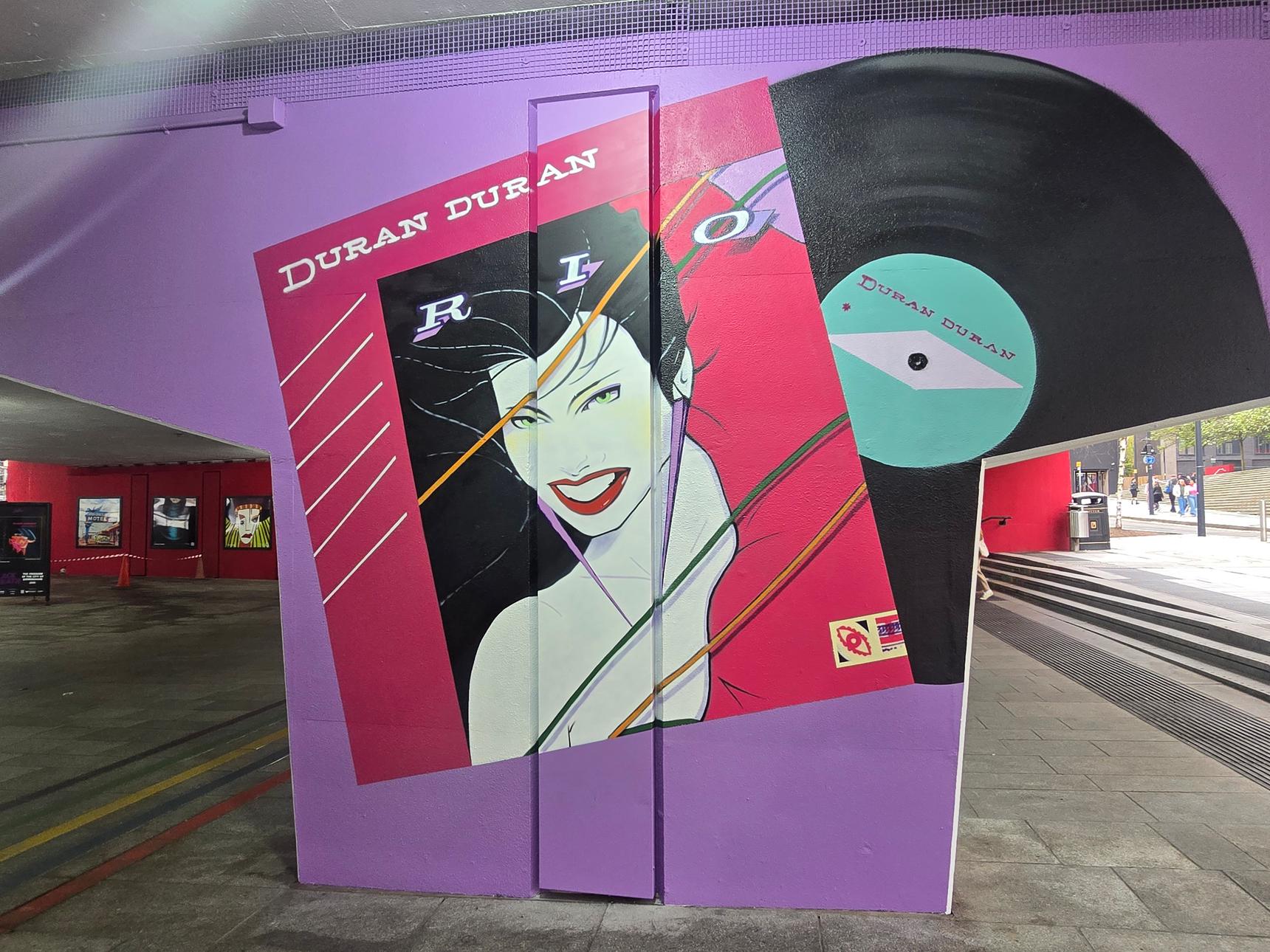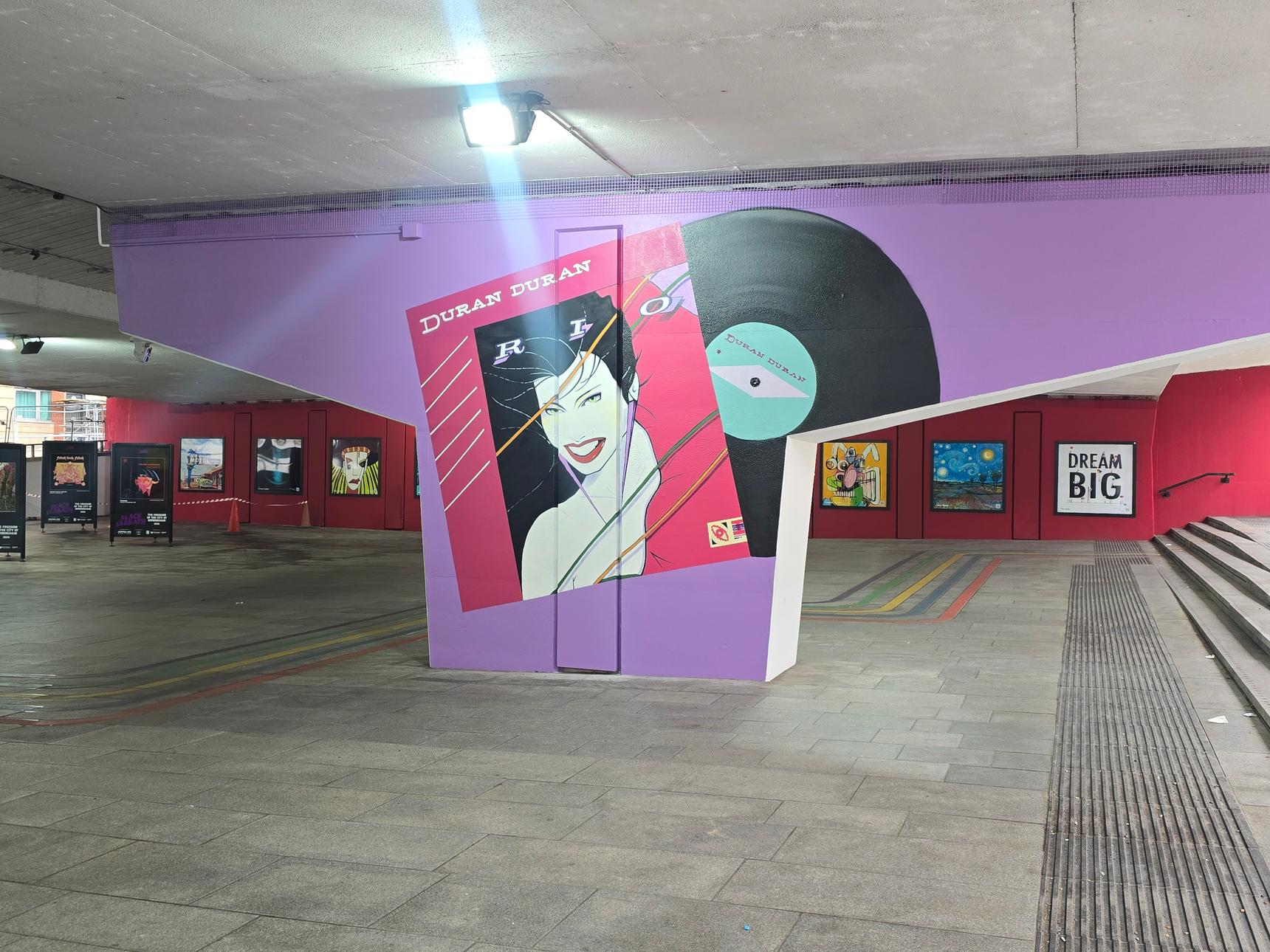 One of a series of murals depicting album covers from famous Birmingham music groups. These are all in the underpass under Suffolk Street Queensway.