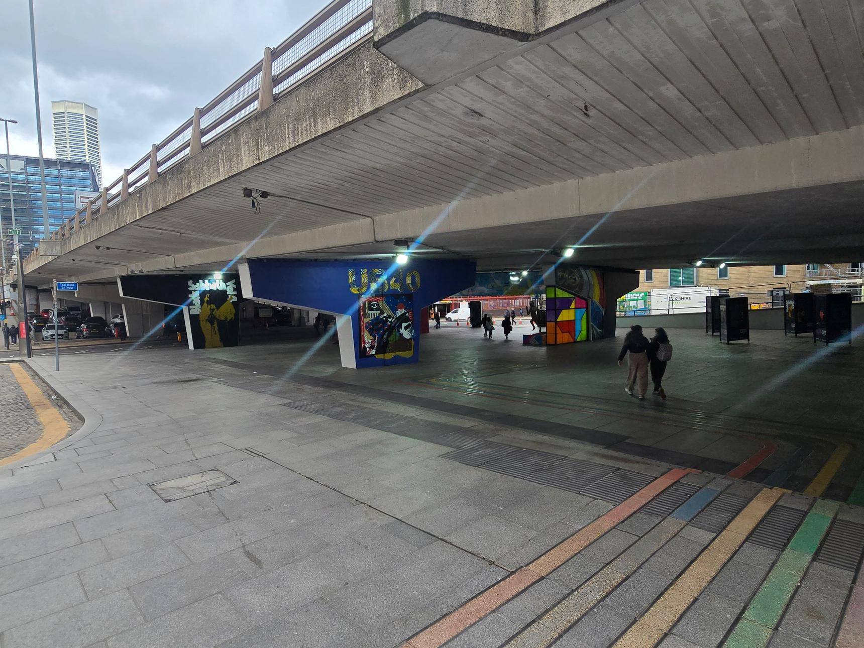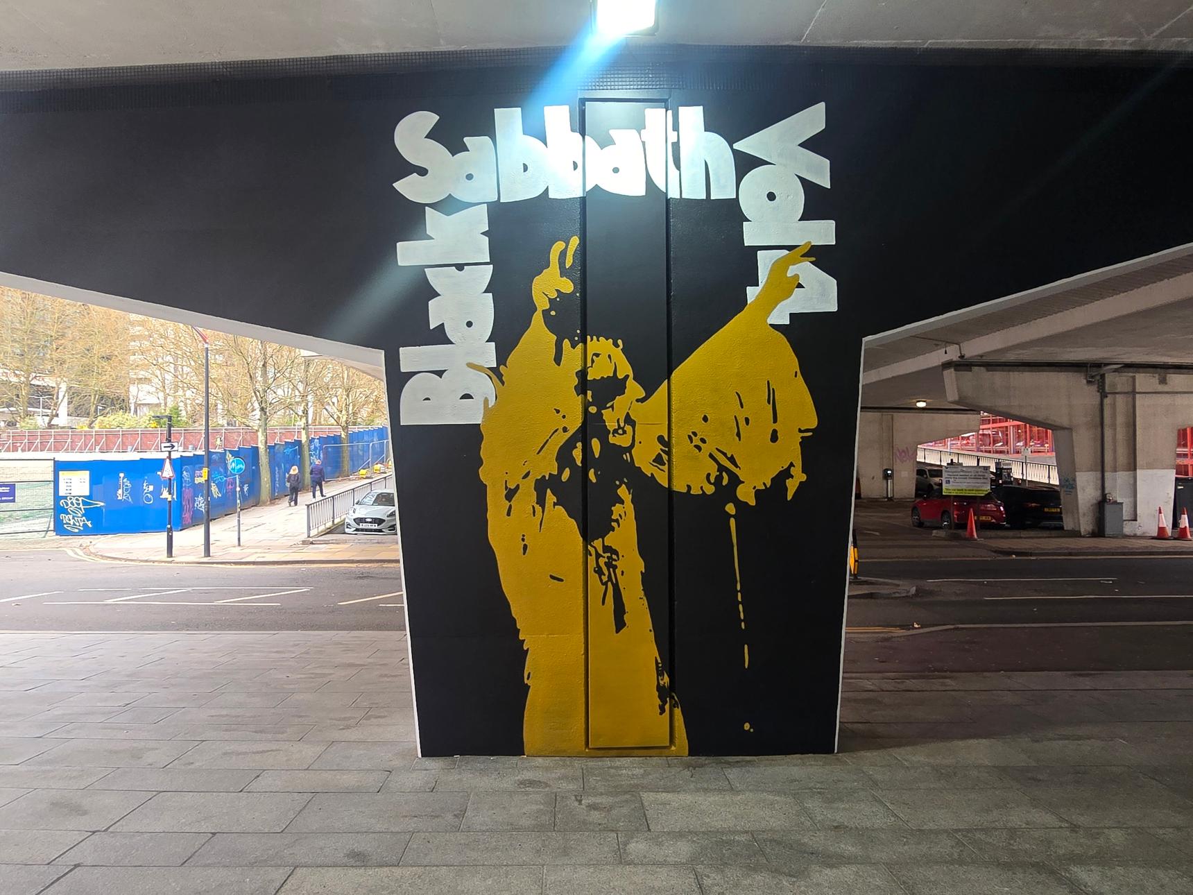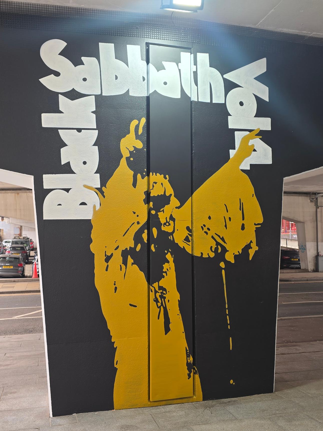 One of a series of murals depicting album covers from famous Birmingham music groups. These are all in the underpass under Suffolk Street Queensway.