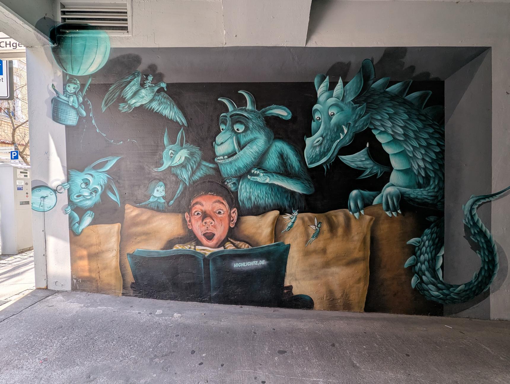 Outside of a nice local bookstore you find an artsy best-of friendly monsters known from books.