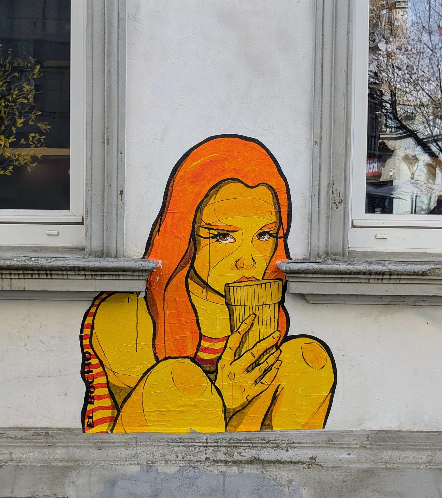 Berlin based artist ELBOCHO made a trip to the former German capital of Bonn, and he didn't come empty handed. Several beautiful paste ups of his iconic "girls" can be found all over the old town. This one is outside of a nice coffee shop (a German coffee shop, meaning, they sell coffee, but really good coffee ;).