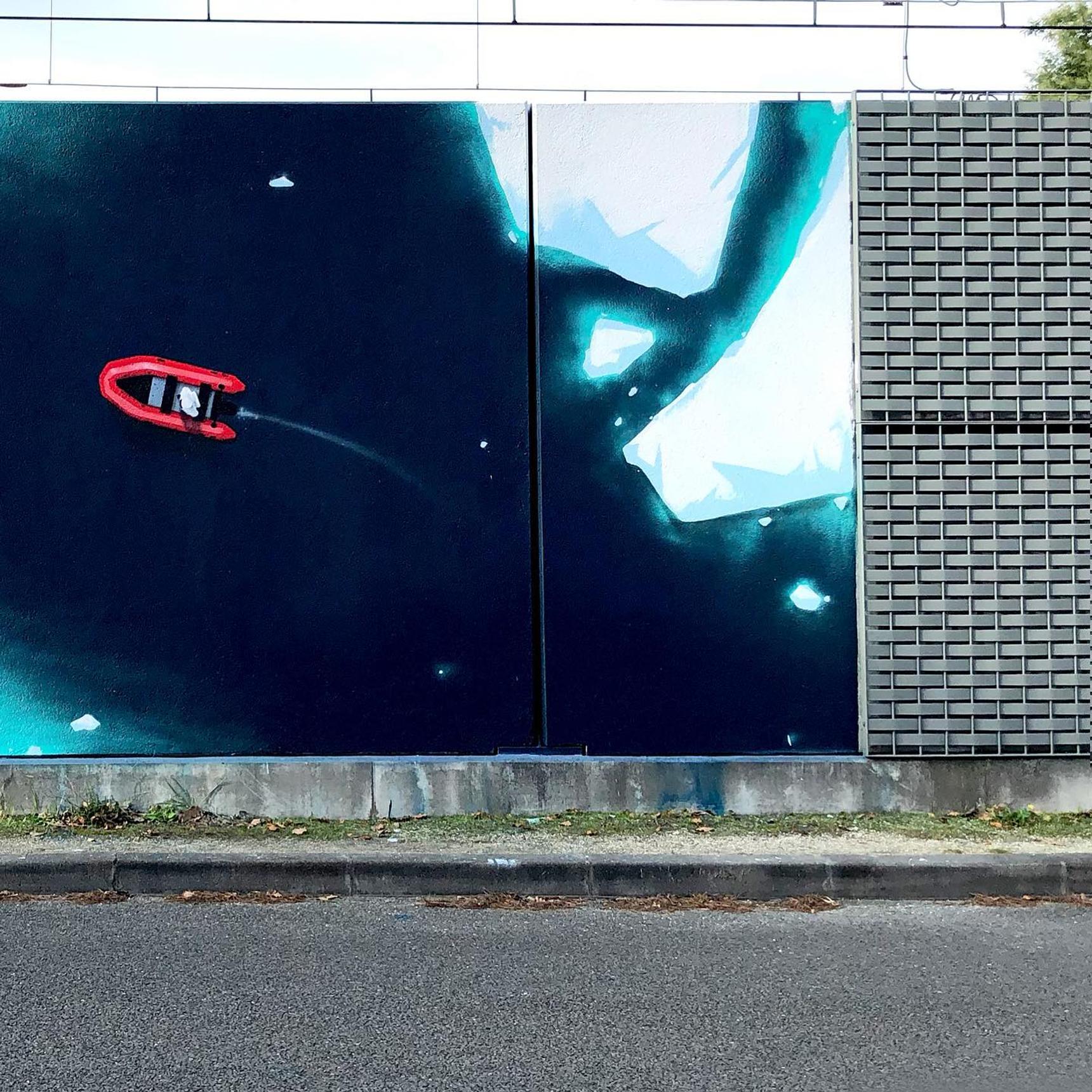 Située face à l’entrée de la médiathèque Jacques Ellul, cette œuvre parle d’elle-même et nous confronte au sujet du dérèglement climatique à travers une représentation de la fonte de la banquise dans ce qu’il y a de plus minimaliste et graphique.