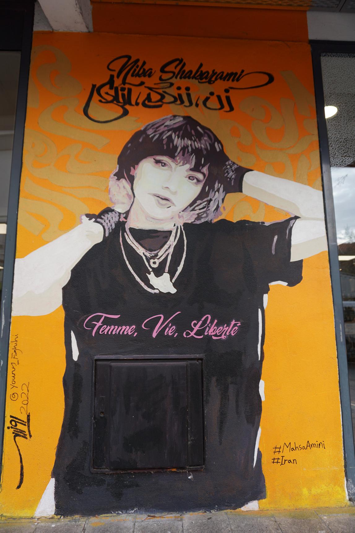 Cette fresque a été réalisée en soutien aux femmes qui subissent l’oppression du régime iranien et plus particulièrement en hommage à Nika Shakarami, une jeune Iranienne de 16 ans. Symbole du mouvement « Femme, Vie et Liberté », elle a été tuée après son arrestation alors qu’elle manifestait à la suite de la mort d’une autre femme iranienne, Masha Amini.