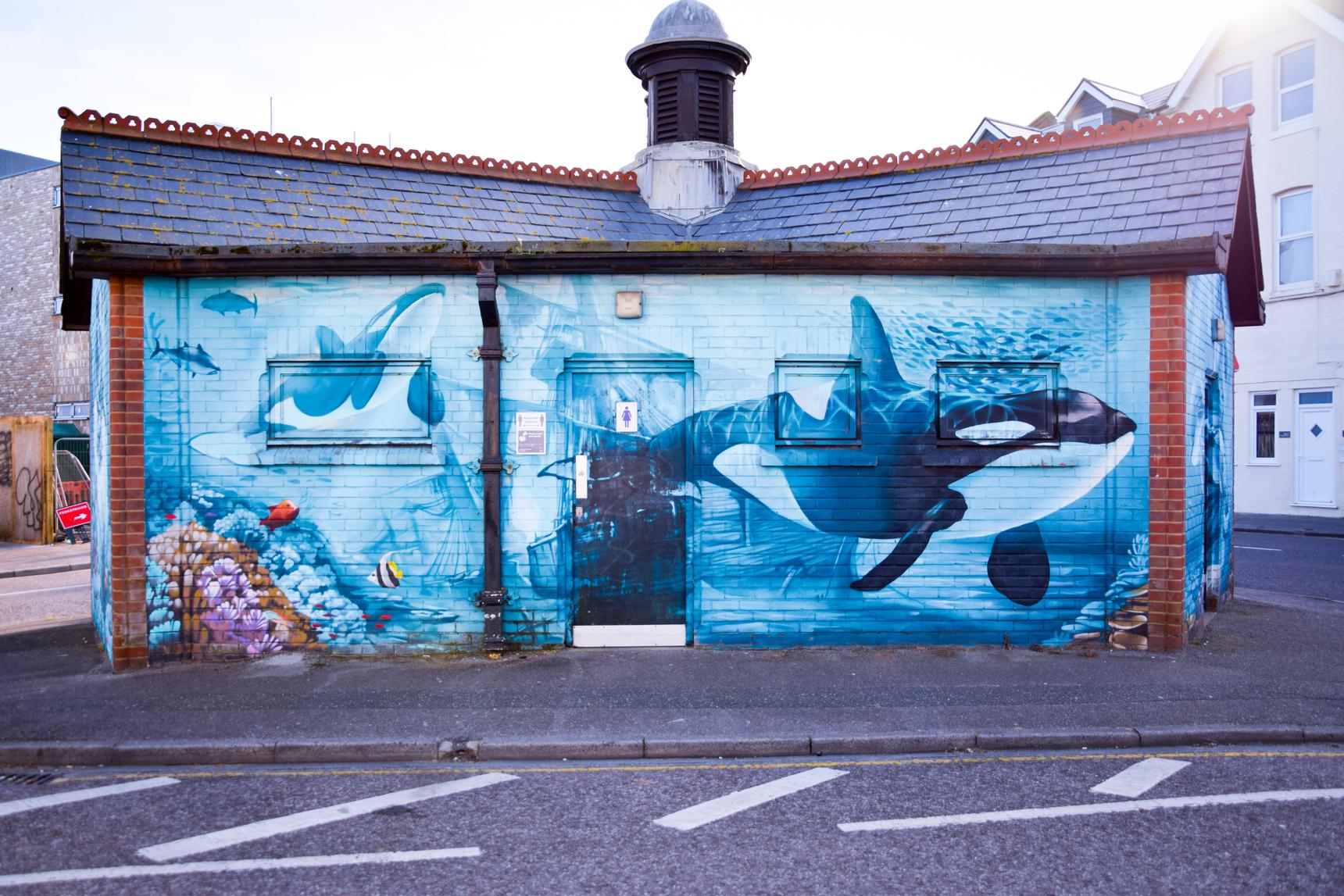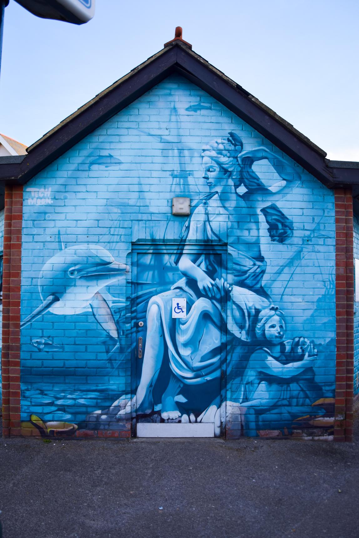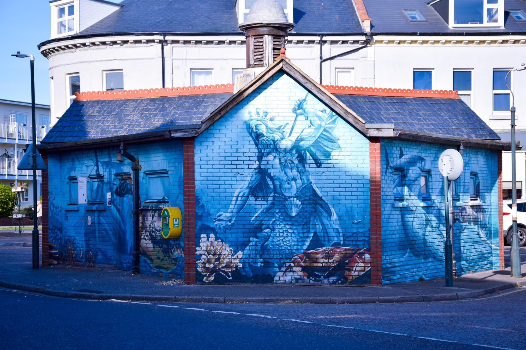 Decorated public toilet building depicting maritime gods.