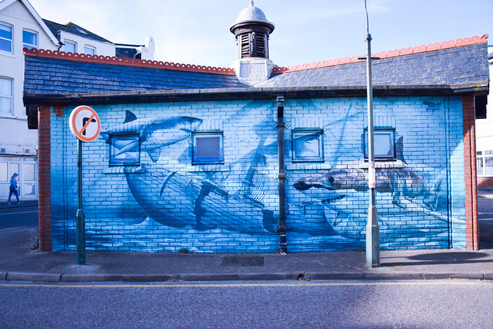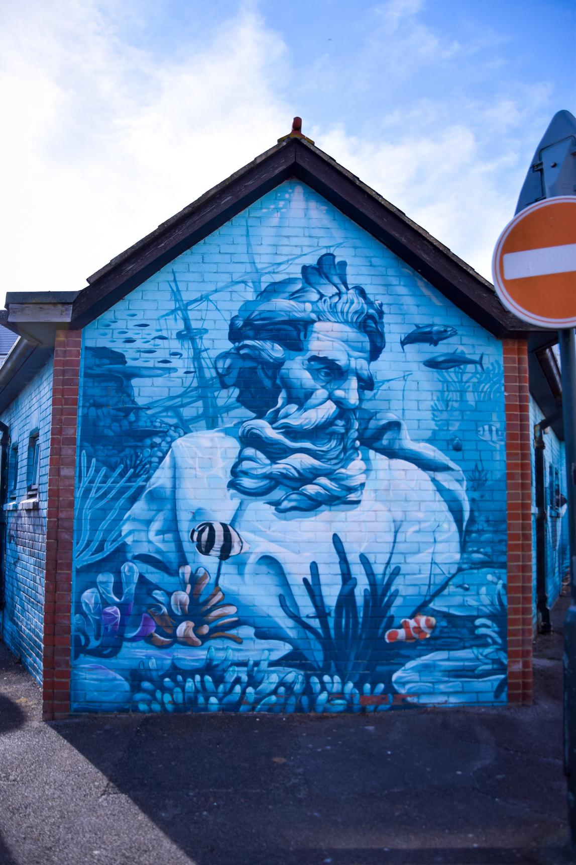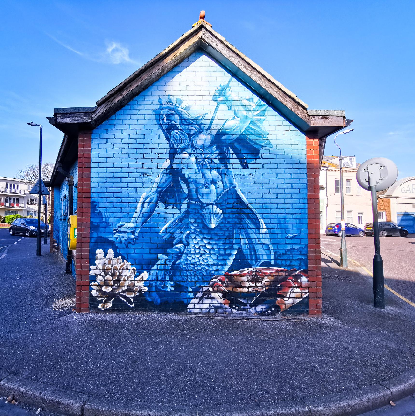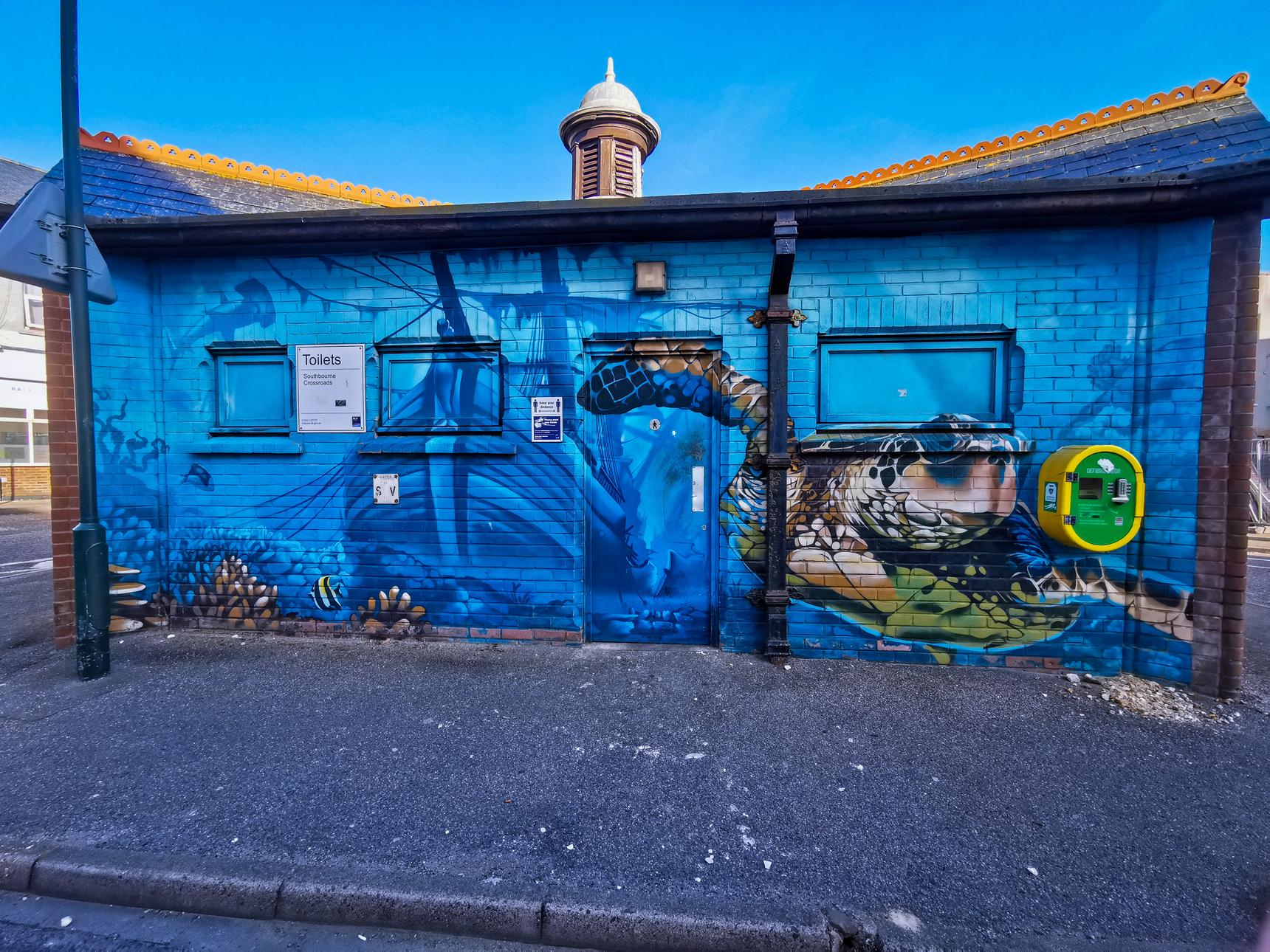 Decorated public toilet building depicting maritime gods.