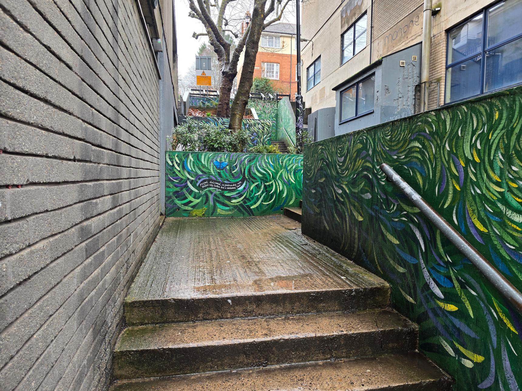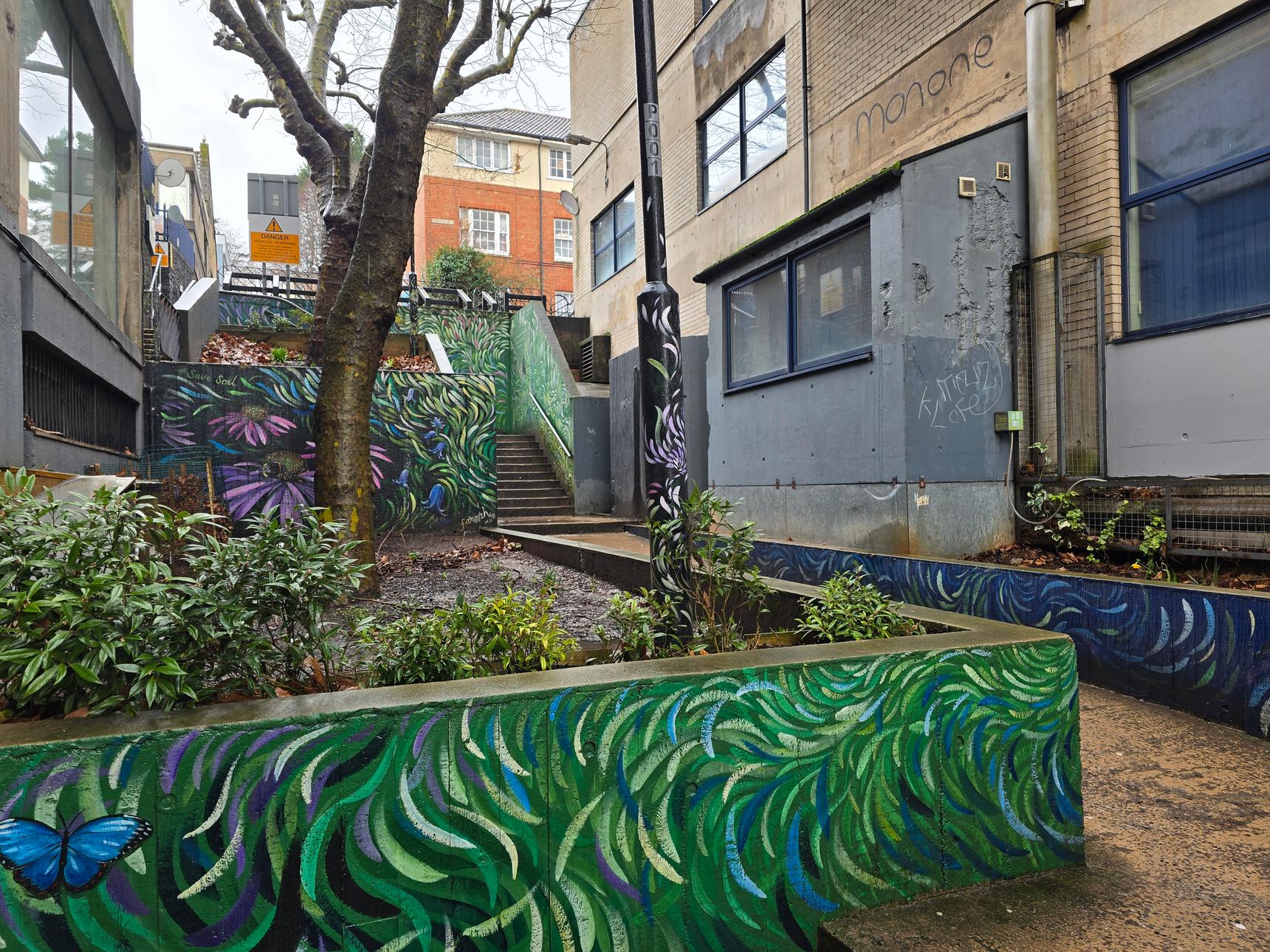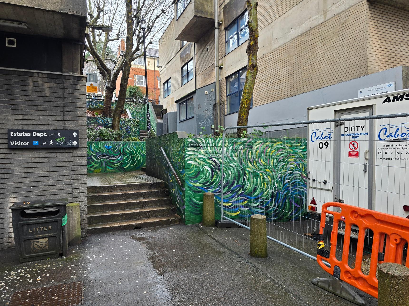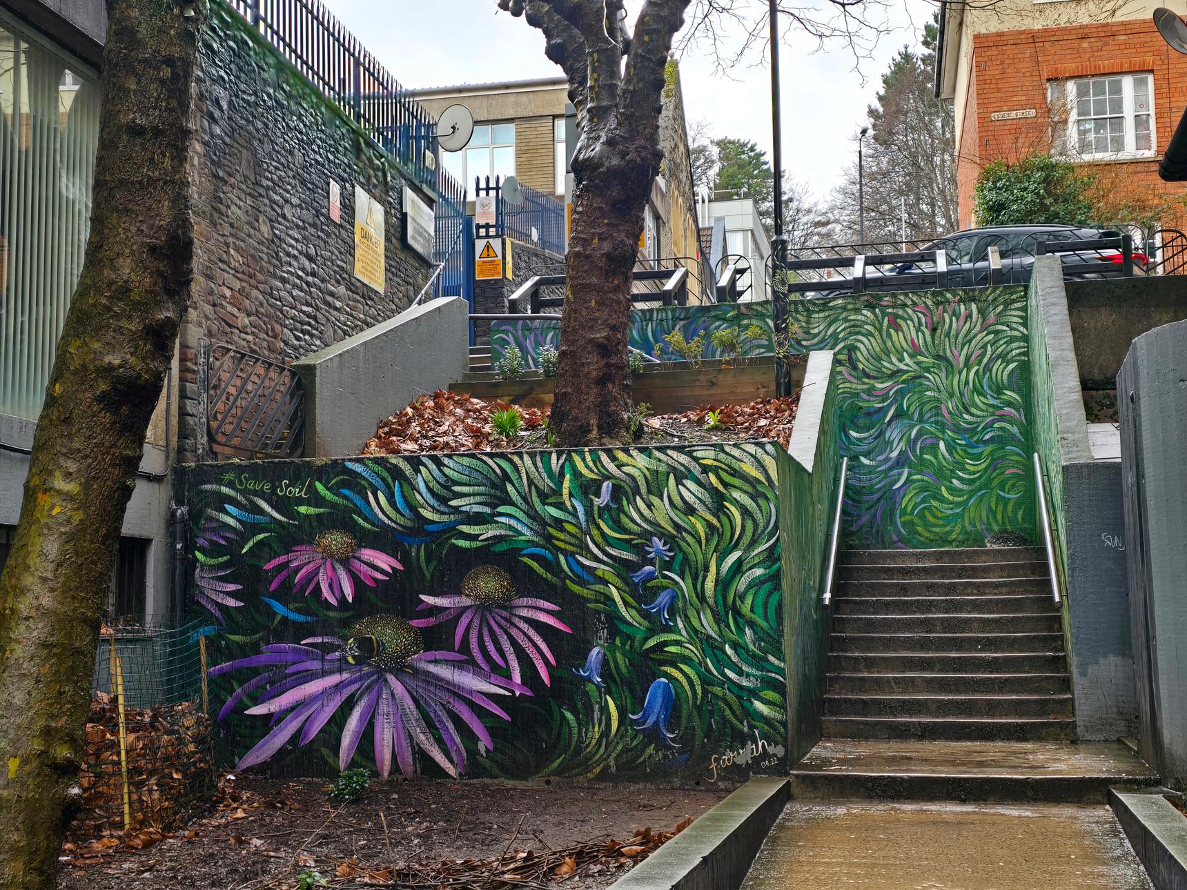 This mural was co-ordinated and funded by Bristol City Centre BID and University Hospitals Bristol and Weston NHS Foundation Trust (UHBW), and painted by Farrah Fortnam.