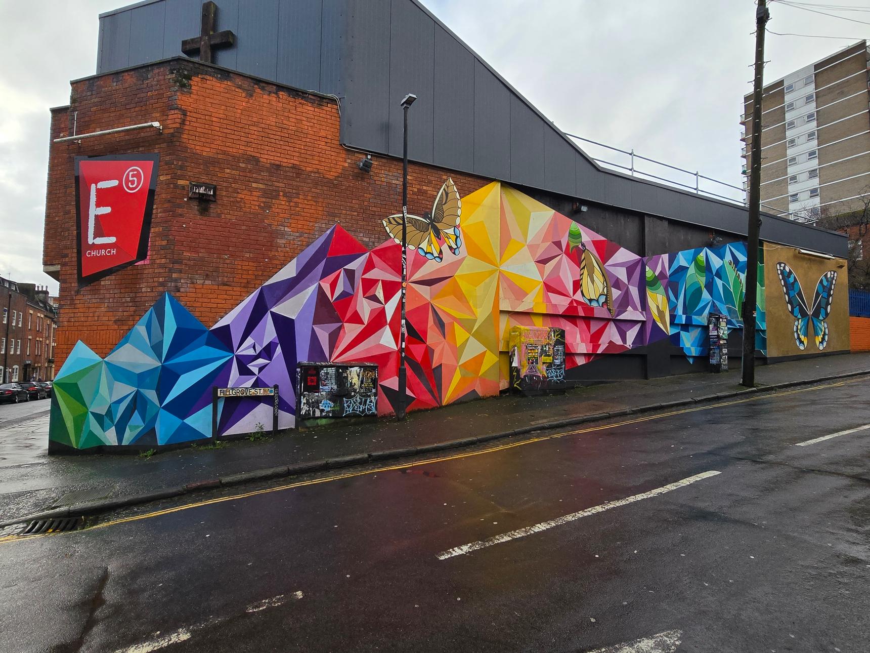 Both the colourful triangles and the butterflies (including the one to the right of it that's perfect for posing in front of) are the work of Urban Butterfly.