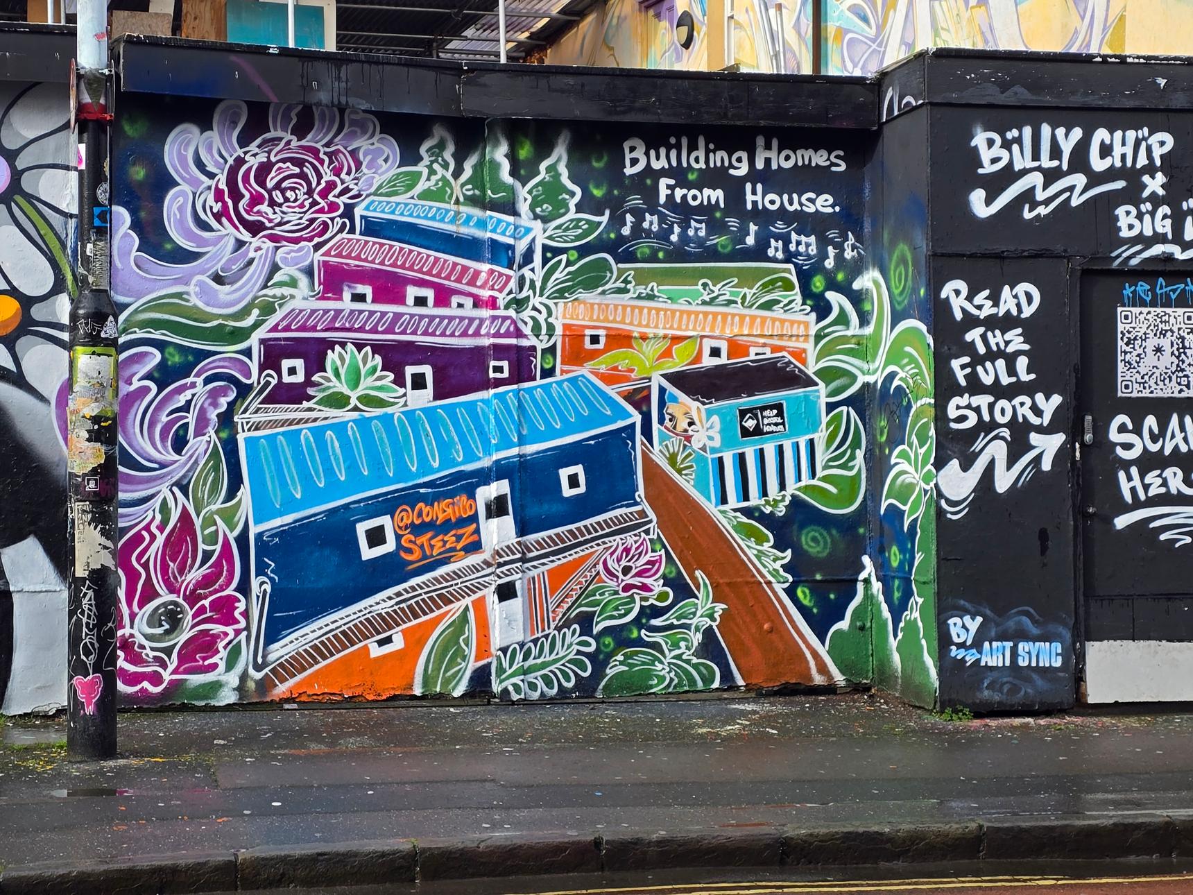 This collaborative work was created to promote Billy Chip, an initiative by The Big Issue, to further help the homeless. The mural was assisted by Art Sync.