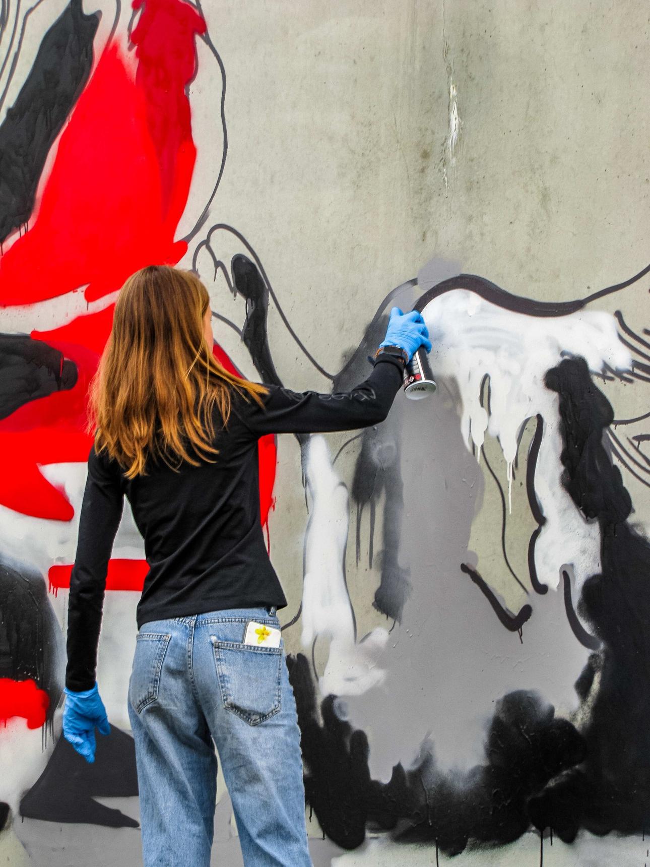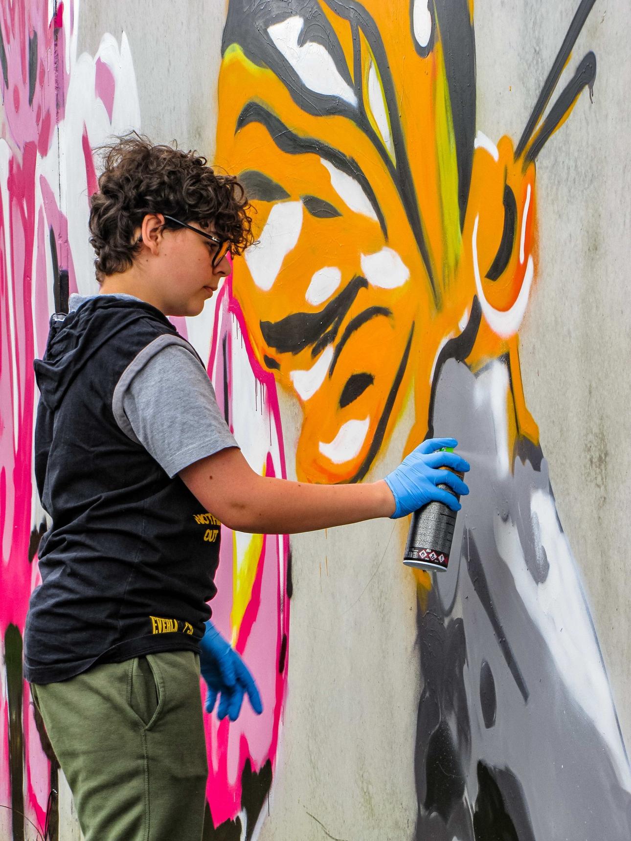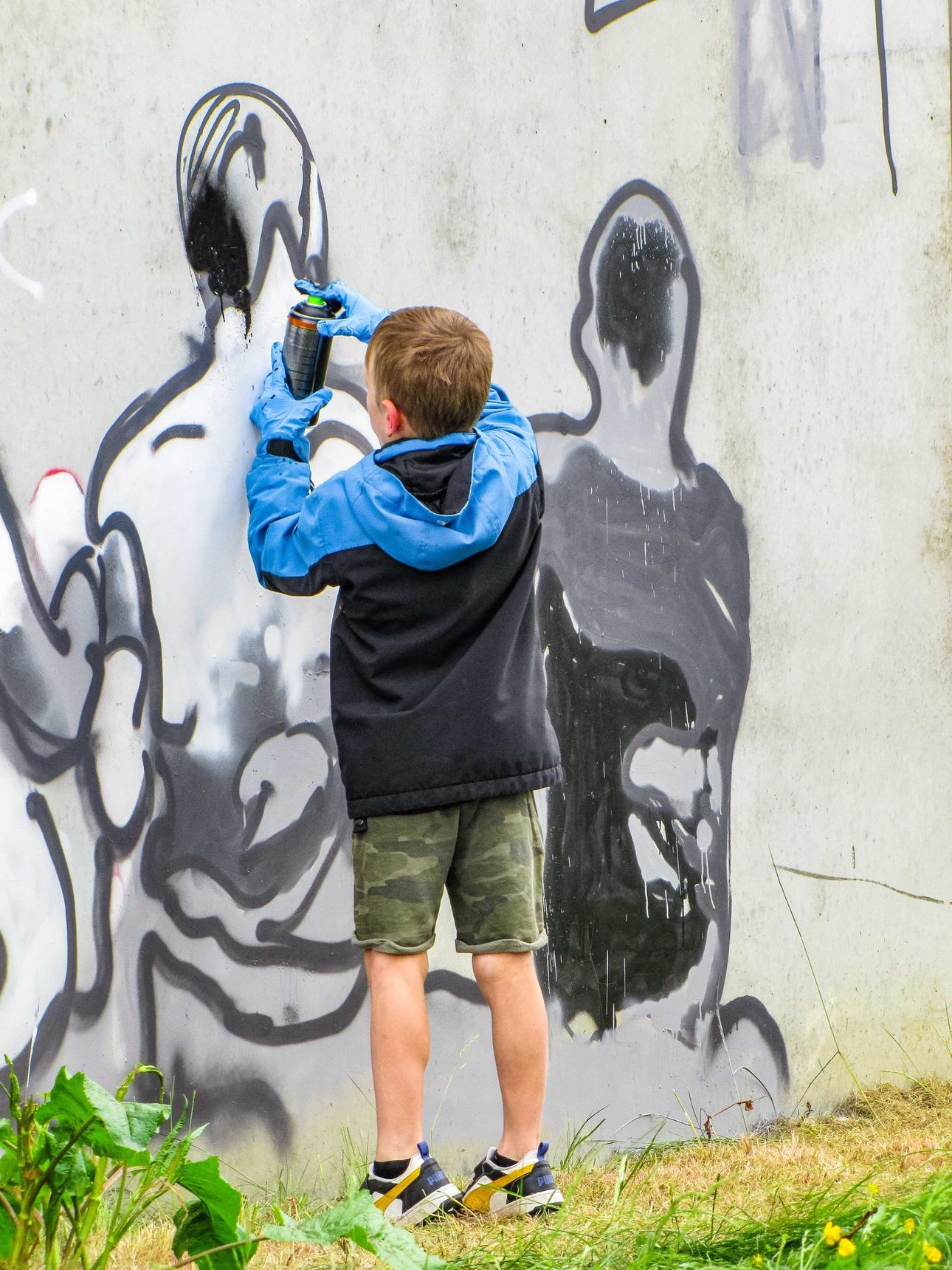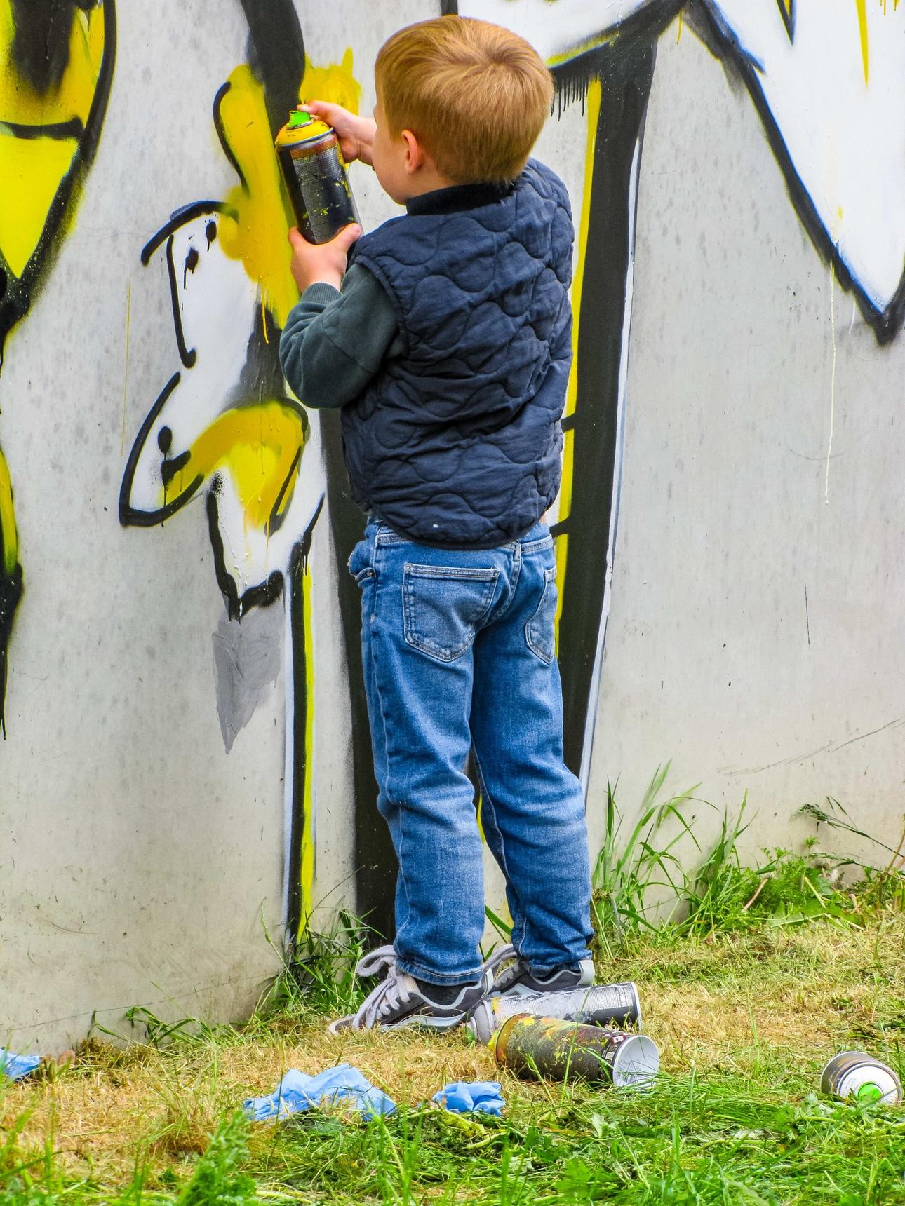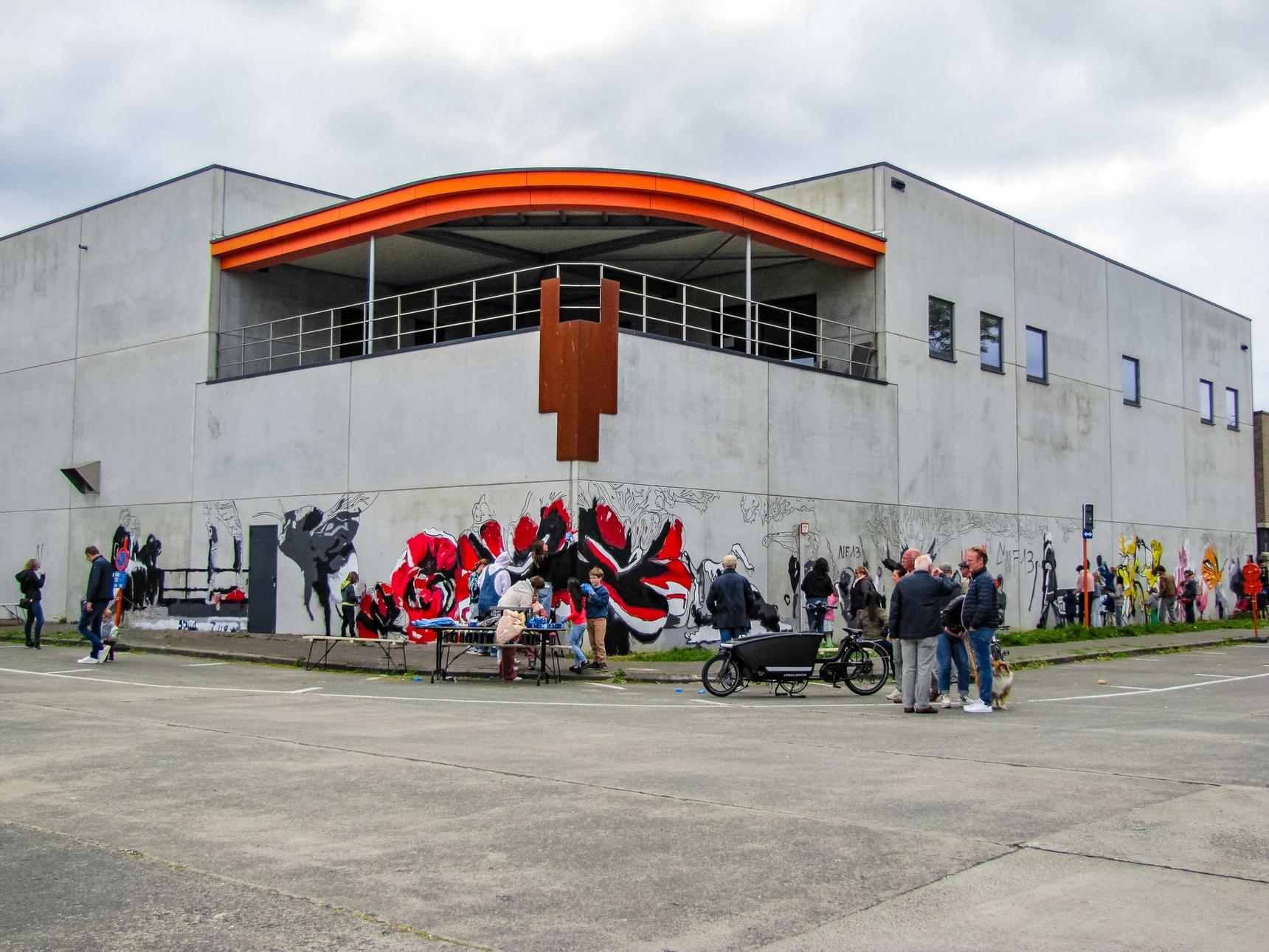 The ideas for this jam were provided by the neighborhood, after which they were further developed by PinkMan_Stuff. Following the Kaaifeest, with considerable assistance from local youth, the wall was completely finished by PinkMan_Stuff. The photos show a mix of the finished wall and the ‘making of’.