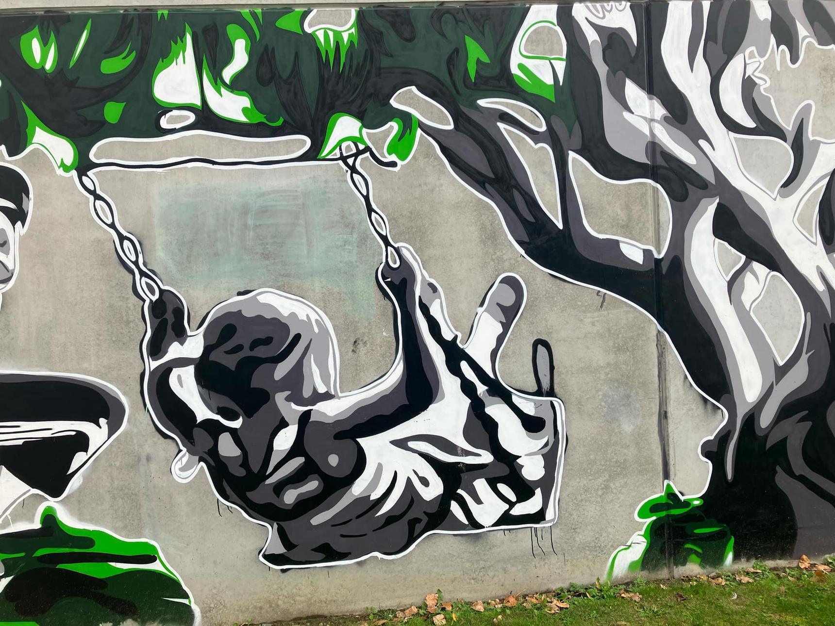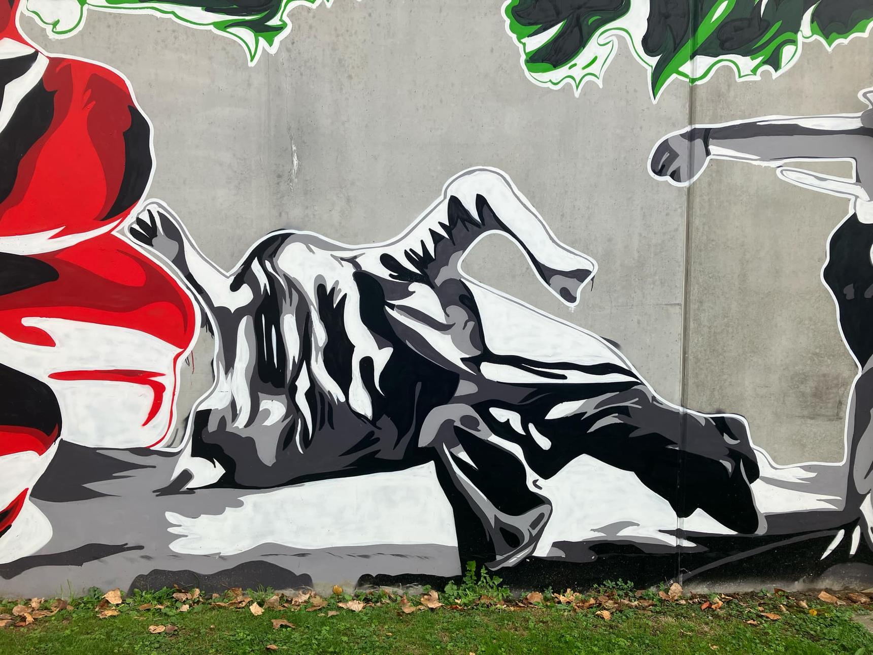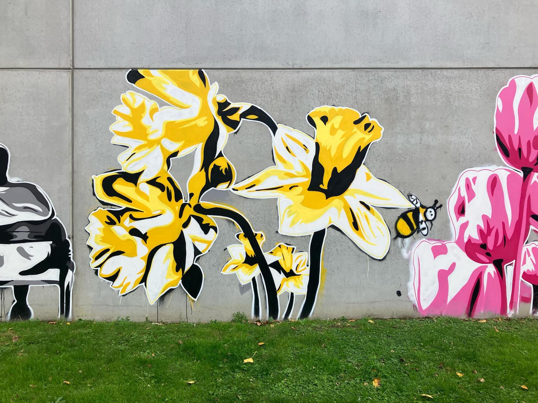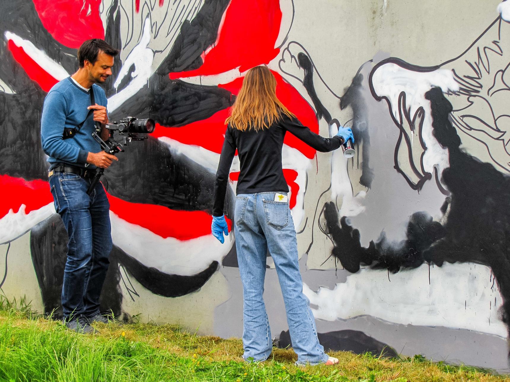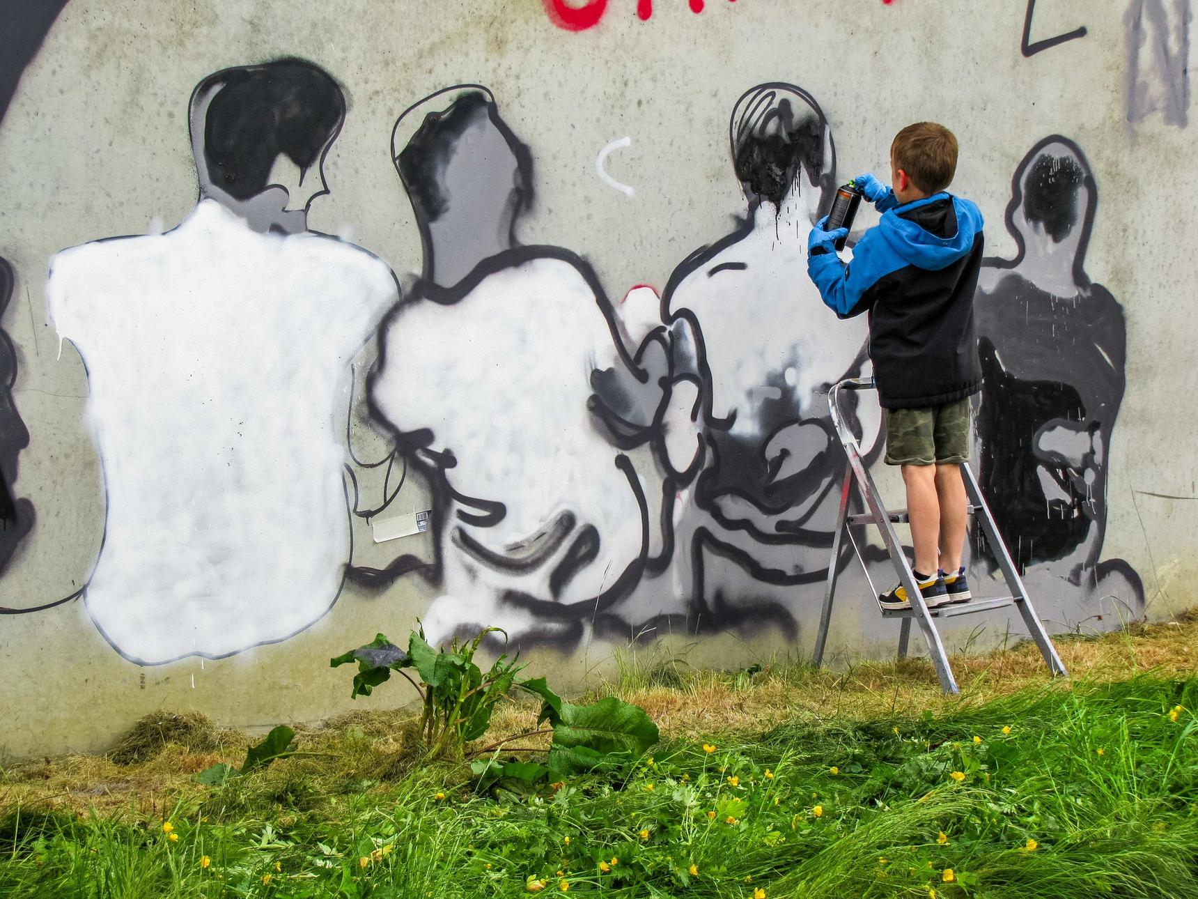 The ideas for this jam were provided by the neighborhood, after which they were further developed by PinkMan_Stuff. Following the Kaaifeest, with considerable assistance from local youth, the wall was completely finished by PinkMan_Stuff. The photos show a mix of the finished wall and the ‘making of’.