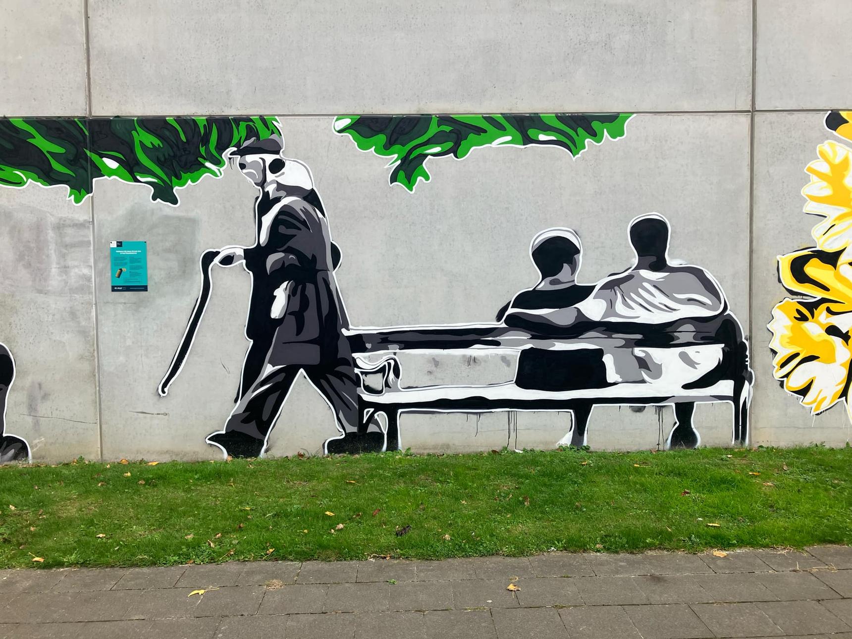 De ideeën voor deze jam werden aangereikt door de buurt, waarna deze verder uitgewerkt werden door PinkMan_Stuff na het Kaaifeest met veel hulp van de lokale jeugd werd de muur volledig afgewerkt door bovengetekende. Op de foto's zie je een mix van de afgewerkte muur en de 'making of'.