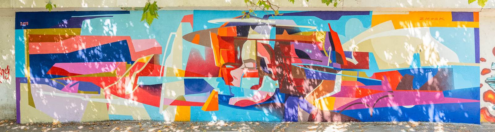 This semi-abstract sketch explores the connection between the inner human state, the surrounding space, and the soundscape of contemporary life. At its center is a meditative face, dissolving into a stream of light, color, and rhythmic visual noise. The composition resembles a musical track — layers of color and form echo like synthesized sounds, creating an atmosphere of contemplative detachment. The vivid warm and cool tones strike a balance between reason and emotion, much like harmony between rhythm and melody. The image can be seen as a symbol of inner resonance, self-reflection, and connection to the city’s cultural pulse. Such a mural could enrich urban space by offering a visual counterpart to musical experience.