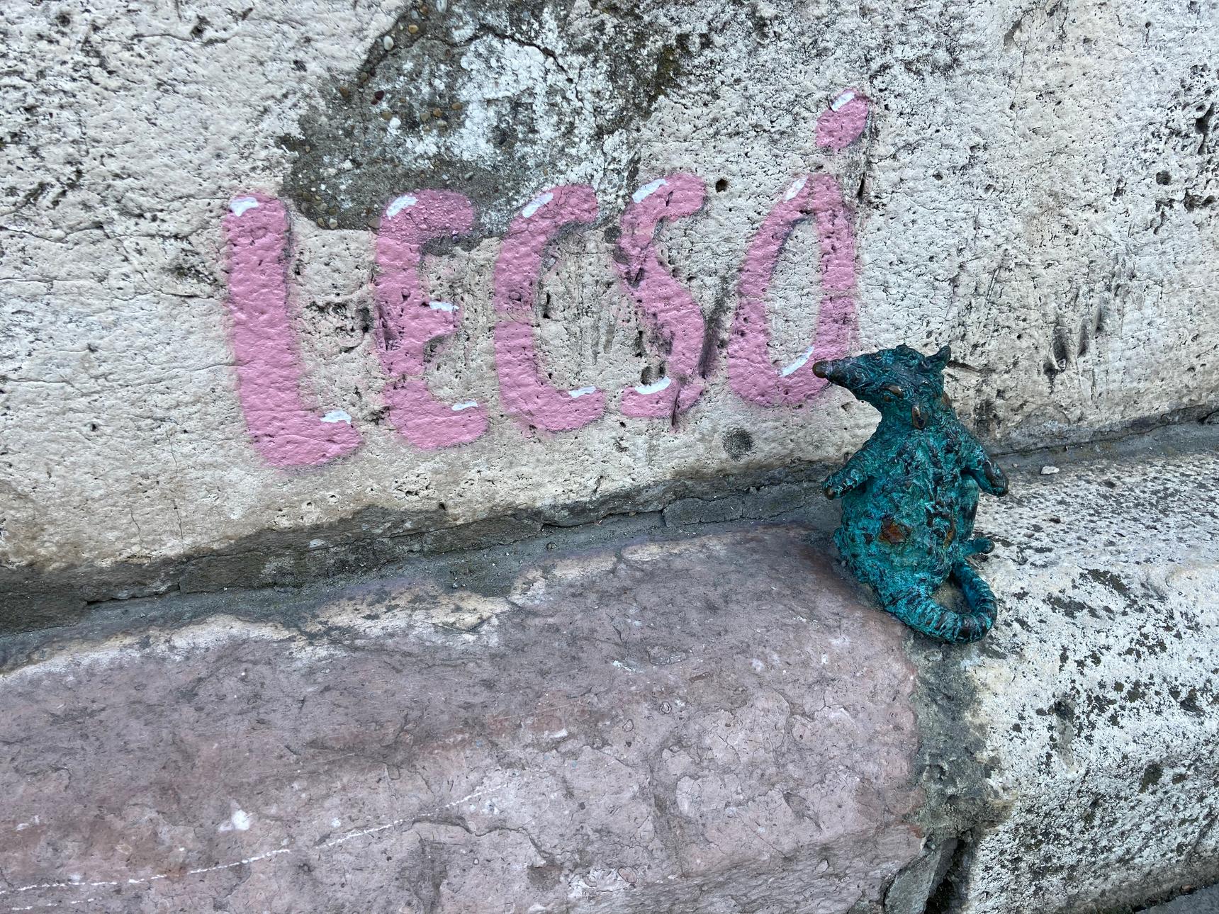 Located on the Buda end of Elisabeth Bridge, the cartooned rat is spraying the word ‘lecsó’, which is the name of an iconic Hungarian dish, vaguely similar to ratatouille, a stew of peppers best enjoyed from late August, and at the beginning of autumn.