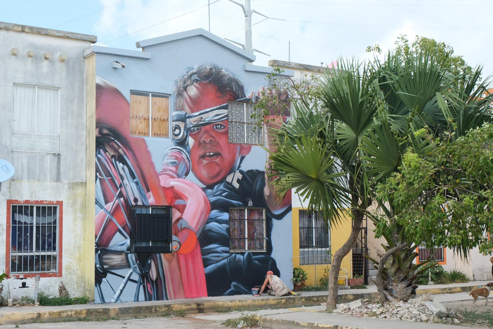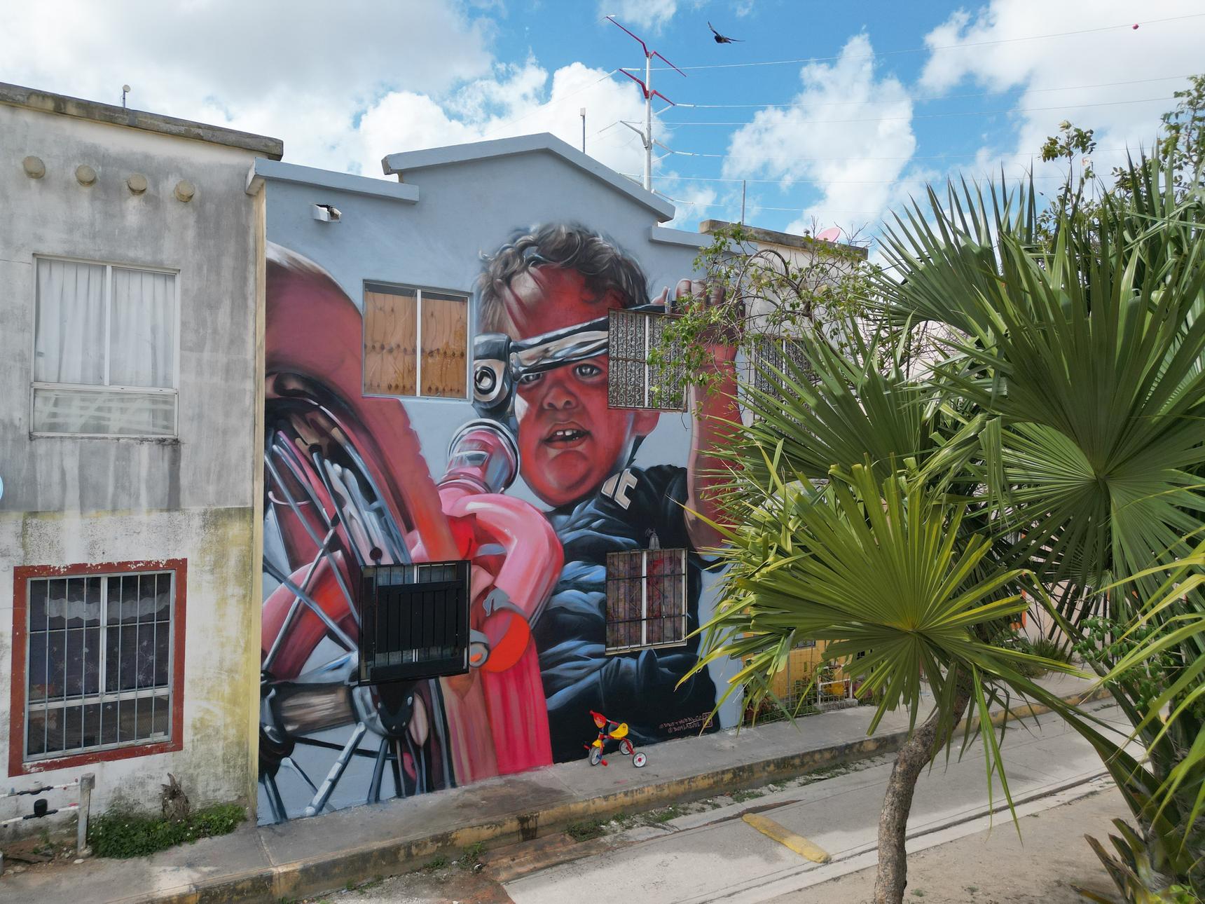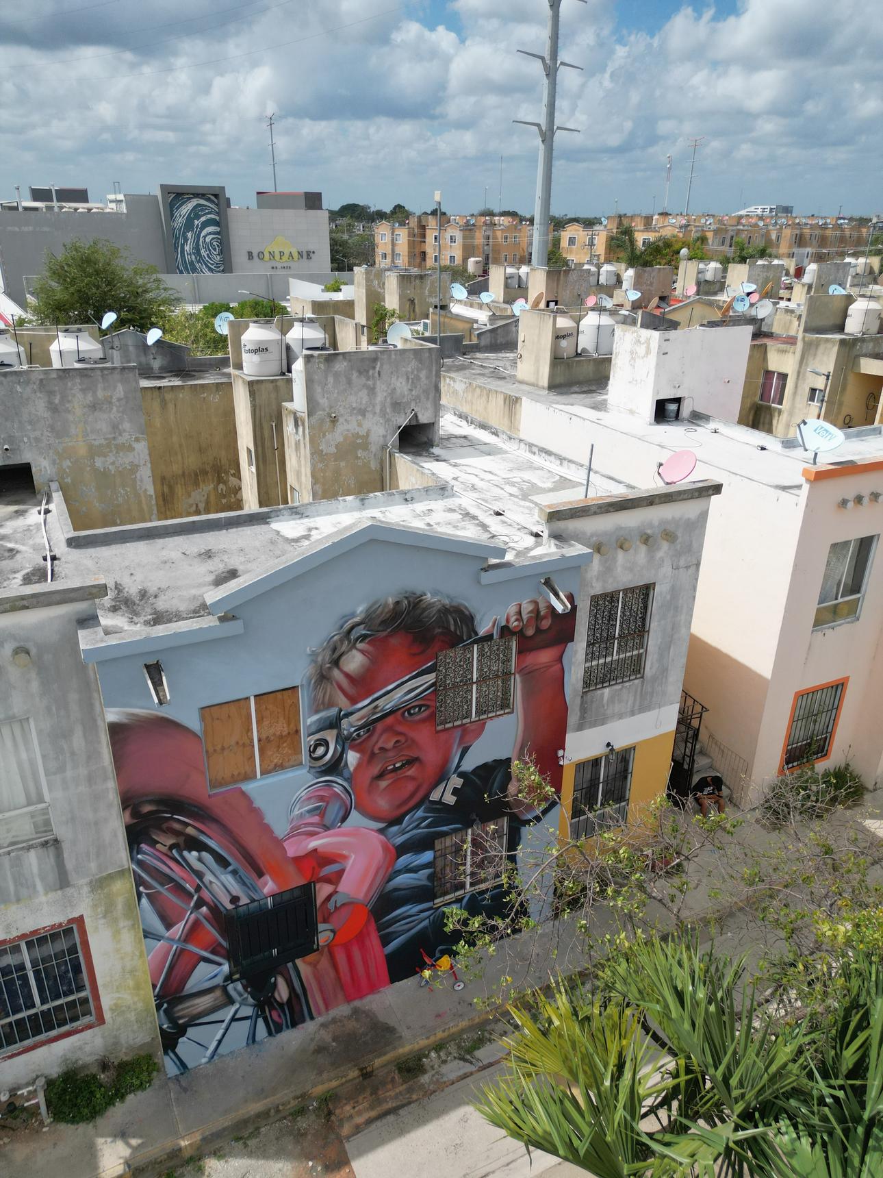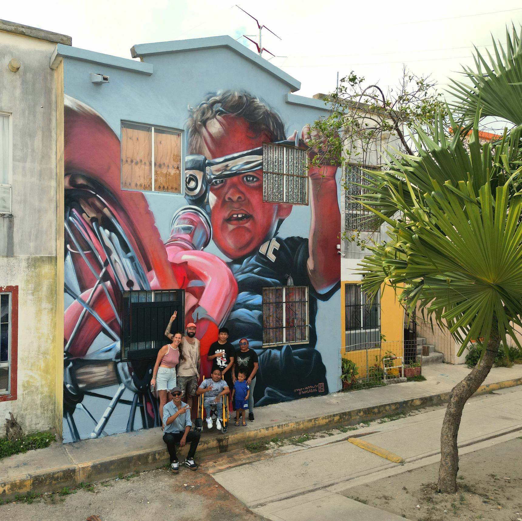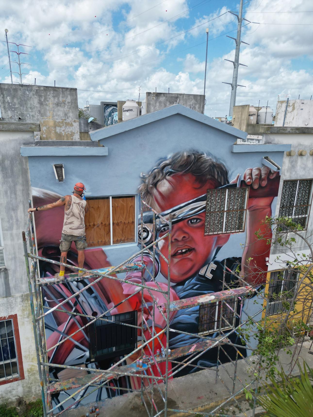 It was an incredible experience painting in Villas Otoch and adding more colour to the neighborhood under the guidance of @tona.moreno . Thank you @streetartcancun for the opportunity. This piece is dedicated to little Marcos and Loga, who saw themselves in the mural, and the families who live in the building where it now stands. Gracias por la hospitalidad, hasta luego!