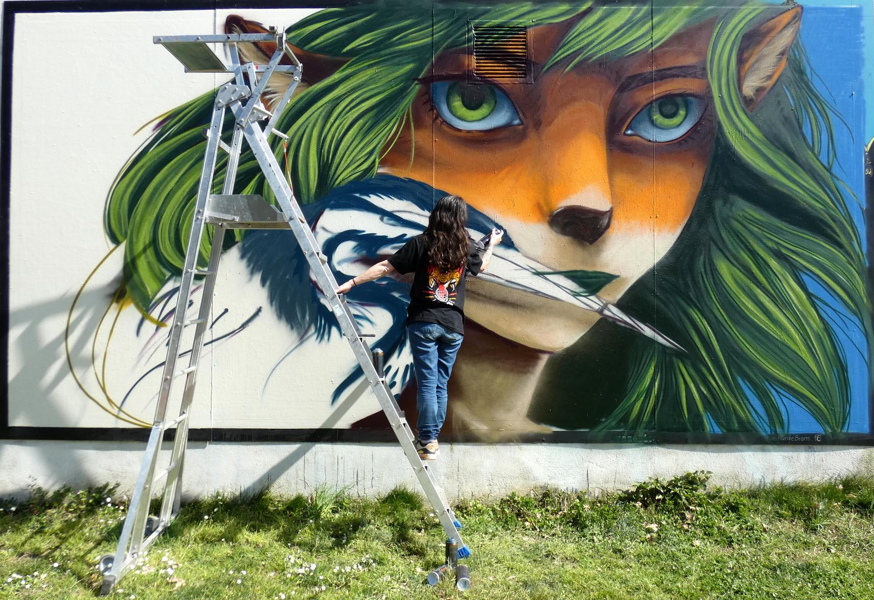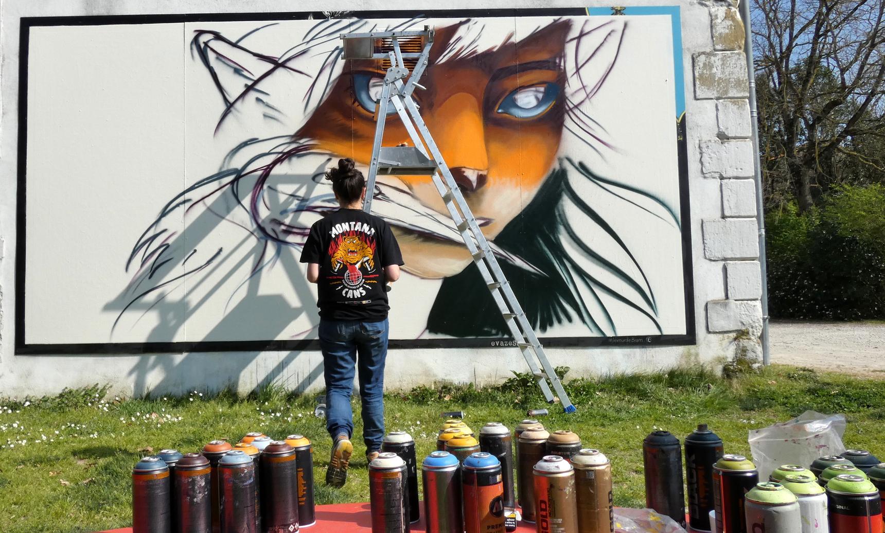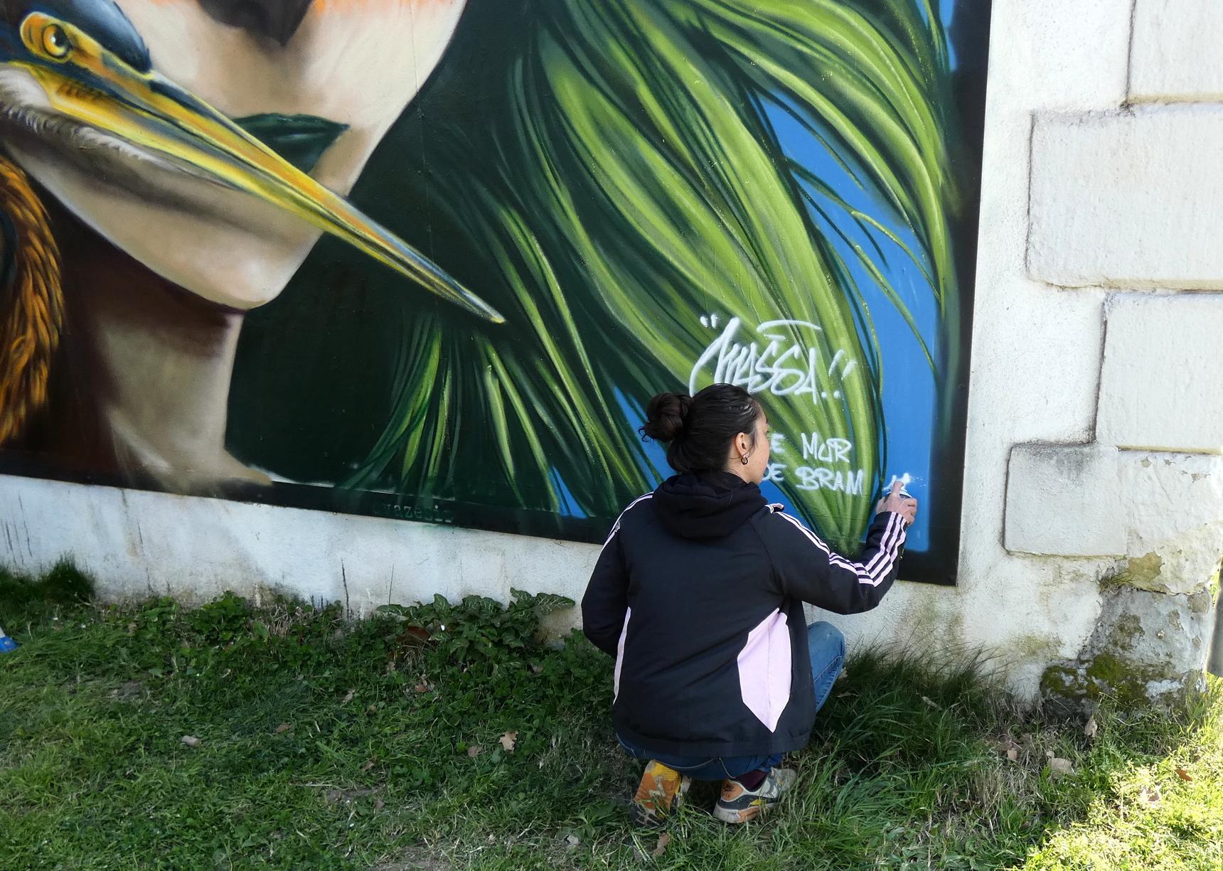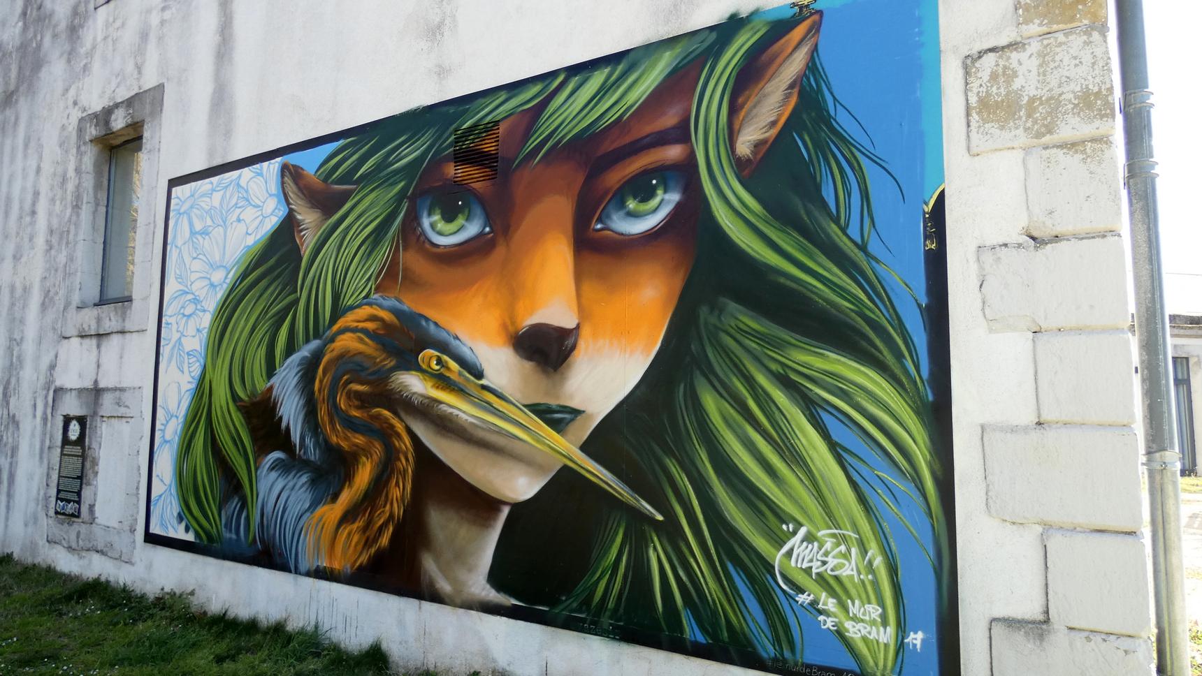 "Ainsi, se termine l'hiver. Aude à la faune locale. Quand Dame Renardinette croise Sieur Poupré d'Héron" 17 WALL of Bram (Aude) was painted by MASSA in march 2026. She is from Toulouse. It will be visible till june 2026...