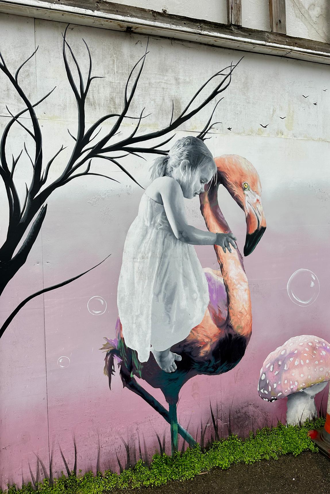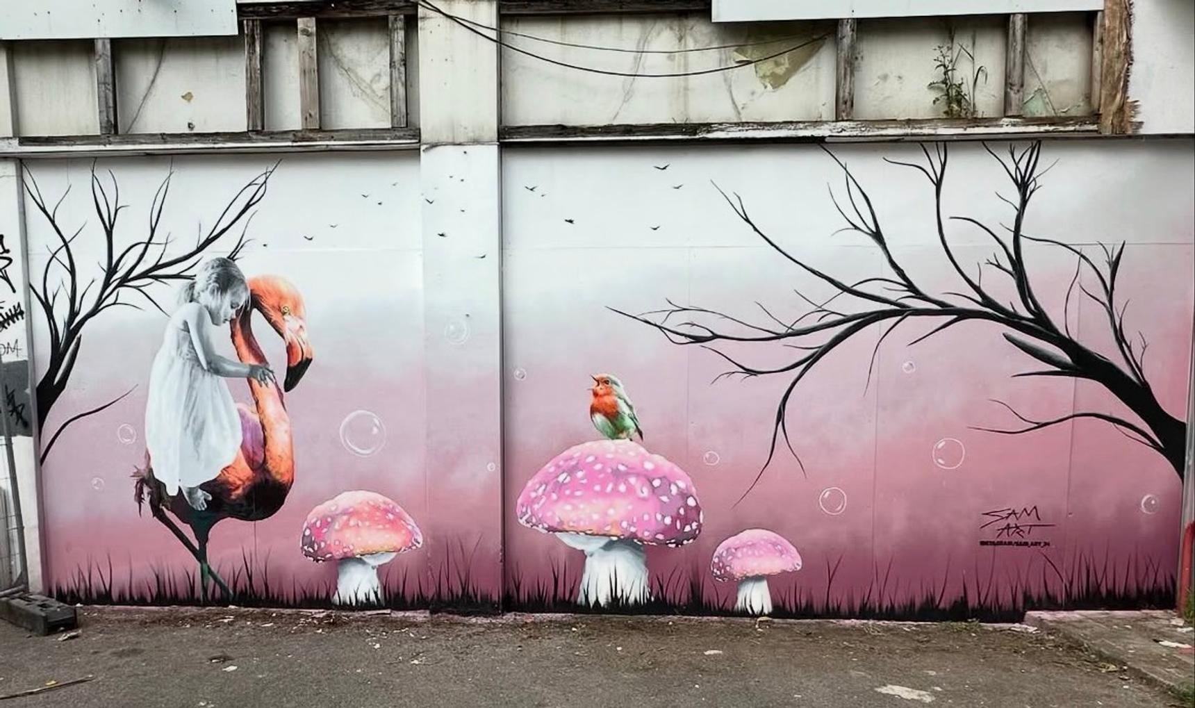 Mural by Sam Collins for The Gillingham Street Angels Clothes Emporium, located in what used to be Grays Car show room along the intra high street between Chatham and Rochester high streets.