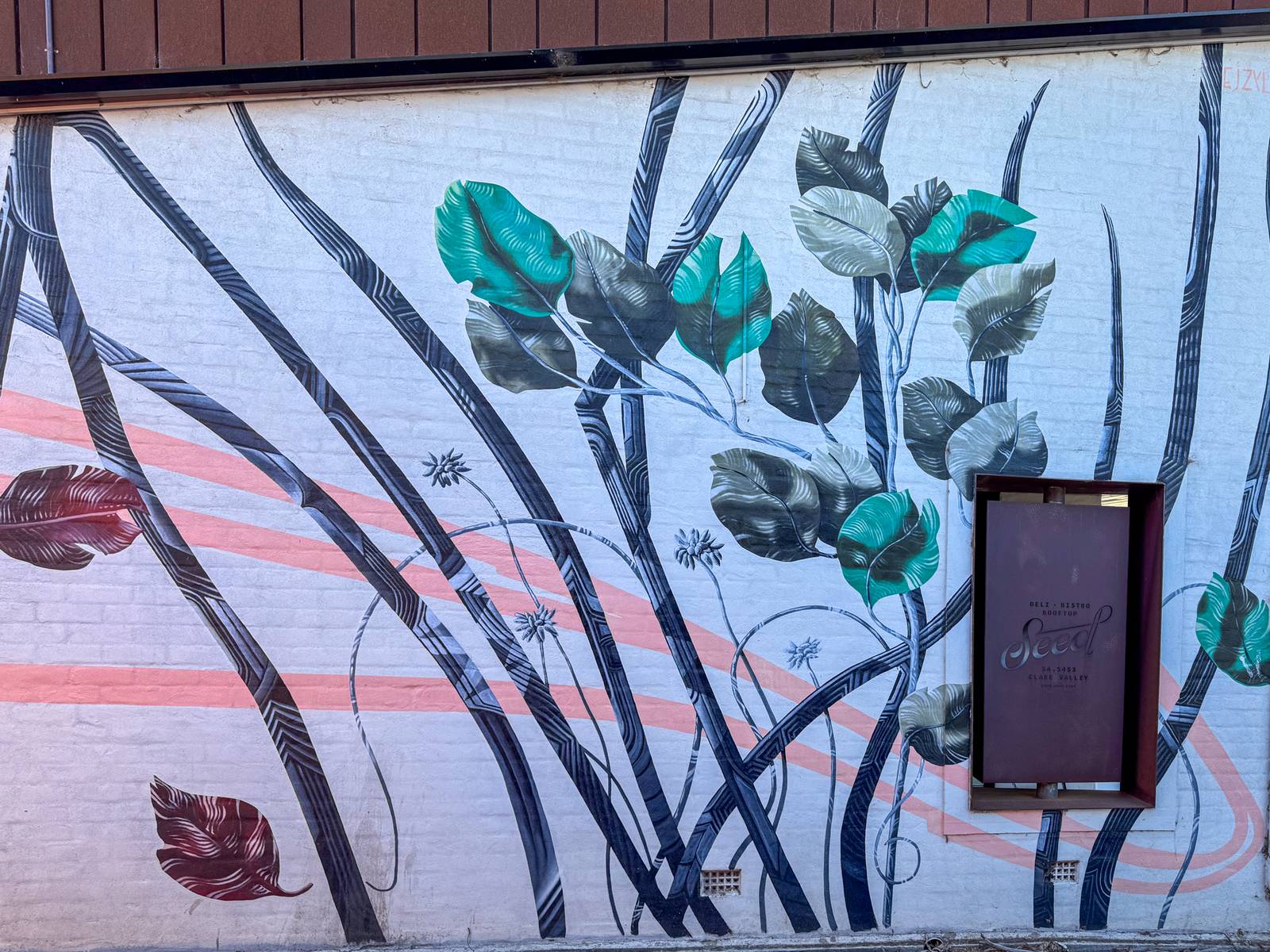 A delicate mural on the walls of Seed Clare Valley Restaurant