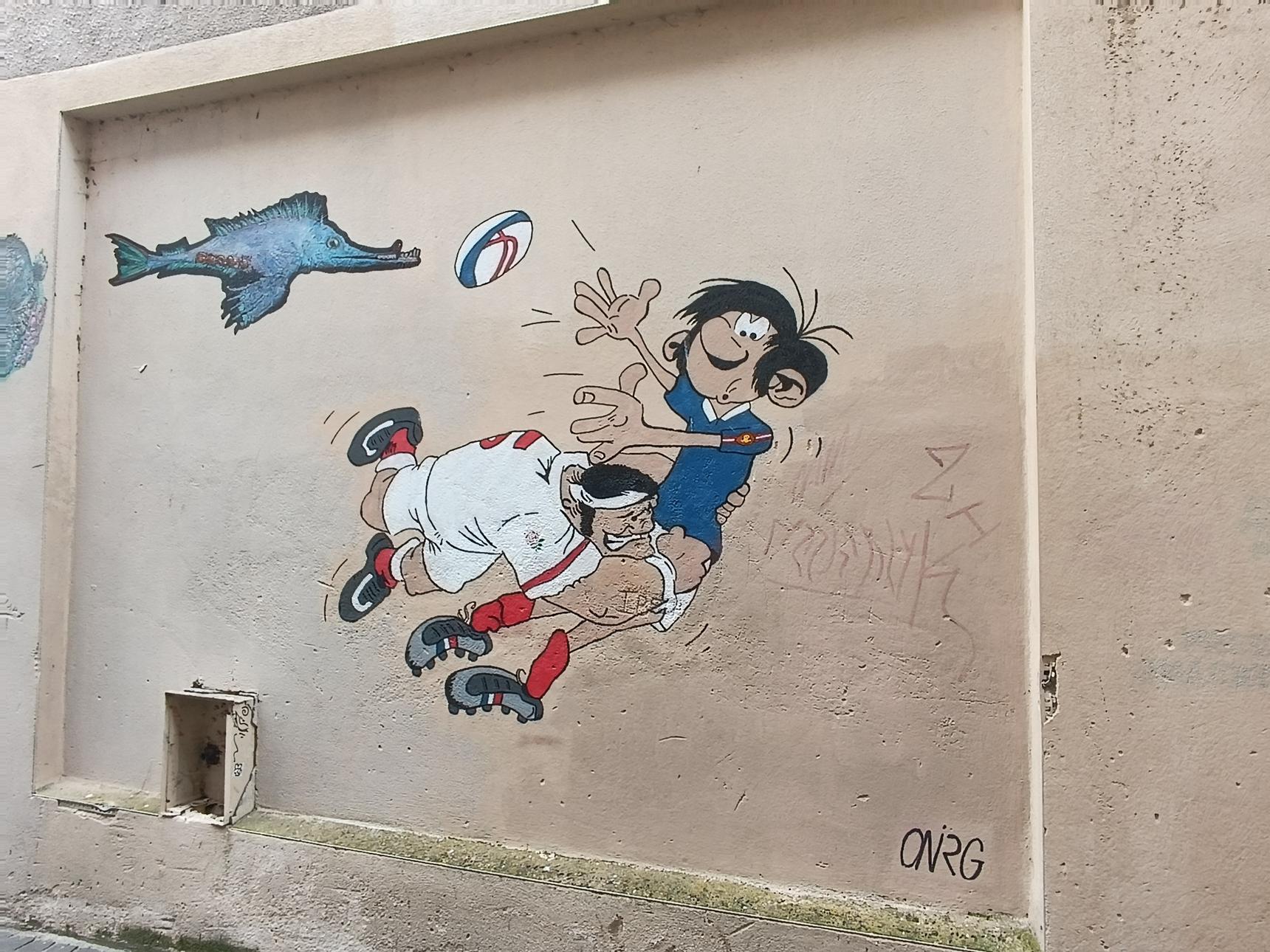 ONiRG is a French street artist known for playful collage and stencil works inspired by classic 80s comics and childhood cartoons. Since 2022, he has brought iconic characters like the Daltons, the Smurfs, and Gaston Lagaffe into urban spaces with humor and bold visual storytelling.