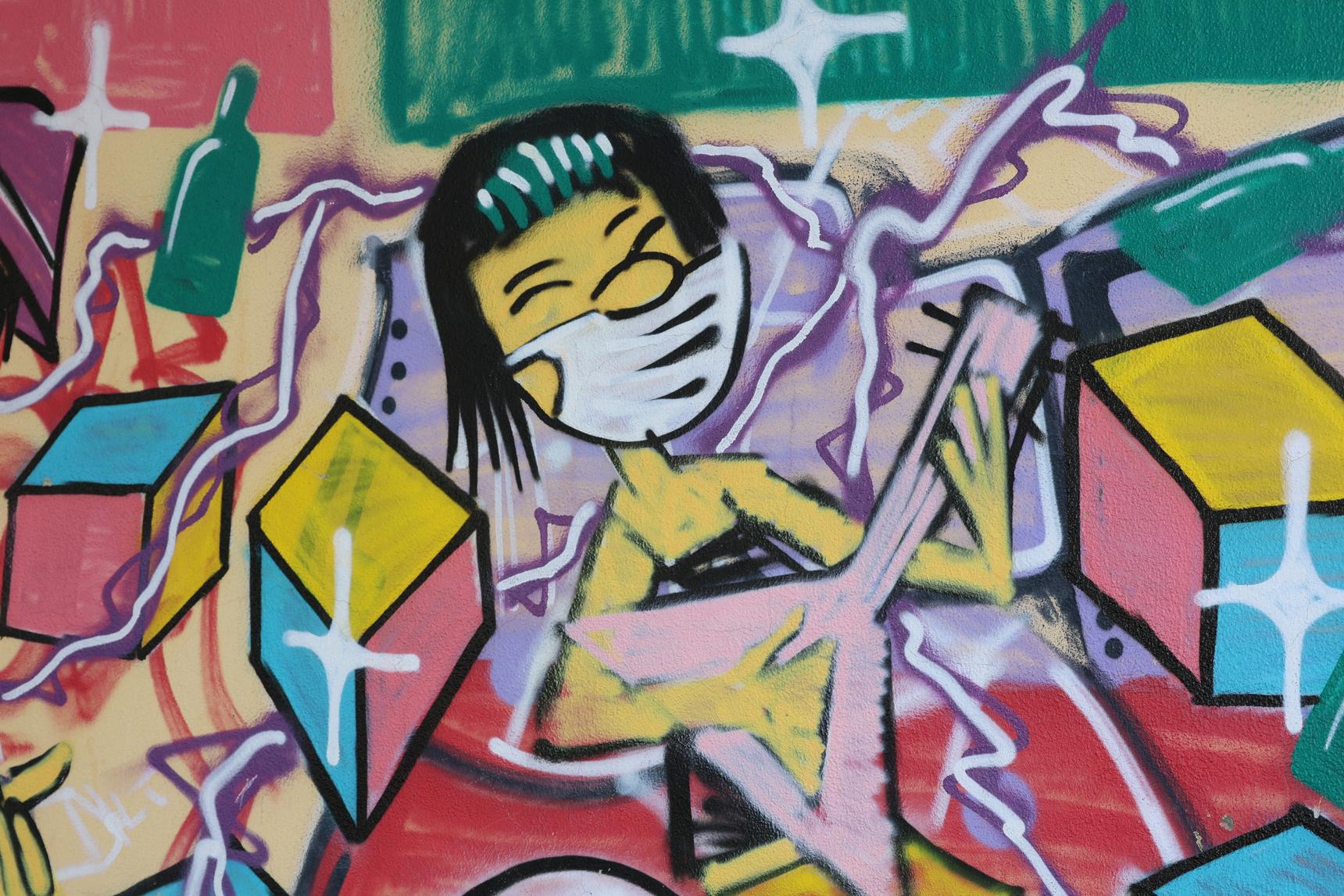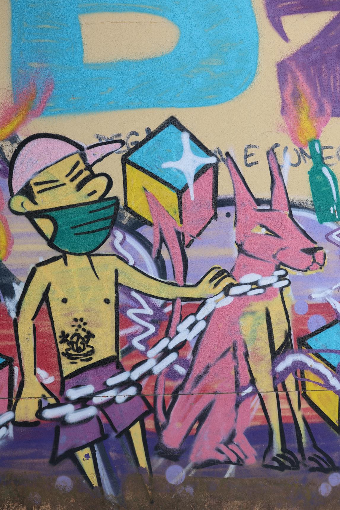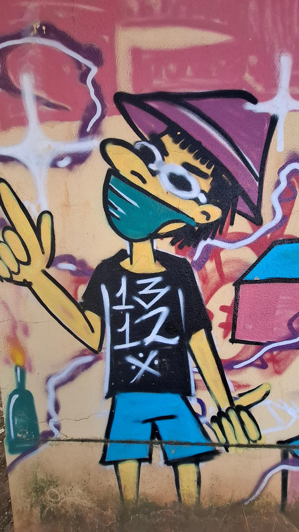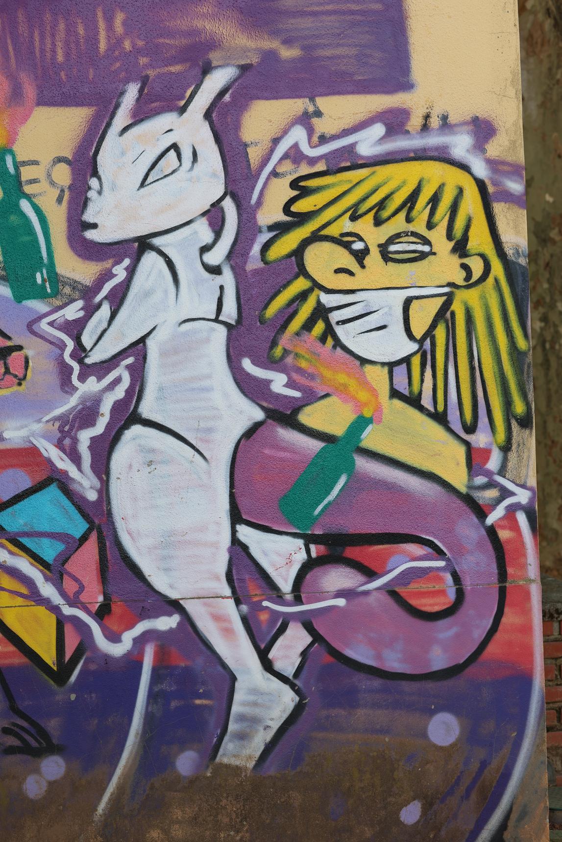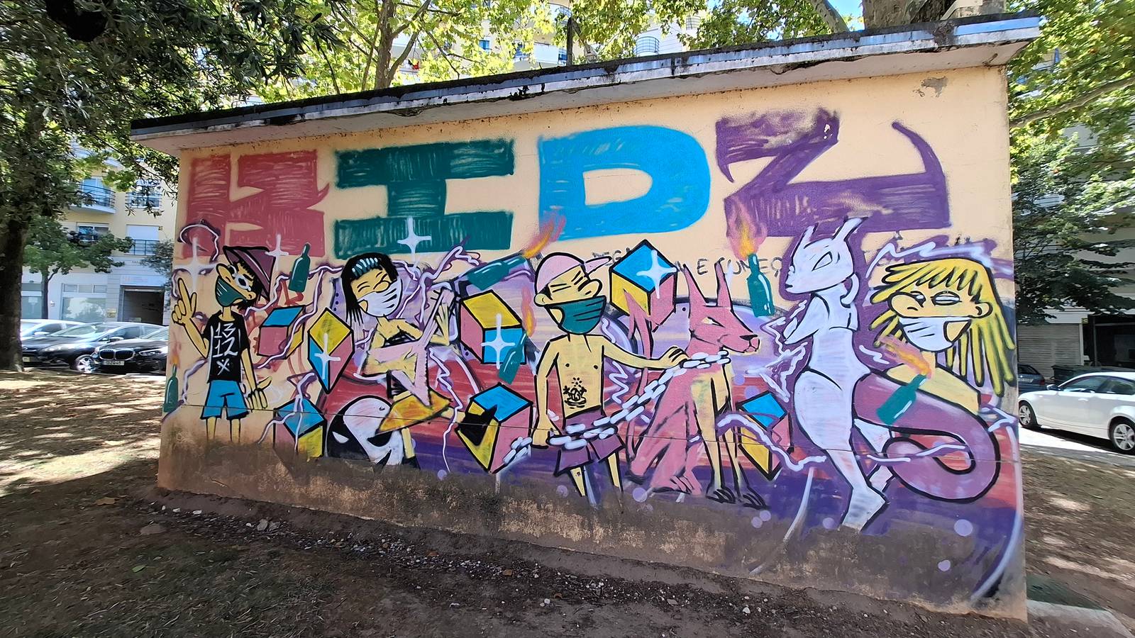 A street art piece painted in Vale das Flores, a pleasant and very popular green area in Coimbra.