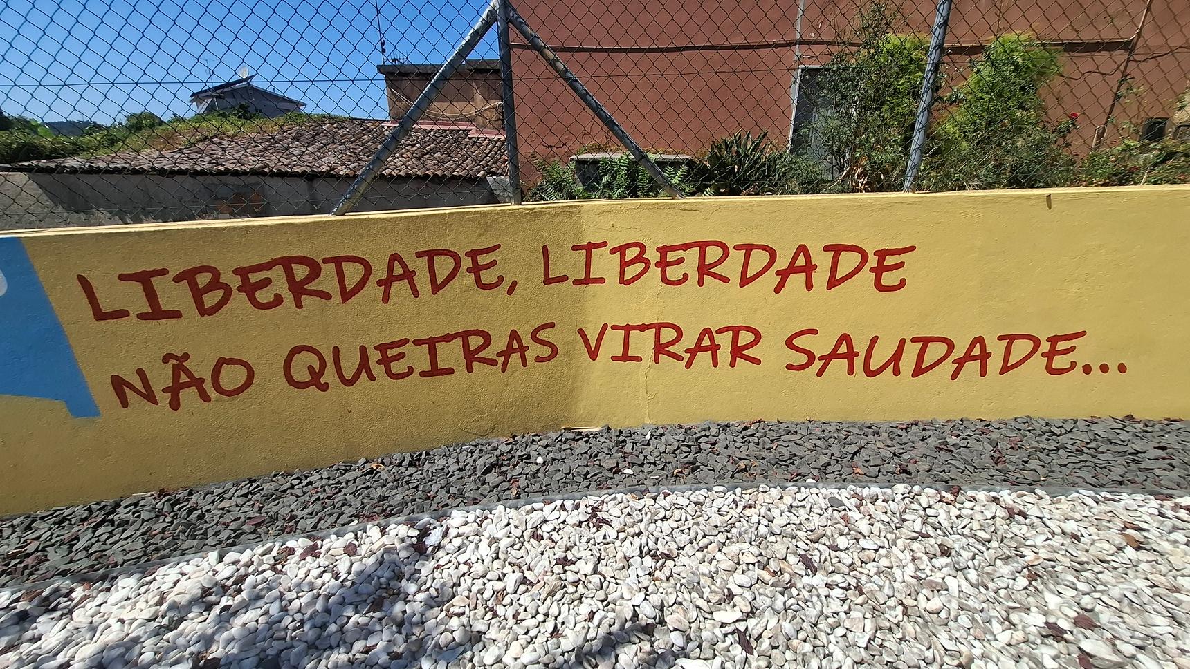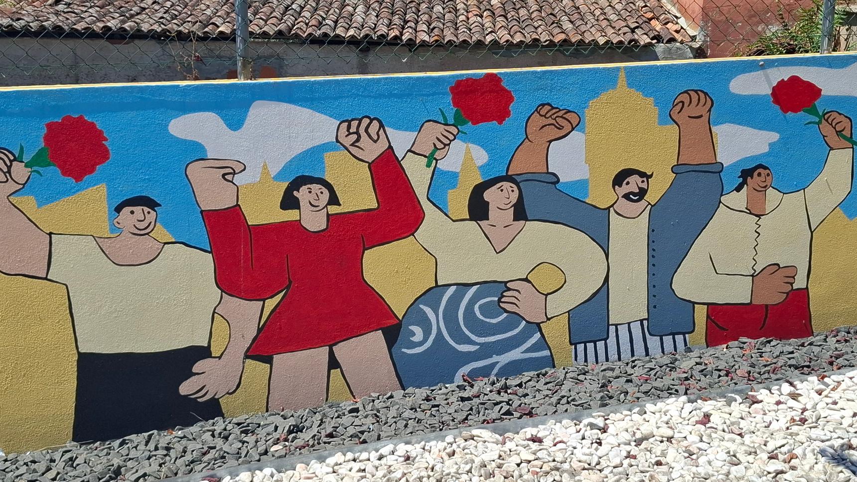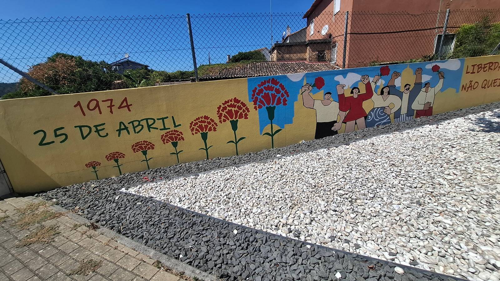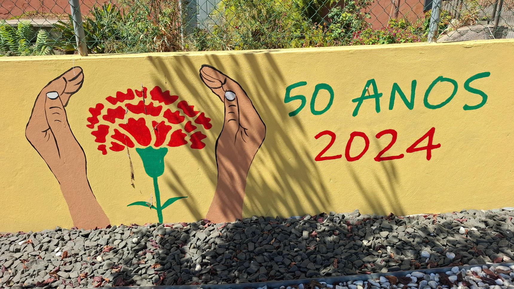 Mural commemorating the 50th anniversary of the Carnation Revolution, which established democracy in Portugal on April 25, 1974.