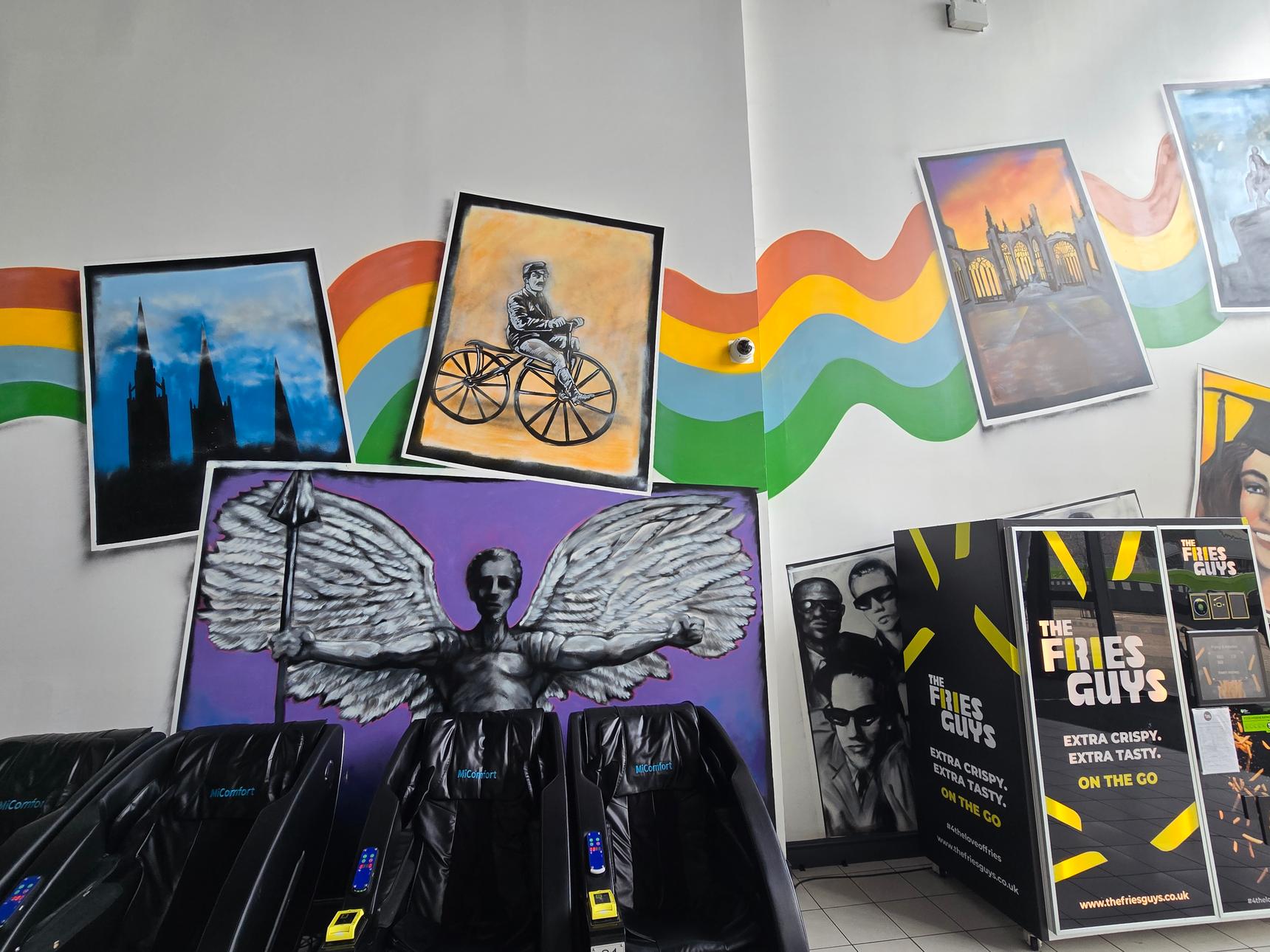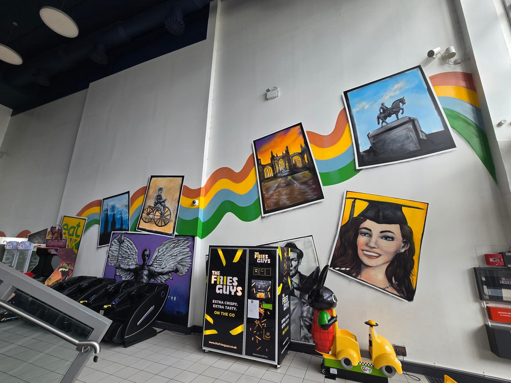 Created to celebrate the 20th anniversary of the Skydome, this collaborative mural depicting different images relating to Coventry, sits just inside the entrance to the cinema complex.