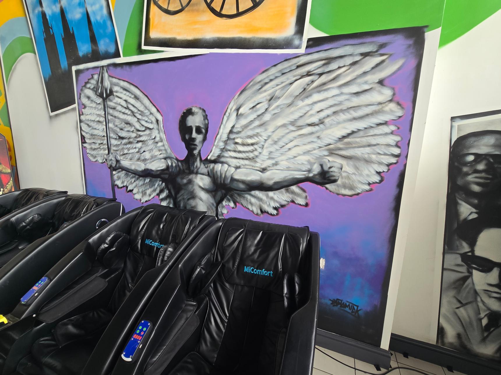 Unfortunately, a number of vending machines etc. have obscured the lower murals, but a lot of the murals are still fully visible.