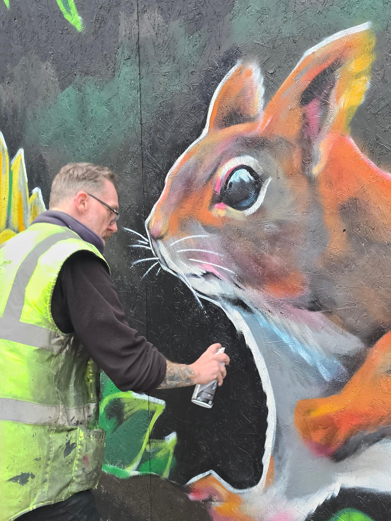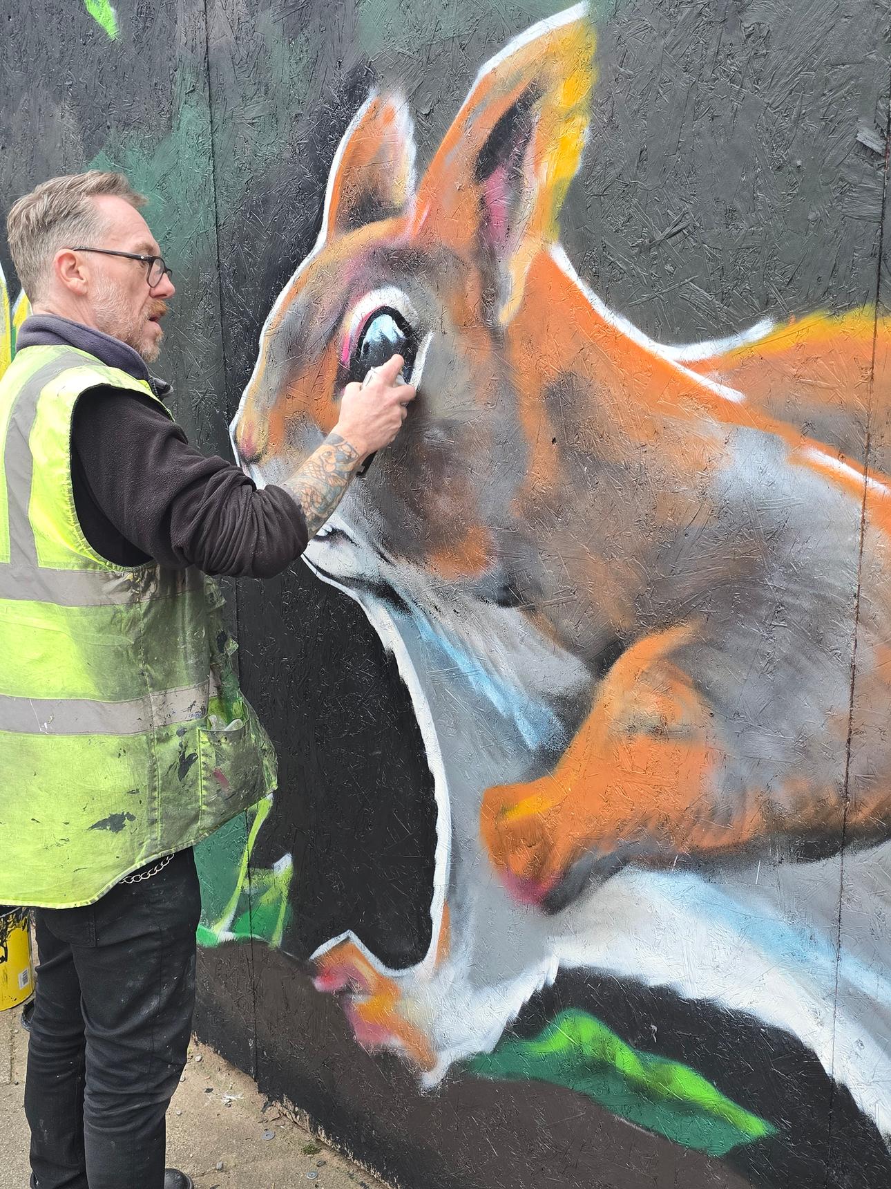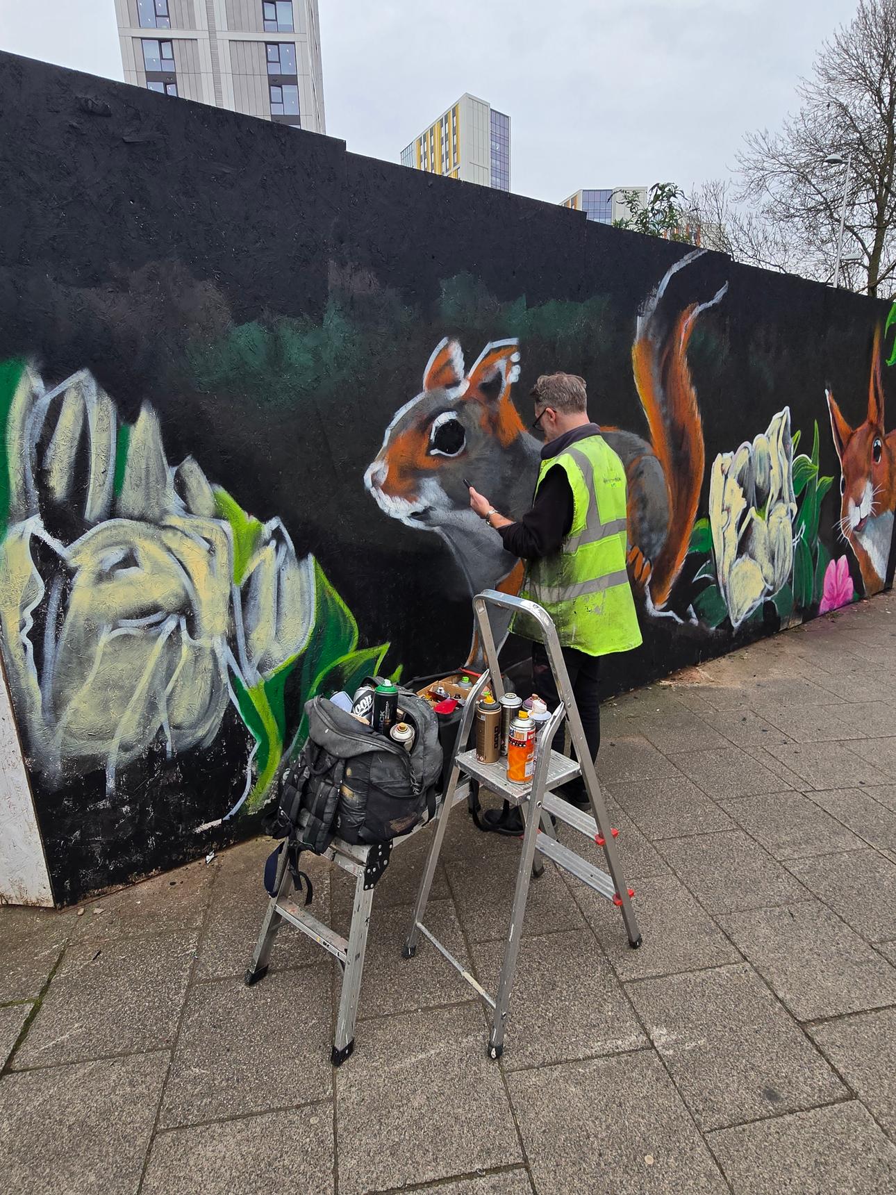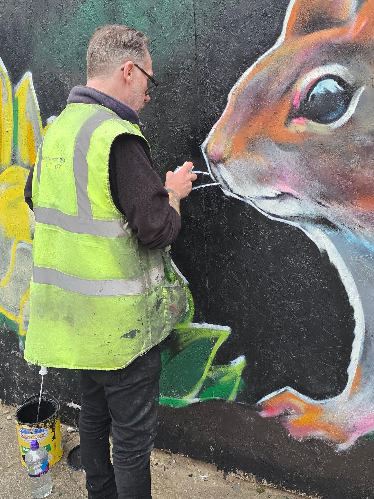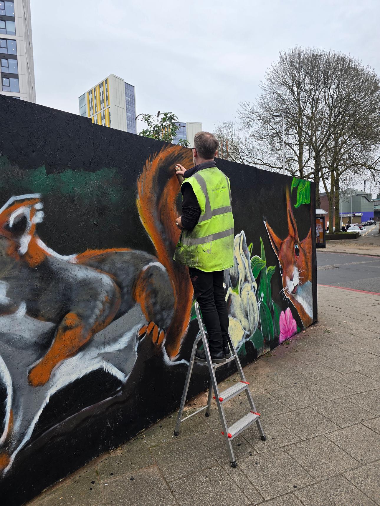 This mural, In a Nutshell, was painted across two afternoons one weekend in March, by local artist Mick Batchelor (better known as dynamickart).