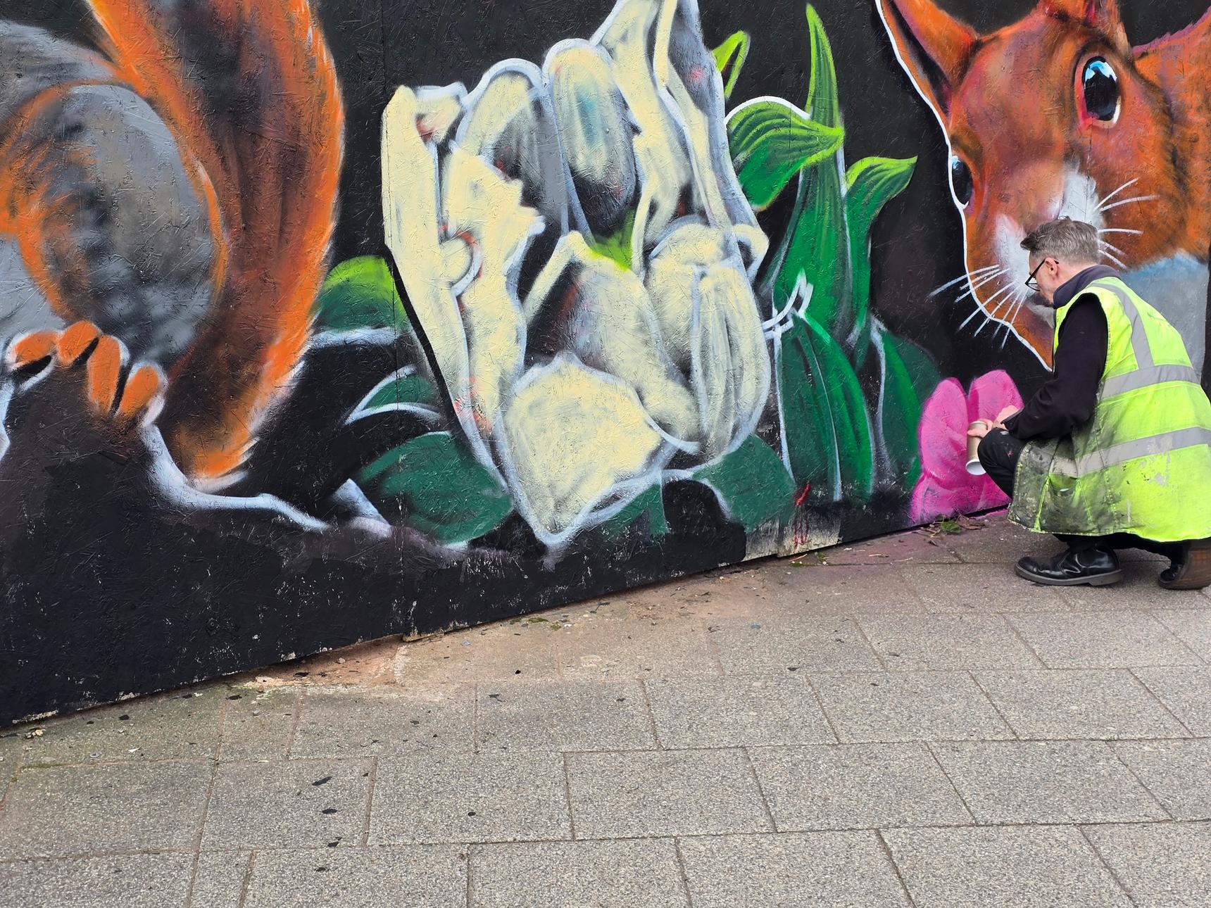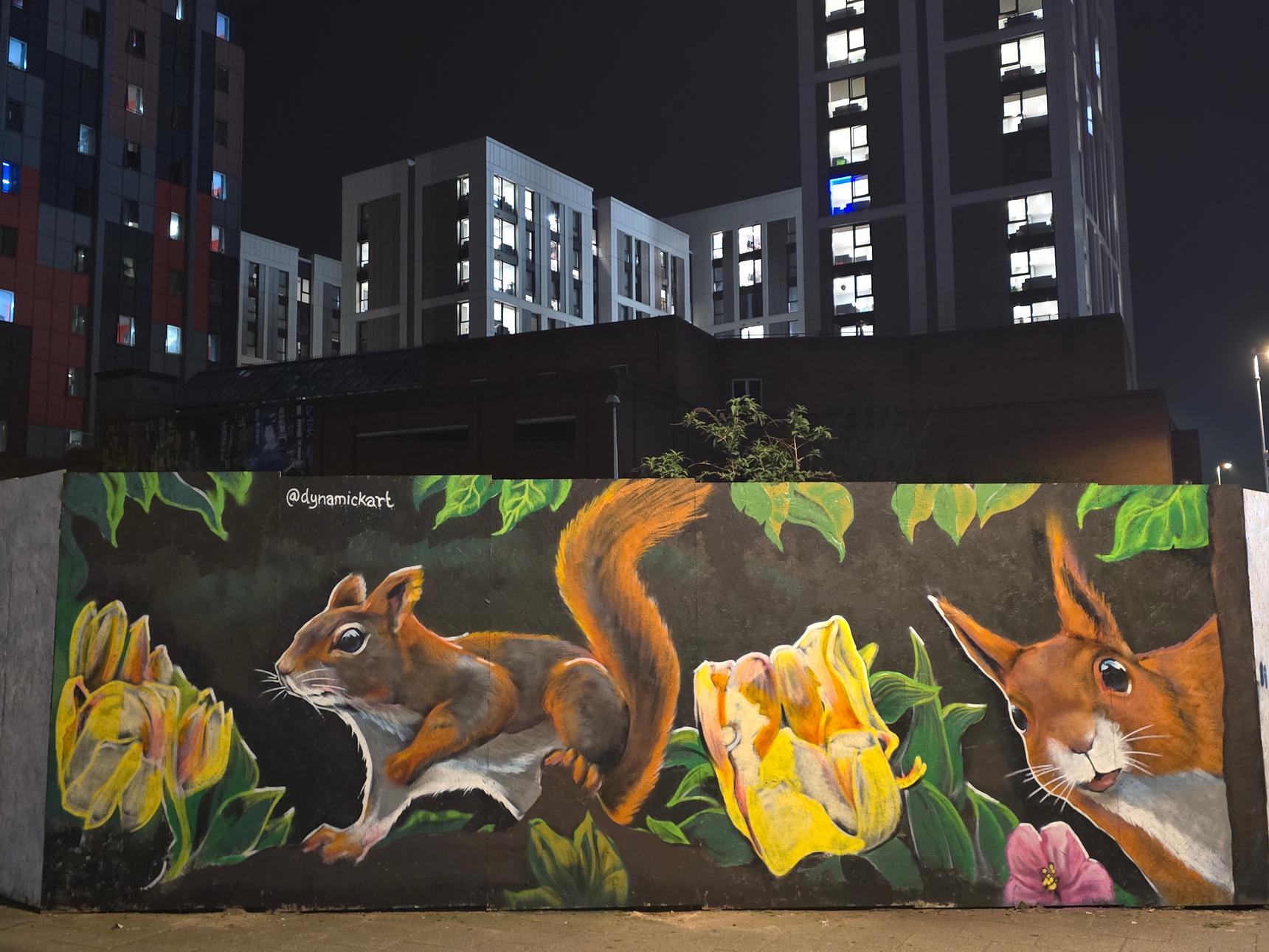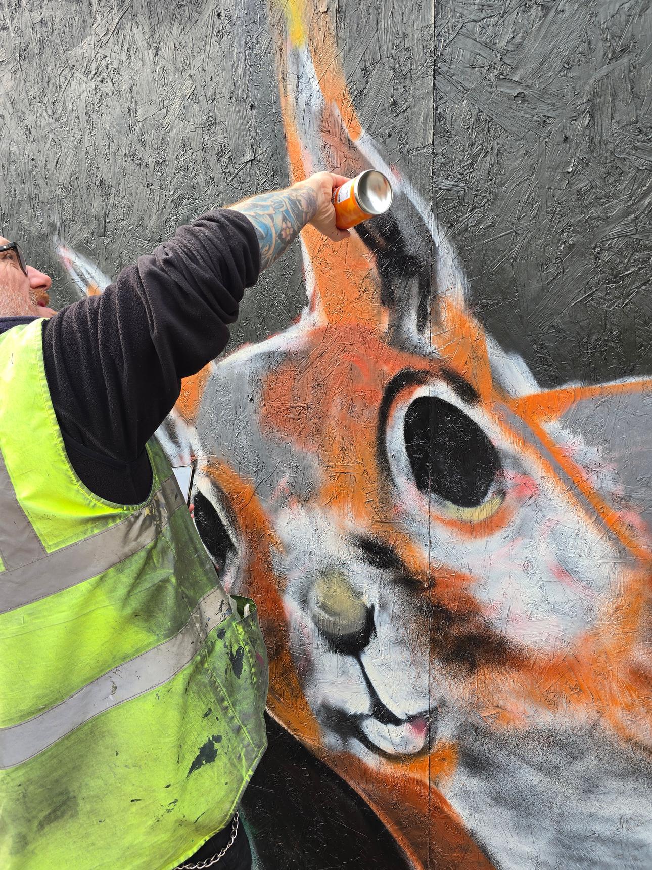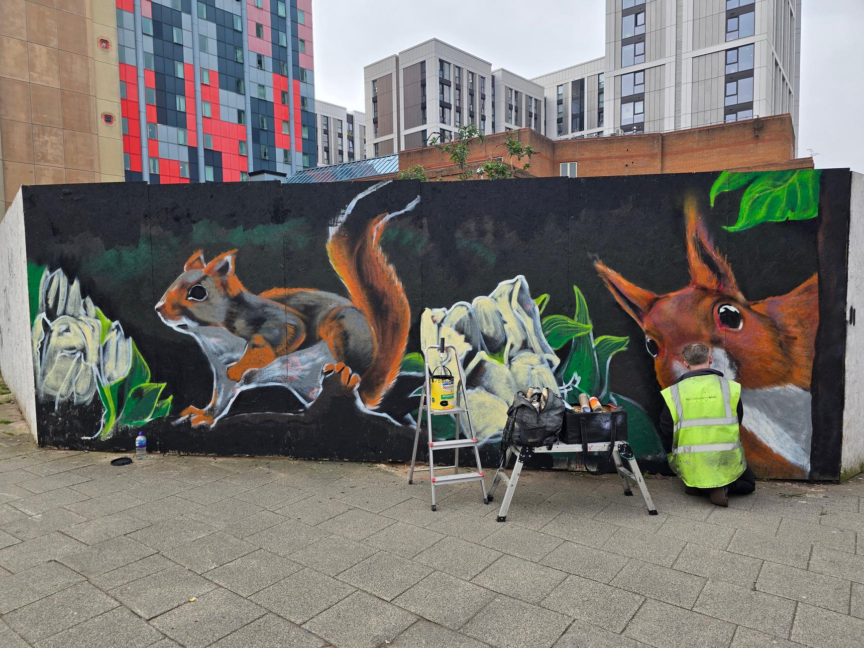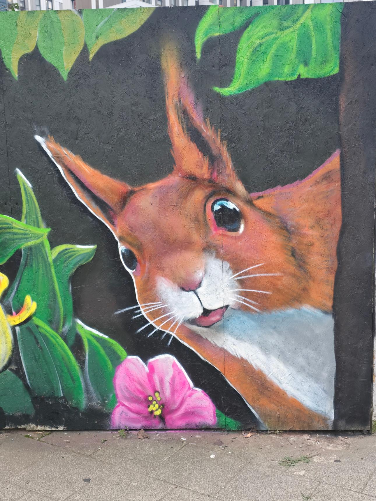 This mural, In a Nutshell, was painted across two afternoons one weekend in March, by local artist Mick Batchelor (better known as dynamickart).