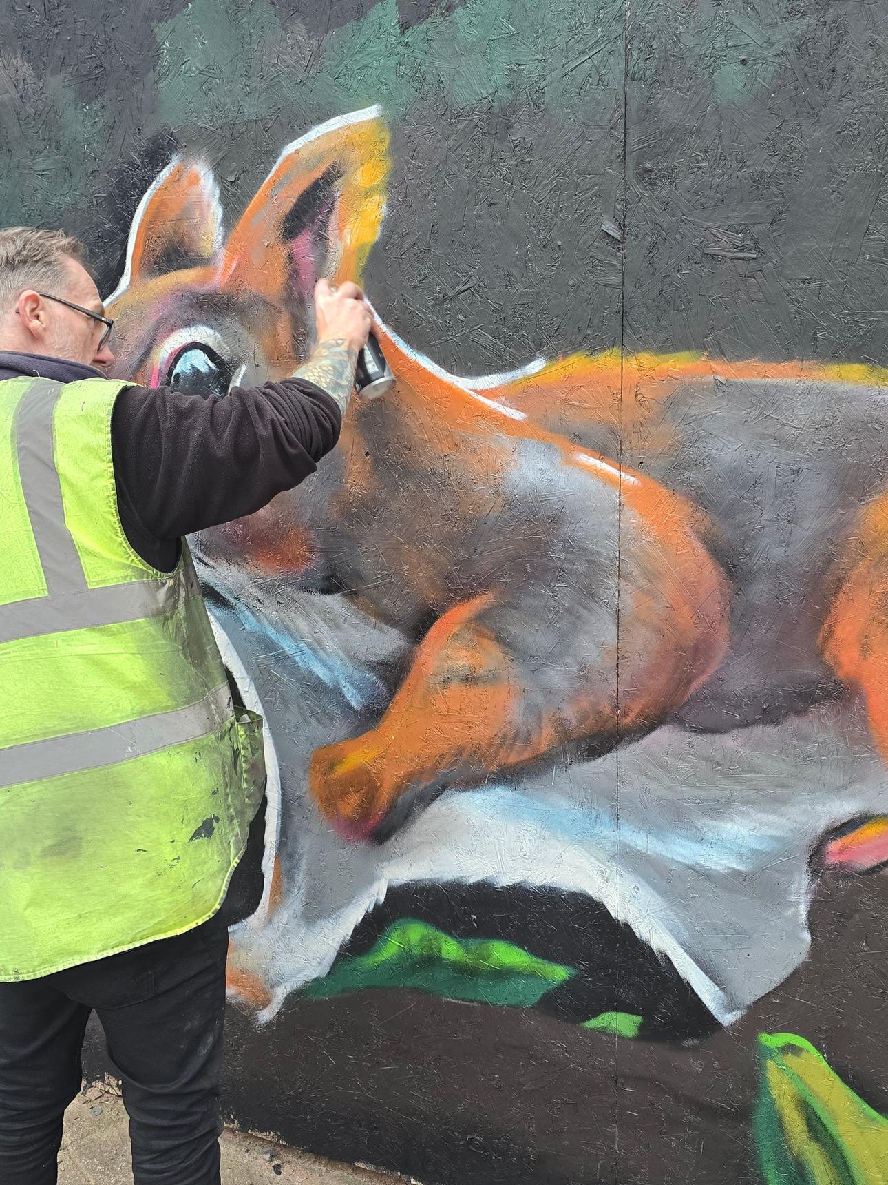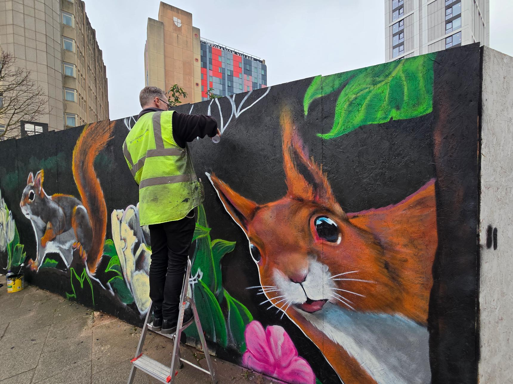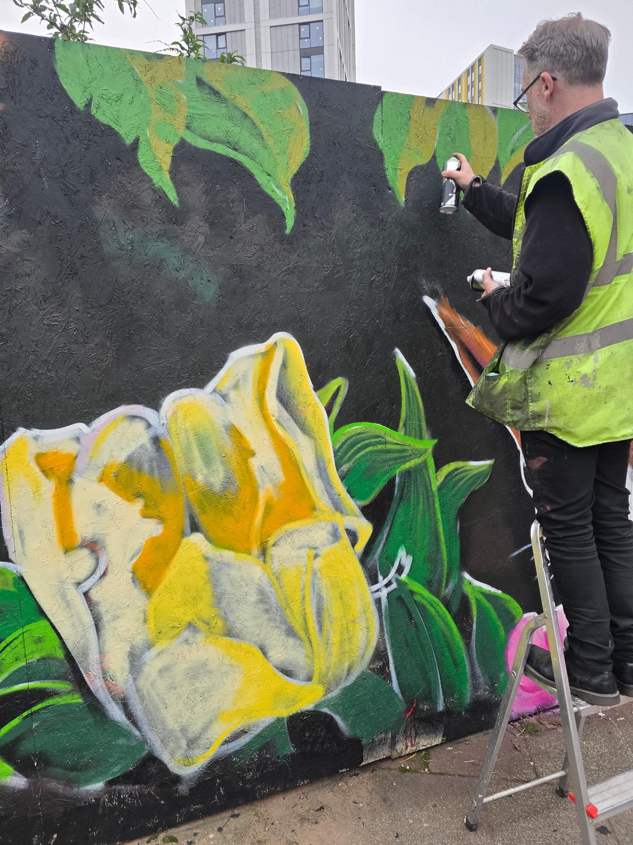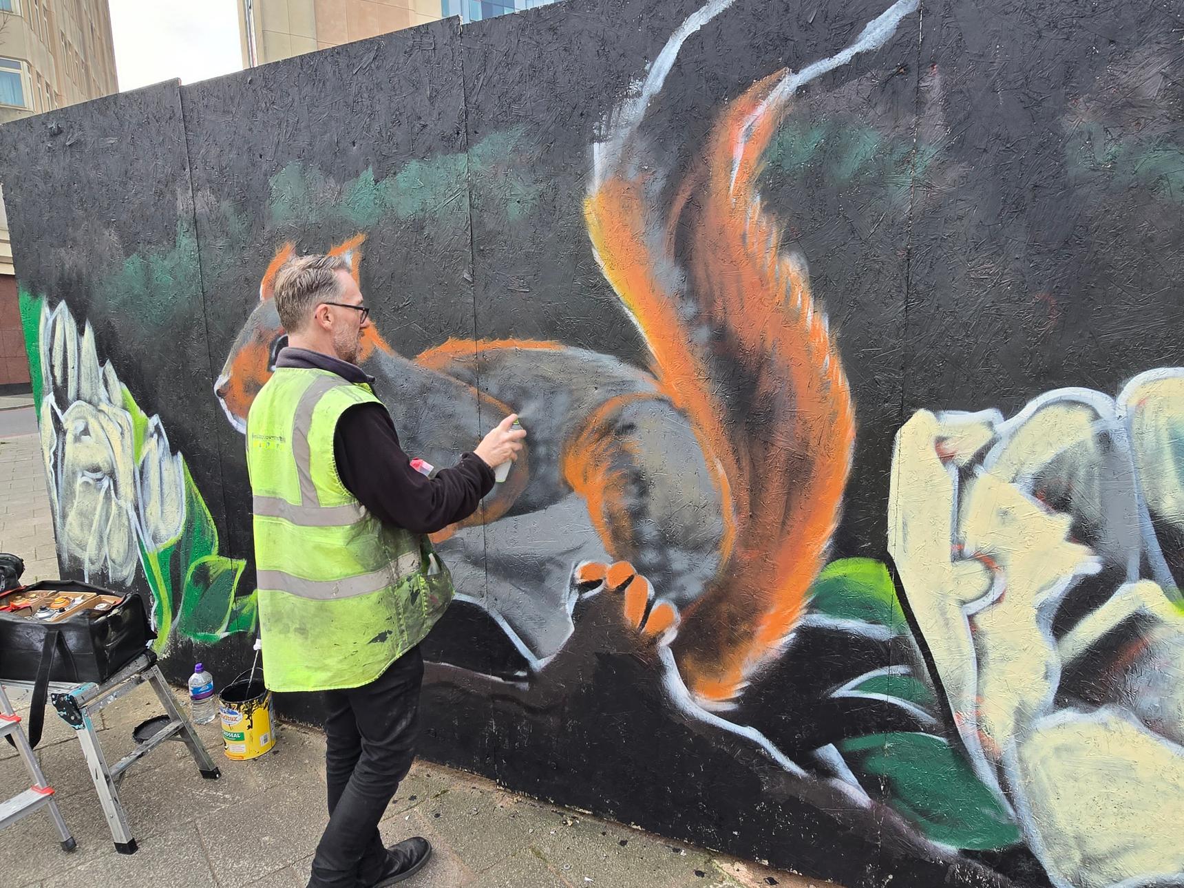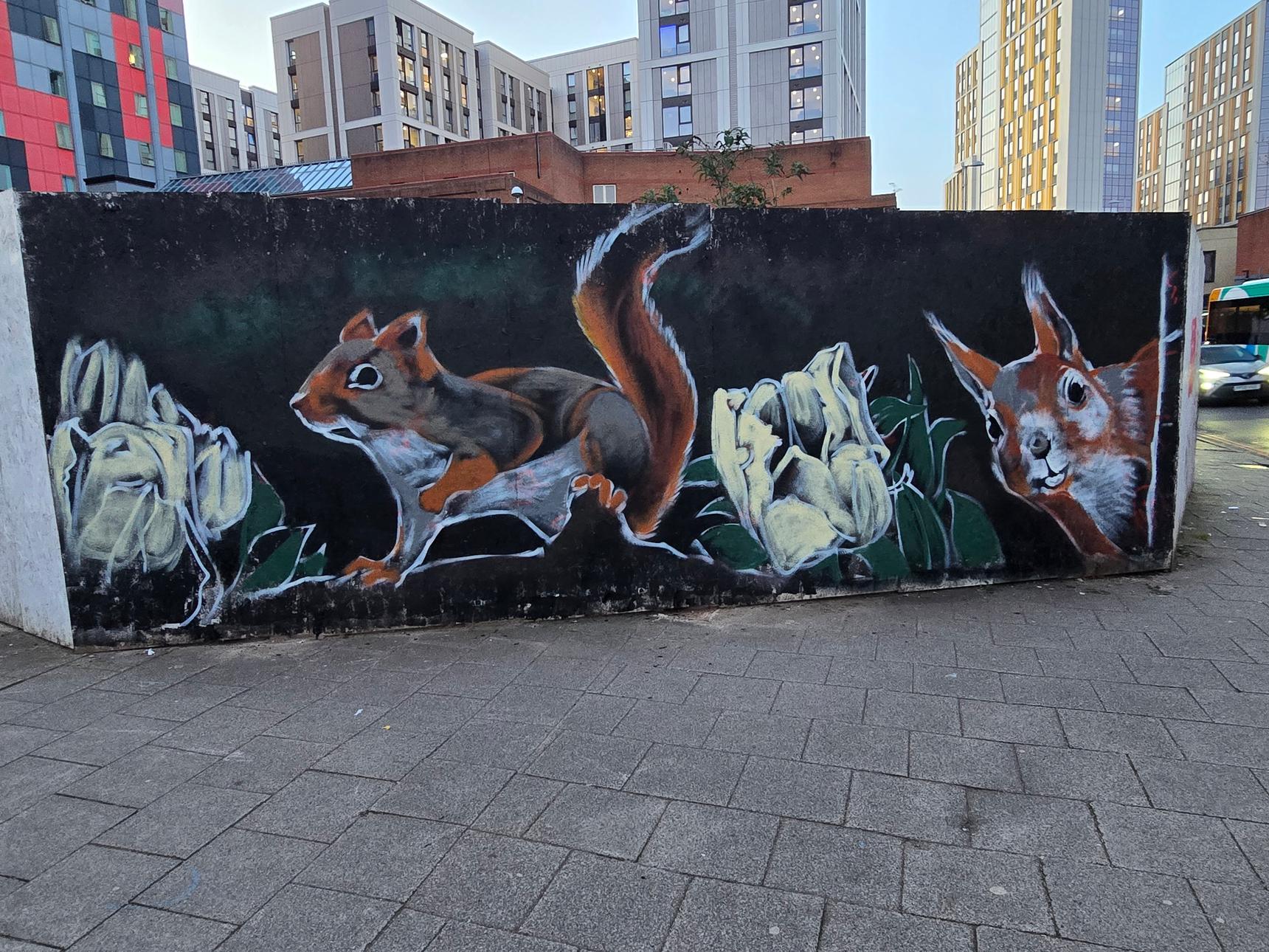 This mural, In a Nutshell, was painted across two afternoons one weekend in March, by local artist Mick Batchelor (better known as dynamickart).