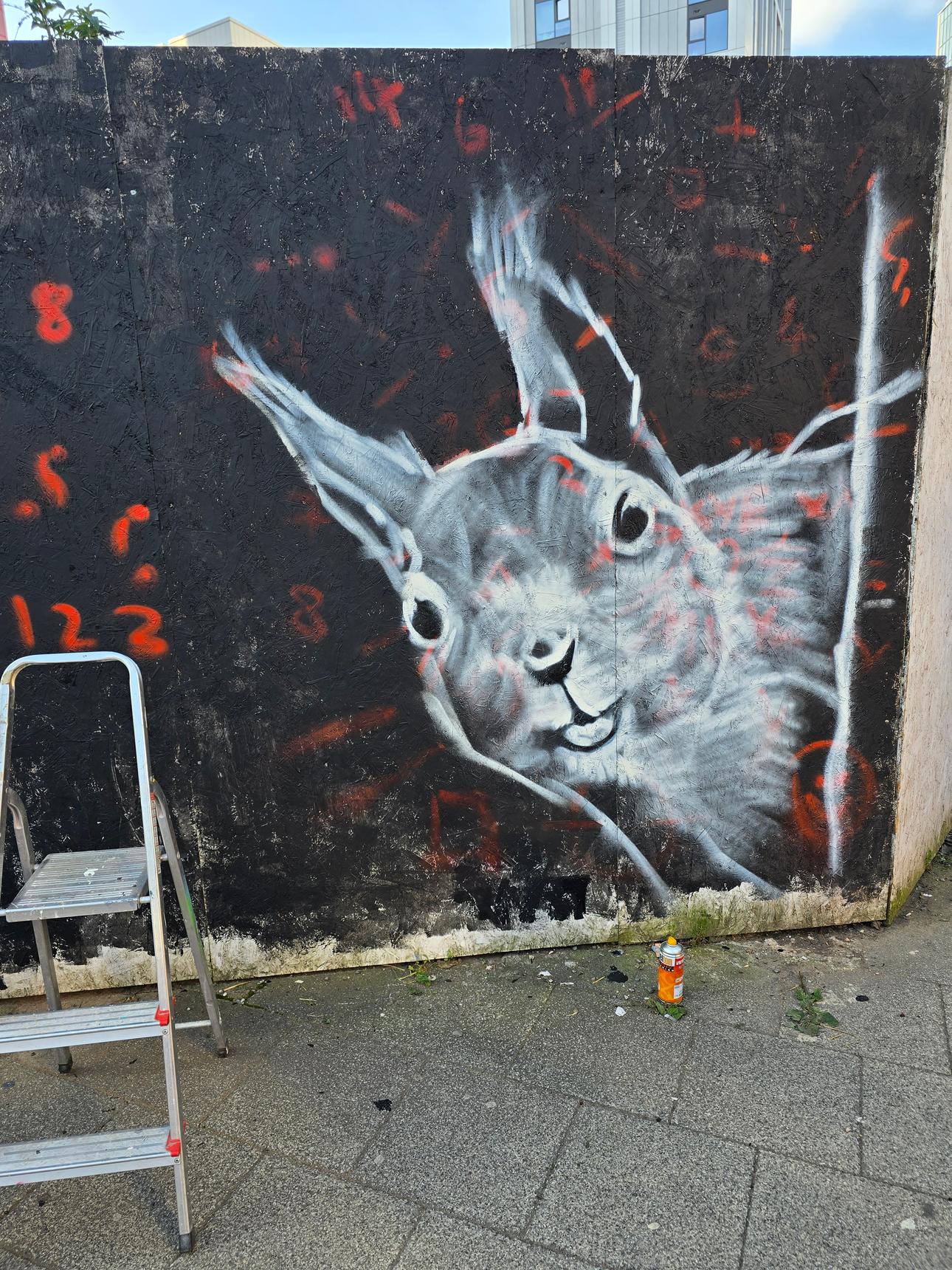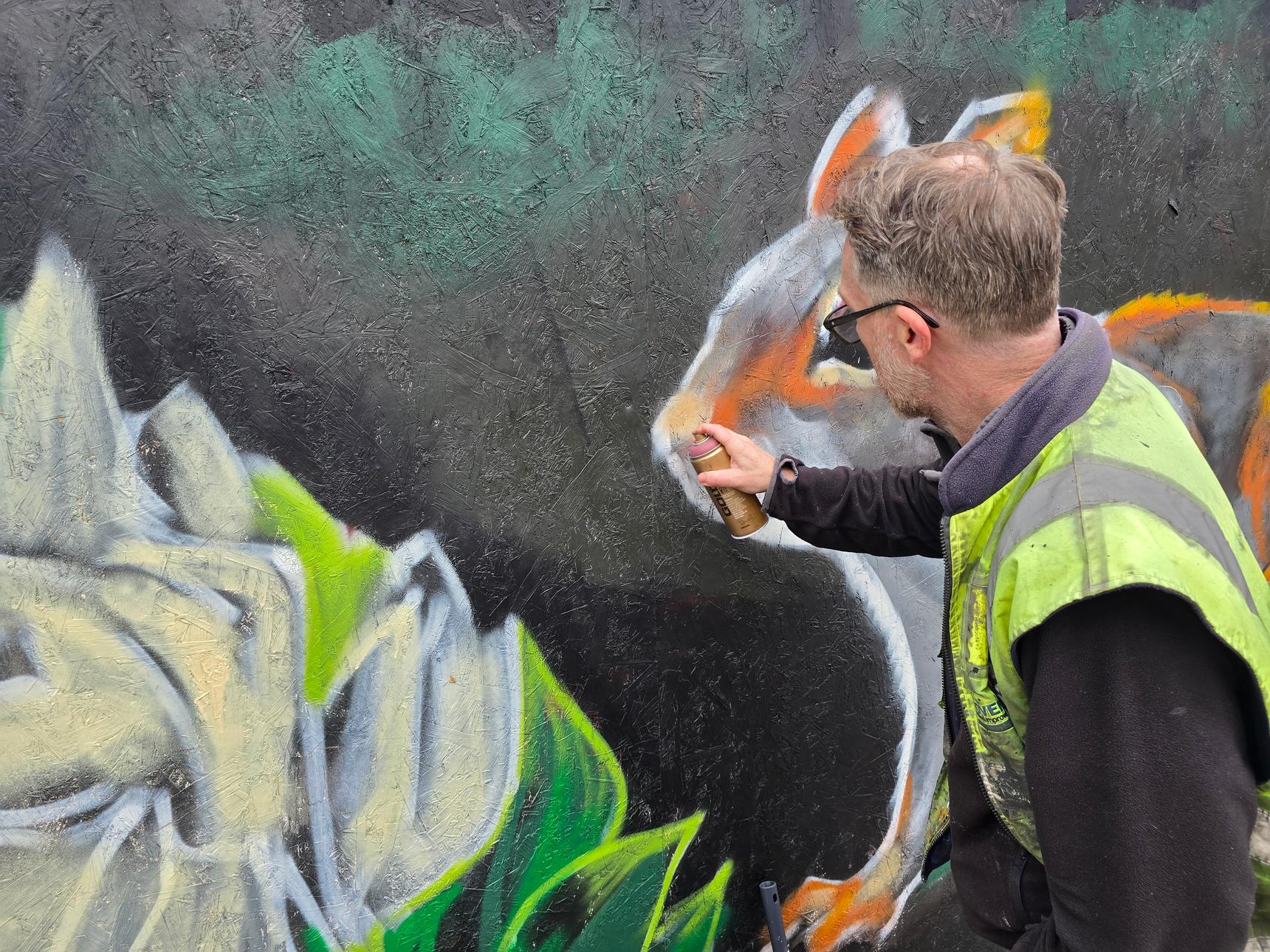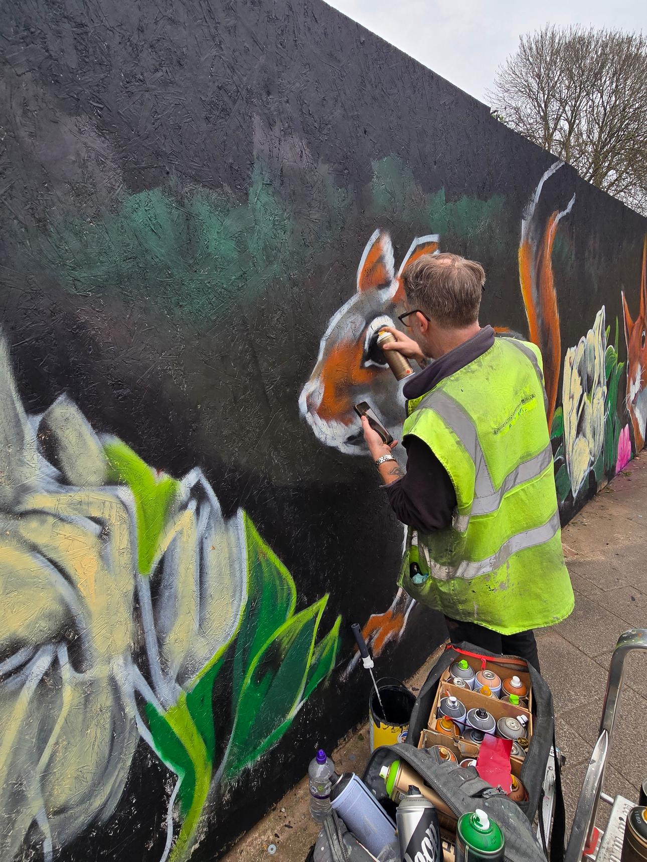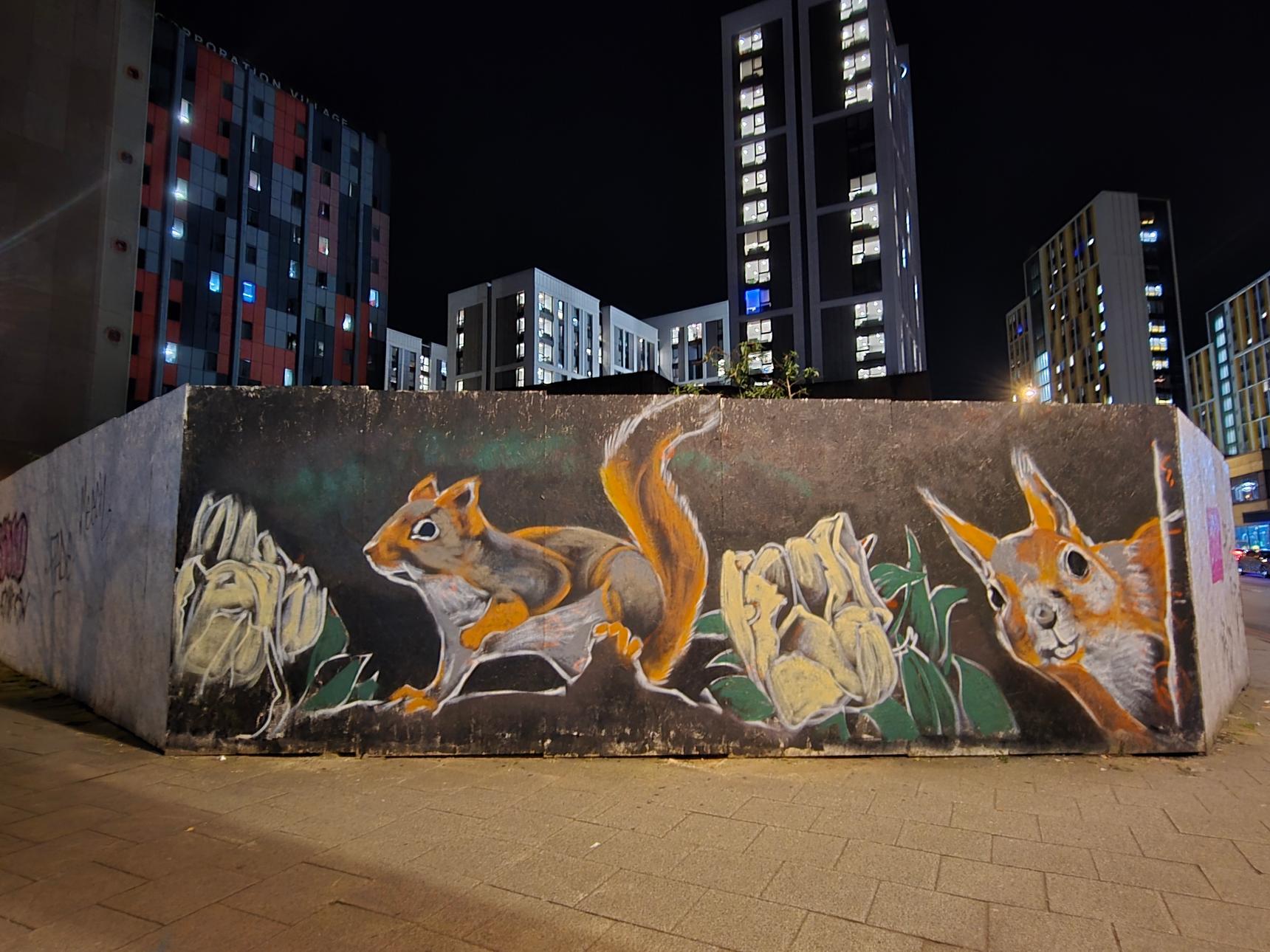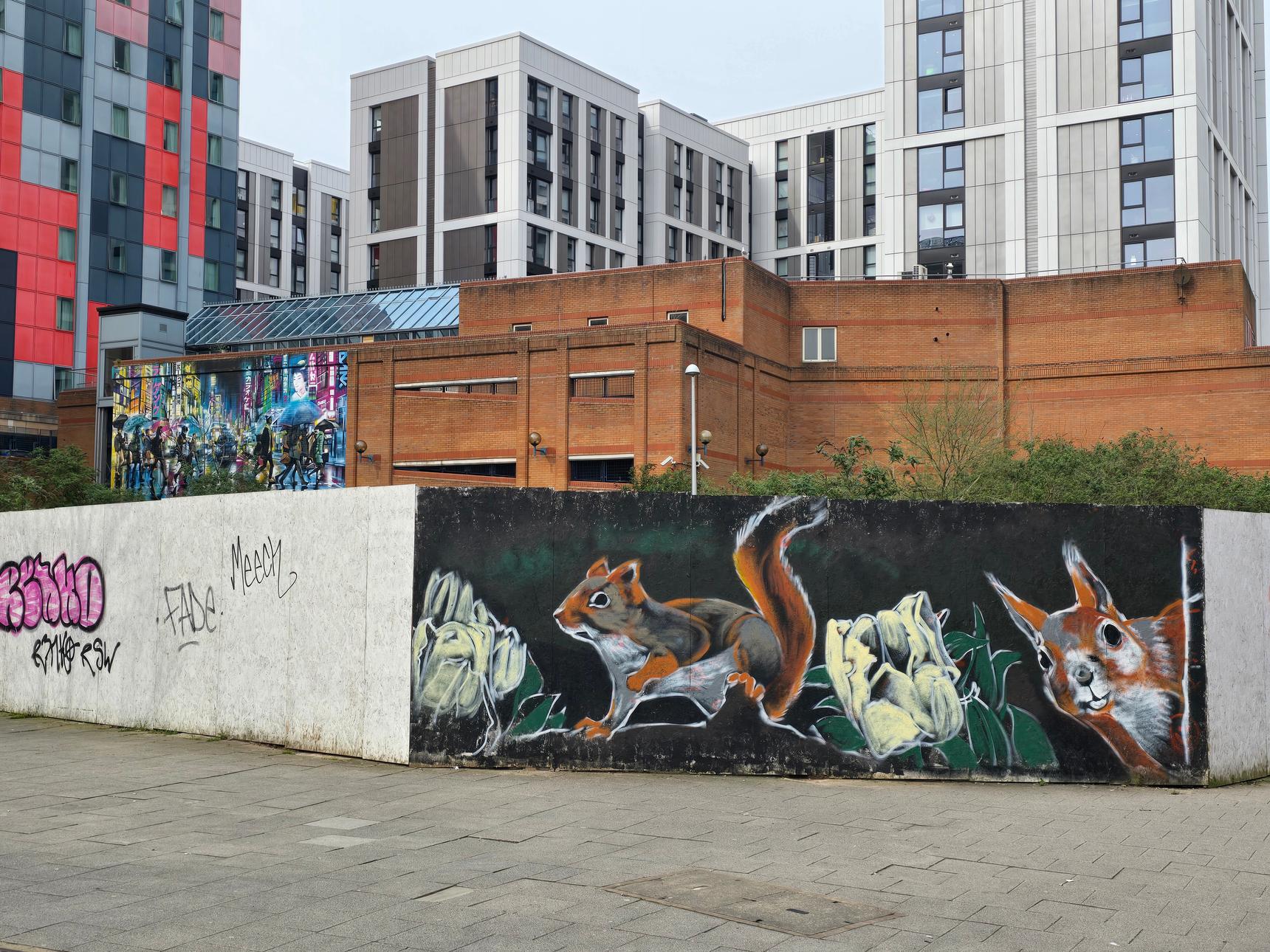 This mural, In a Nutshell, was painted across two afternoons one weekend in March, by local artist Mick Batchelor (better known as dynamickart).